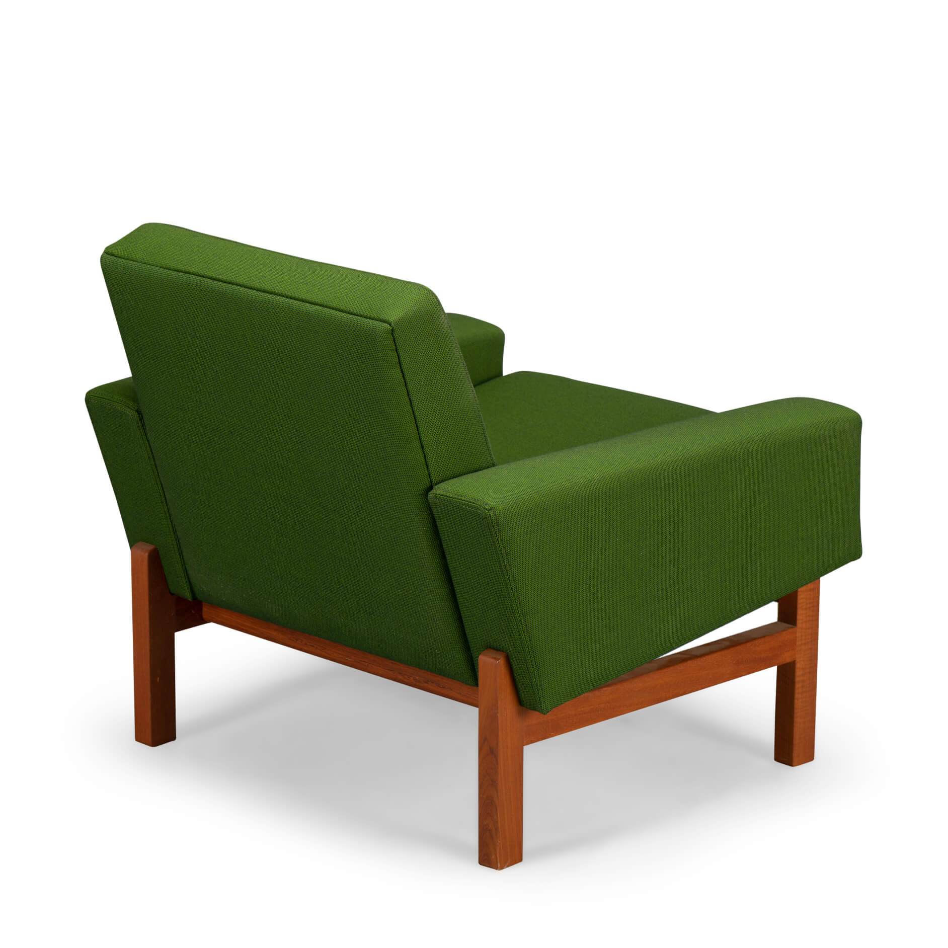 - This particular chair has been re-upholstered in Gabriel Swing by Merk a wool-recycled fabric blend that offers a deep color tone and soft comfortable haptic. With hardly signs of use or age on the frame this chair is once again in an excellent vintage condition.