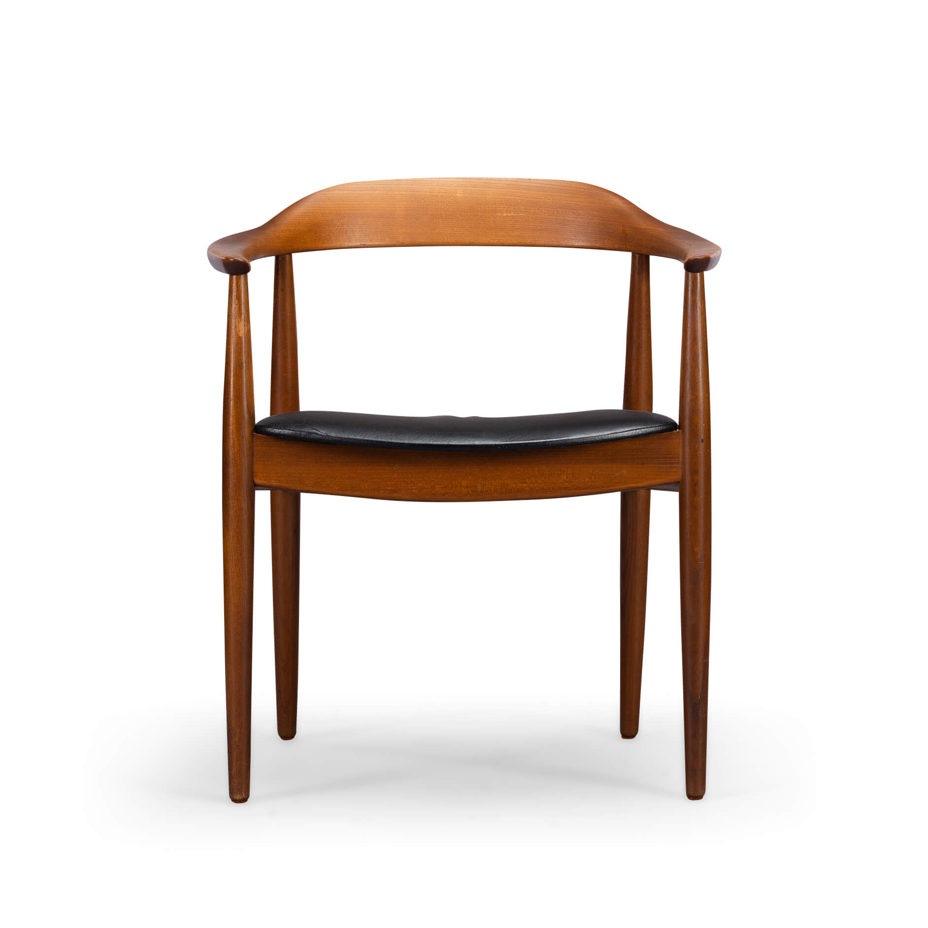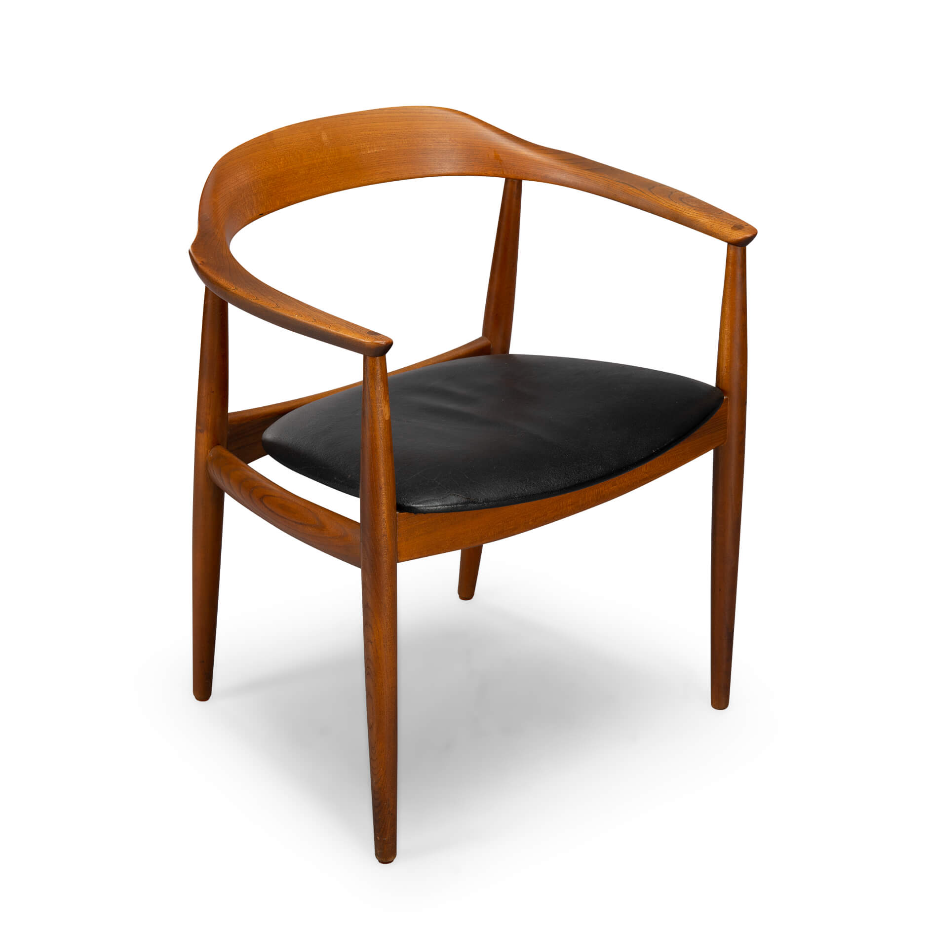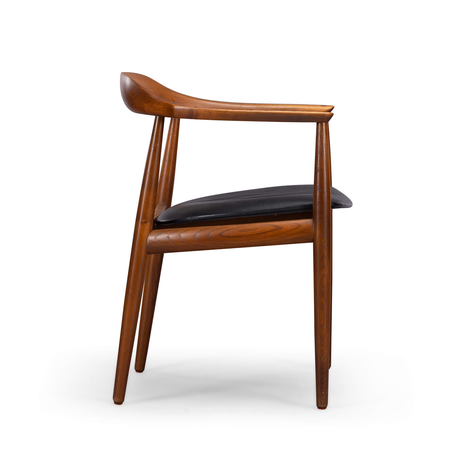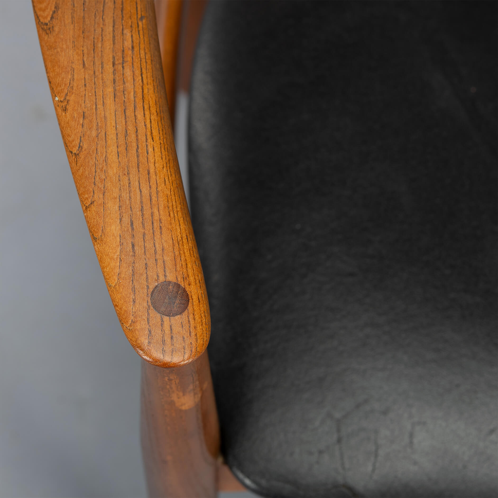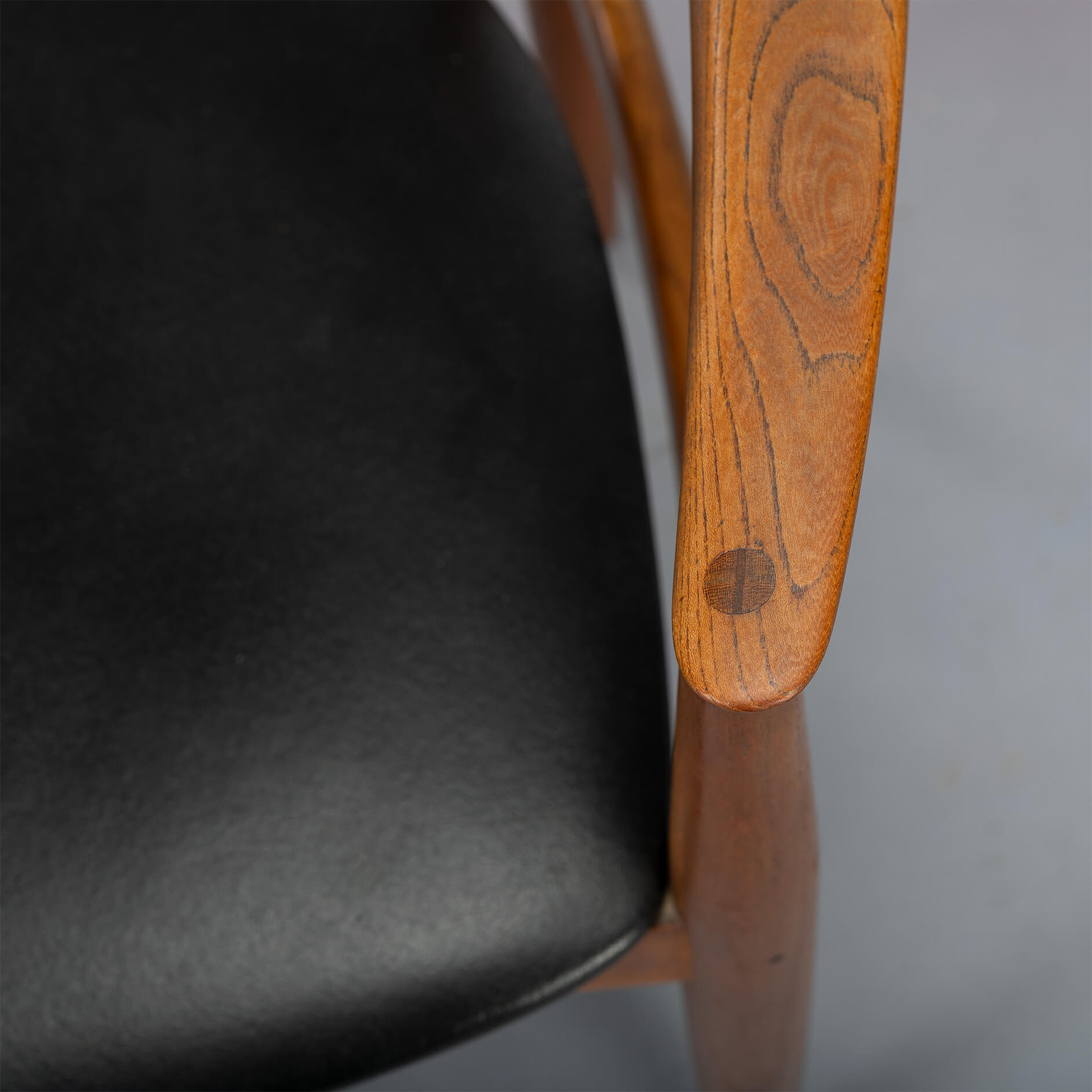 Spotted in the blink of an eye, this is an Eilersen! Design is often attributed to Illum Wikkelsø but it was Arne Wahl Iversen who designed this chair, regardless it is instantaneously recognisable as an Niels Eilersen. Producer Eilersen was proficient in steam bending of wood and made the back of the chair and armrests in one piece.