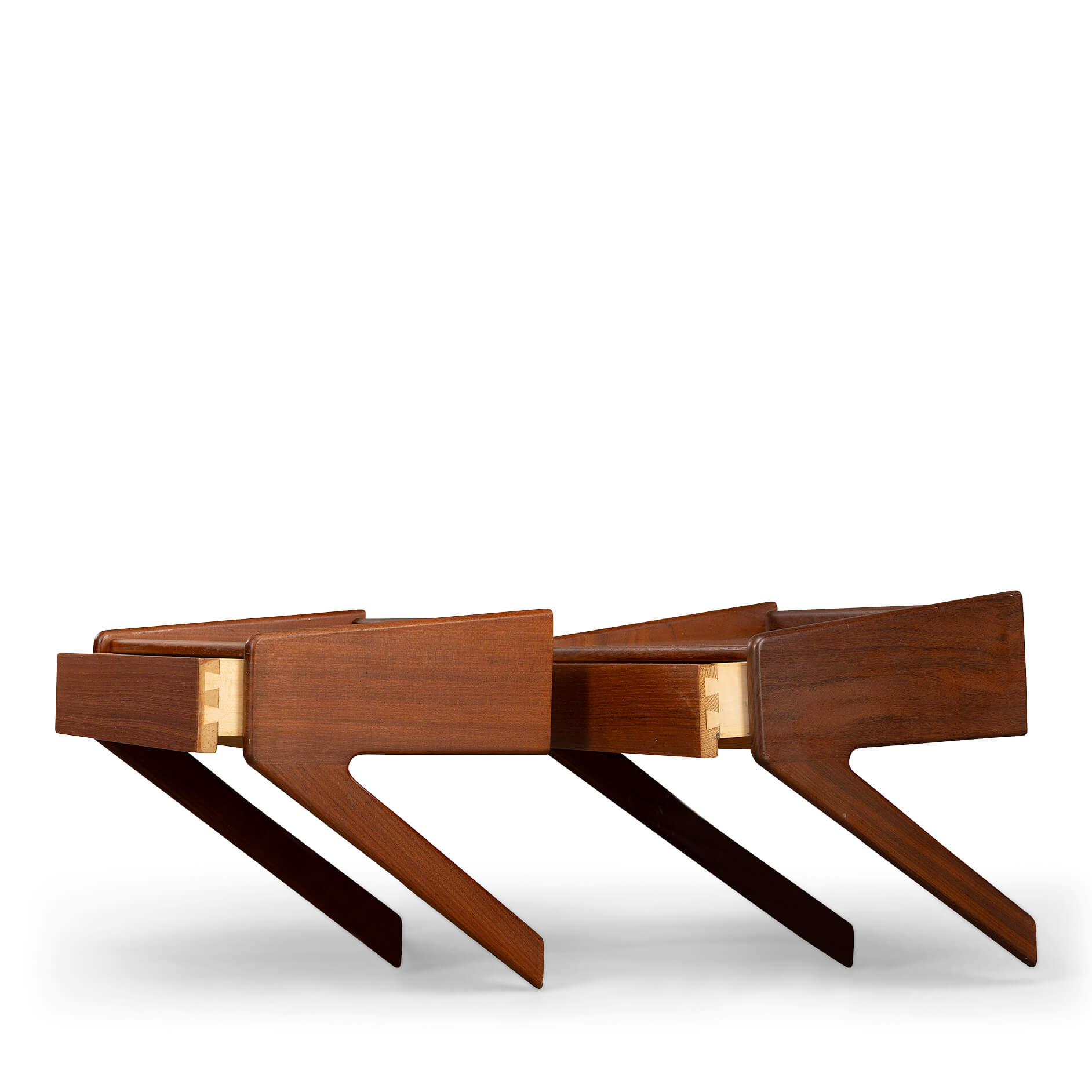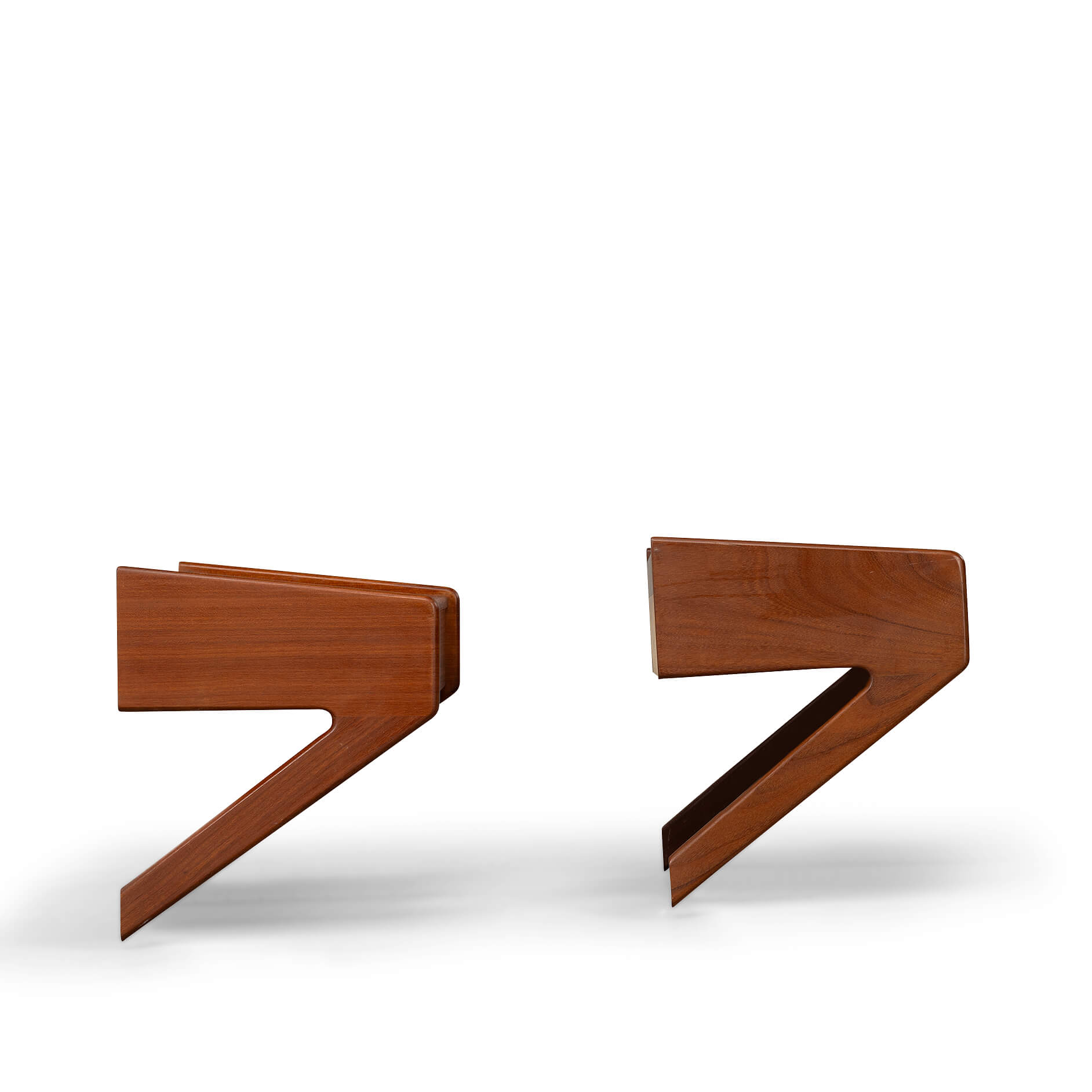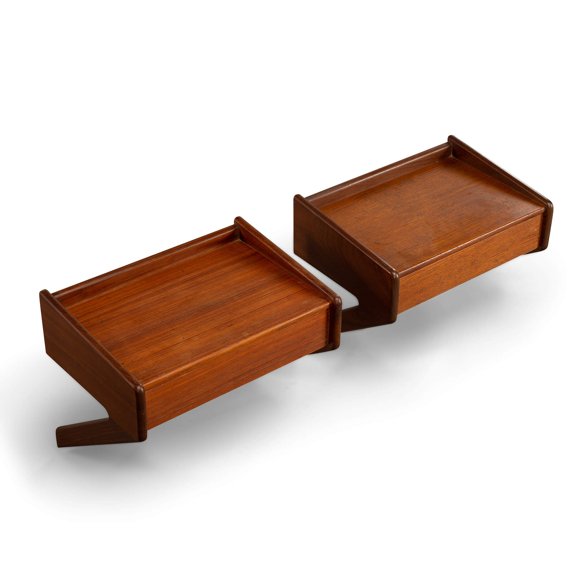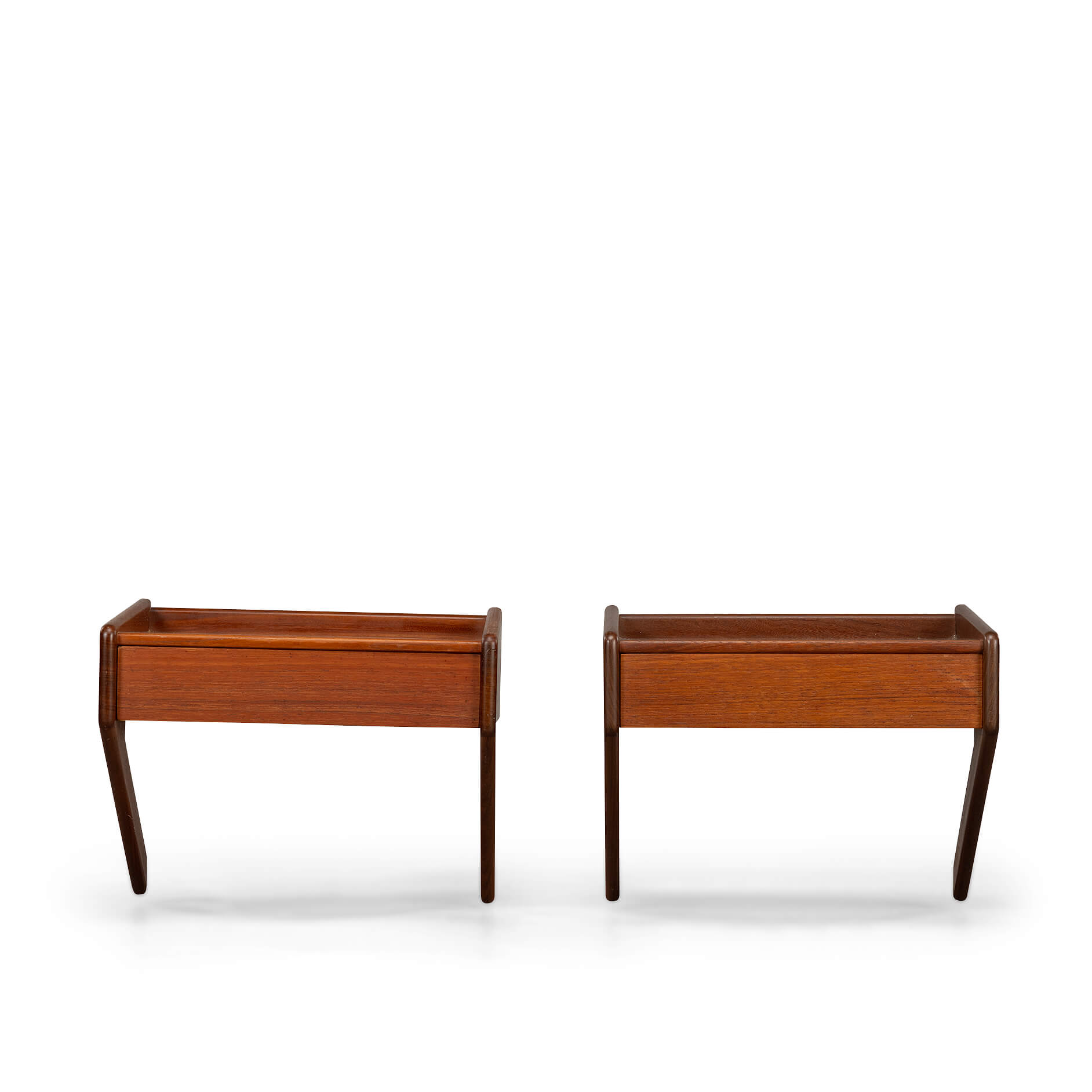 A marvellous and rare set of teak veneer and oak limbed nightstands. These will tick every box in the designer nightstand category. If you covet the odd bit of design around your bed, well in that case these nightstands are exactly what you need!