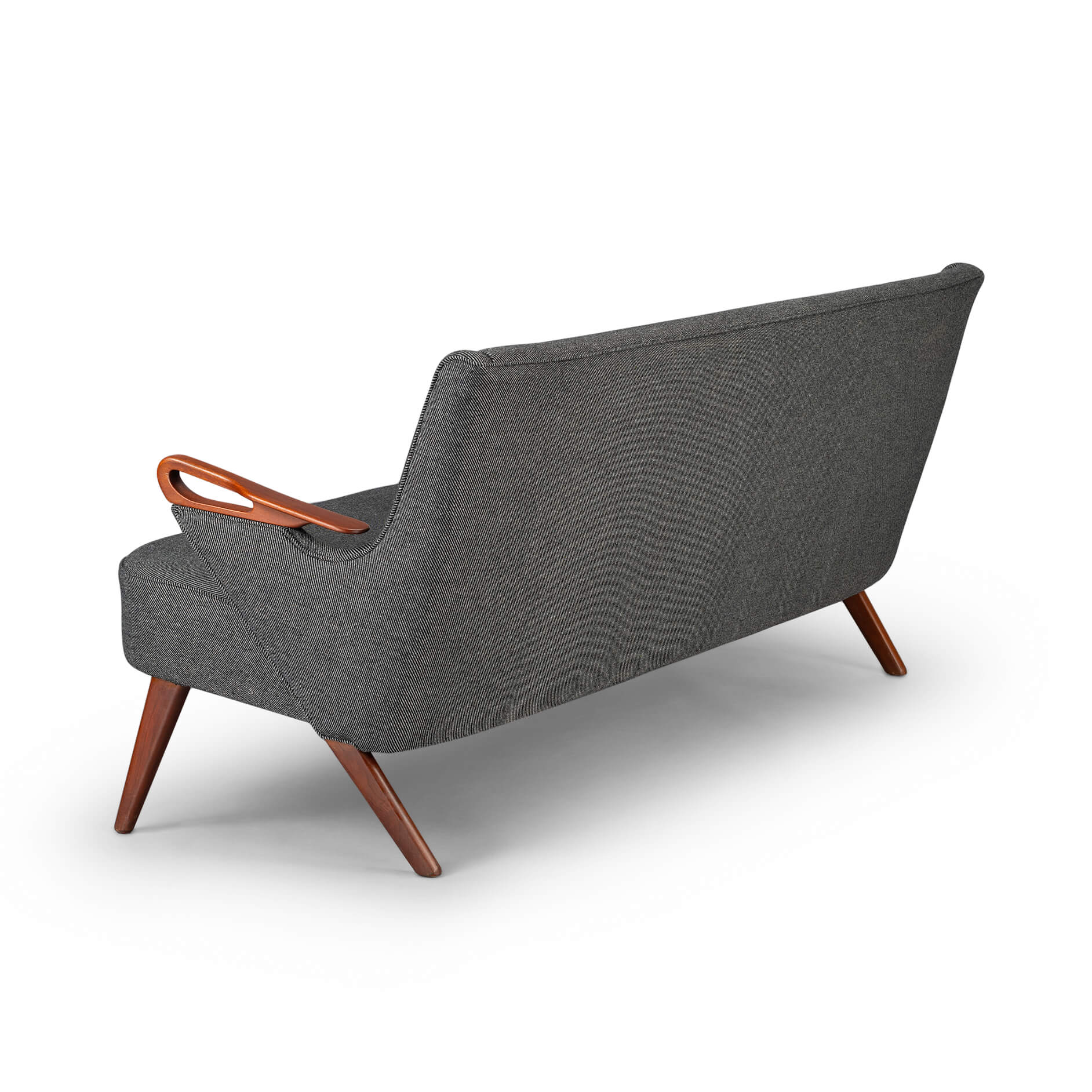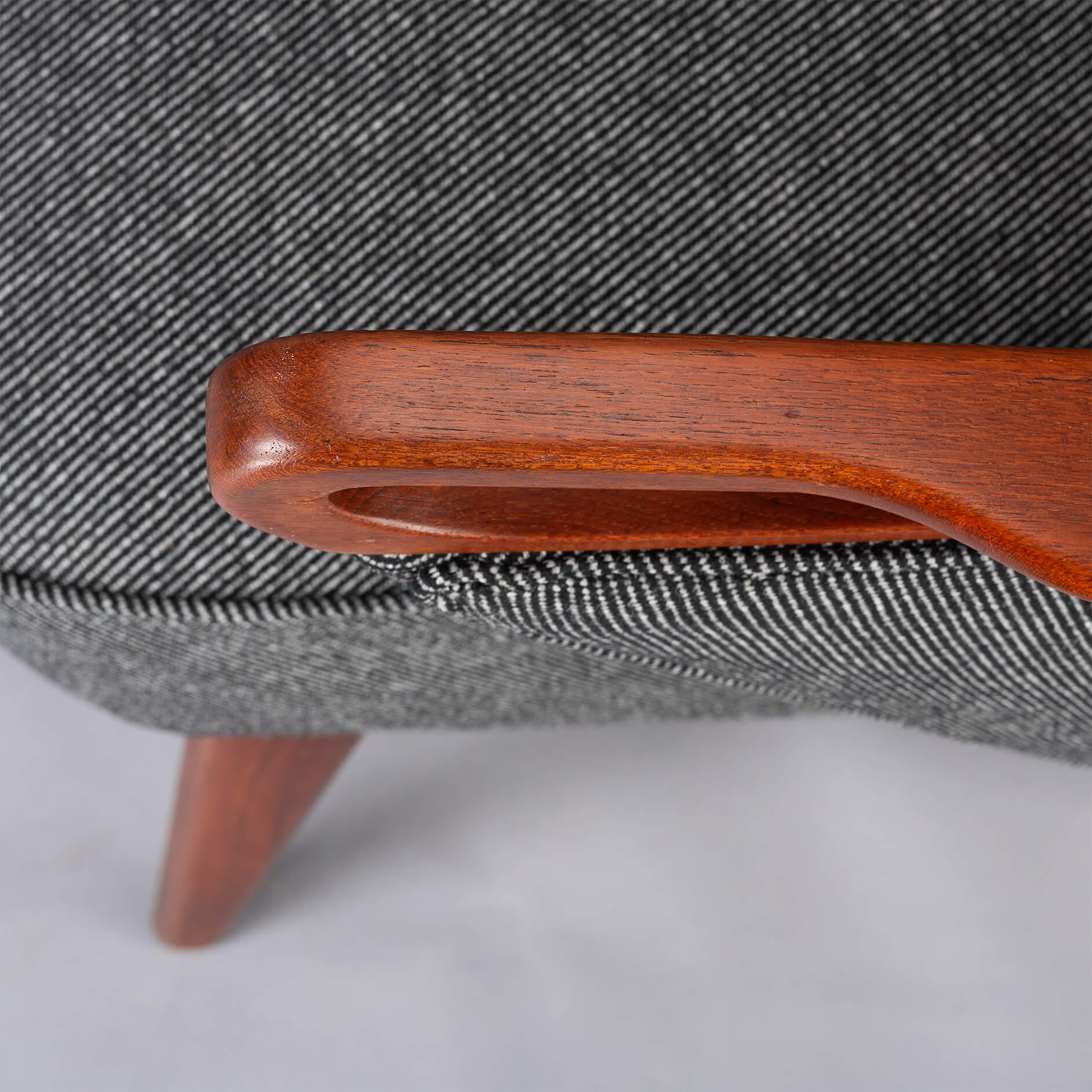 The teak armrests and legs contain very light traces of use corresponding to the age of this cool sofa!