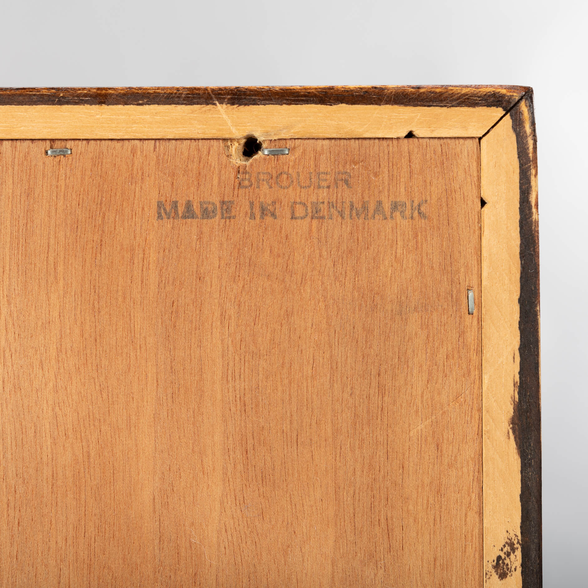 The drawer interior is made from a hardwood, likely meranti, and the drawer on the left has a sliding inner green felted shelf for storage of cutlery. For a wtf ;-) moment of your guests this is the sideboard just for that. Behind the two doors are adjustable shelves, one on each side. Some small scratches on the top, but please give it a break after 50 years, make us give this sideboard a very good vintage condition.