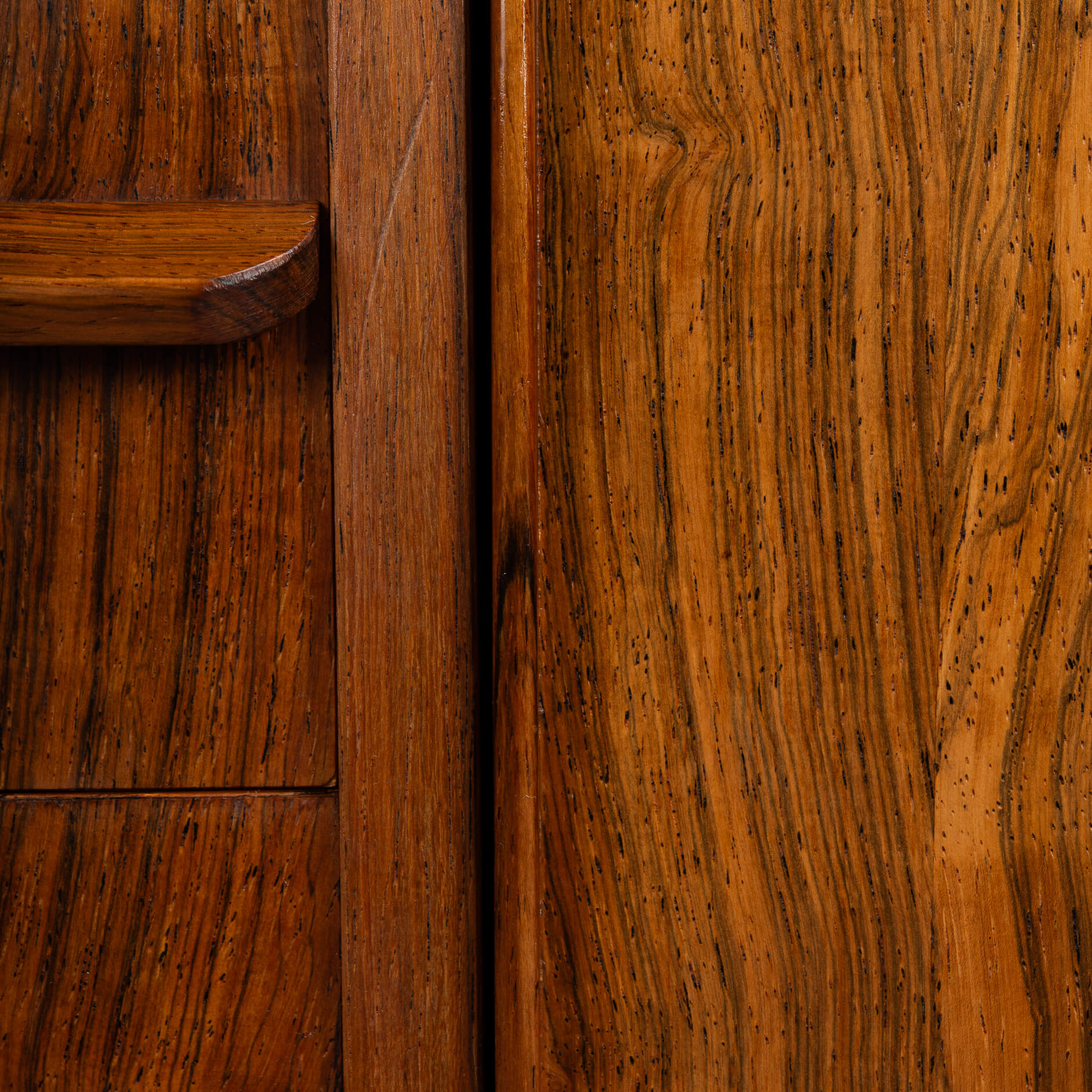 Brazilian rosewood, renowned for its rich, dark hues and intricate grain patterns, is prized for its exceptional beauty and durability. This rare and exotic wood lends a unique character to each piece, ensuring that no two sideboards are exactly alike. Its luxurious appearance and natural resilience make it a sought-after material in high-end furniture design.