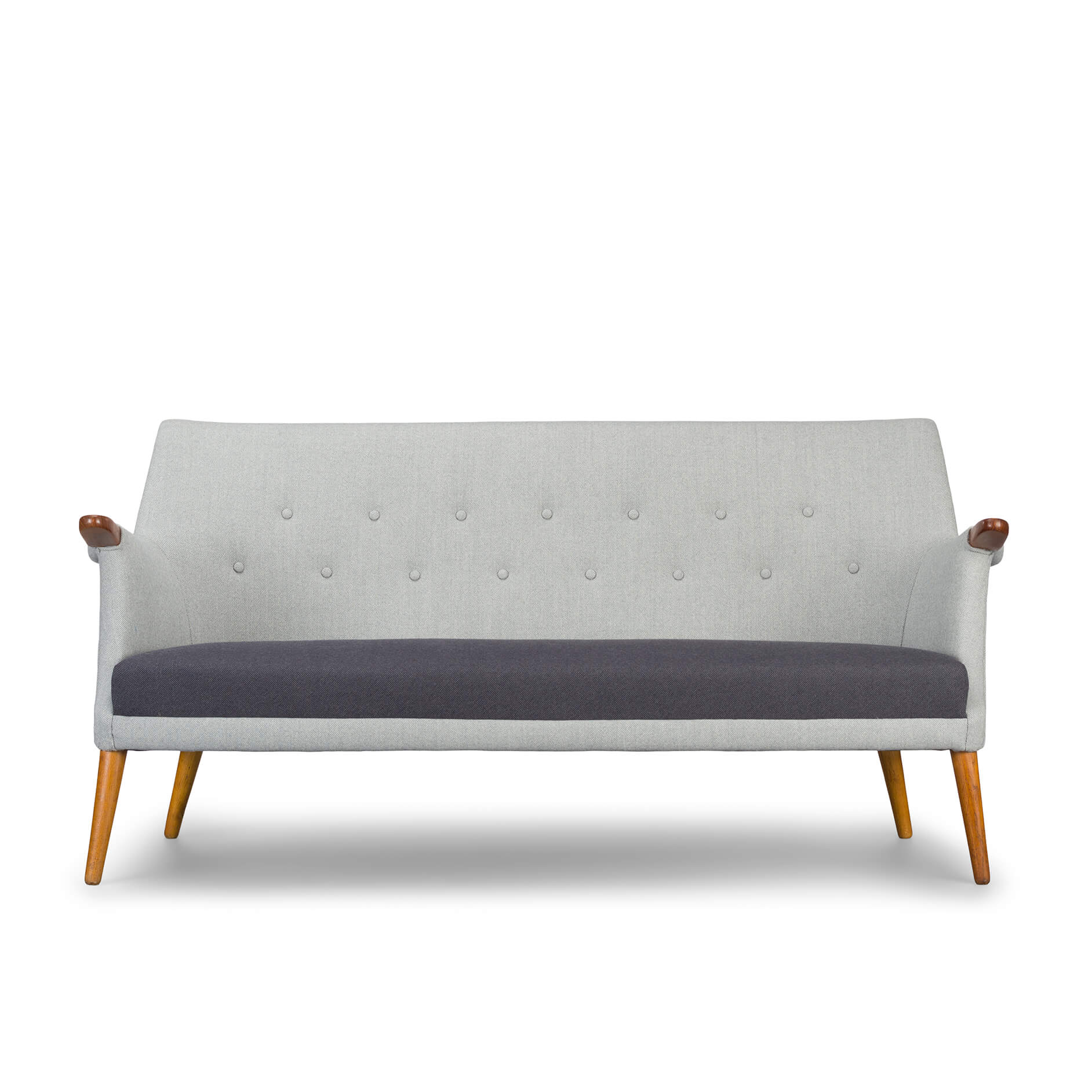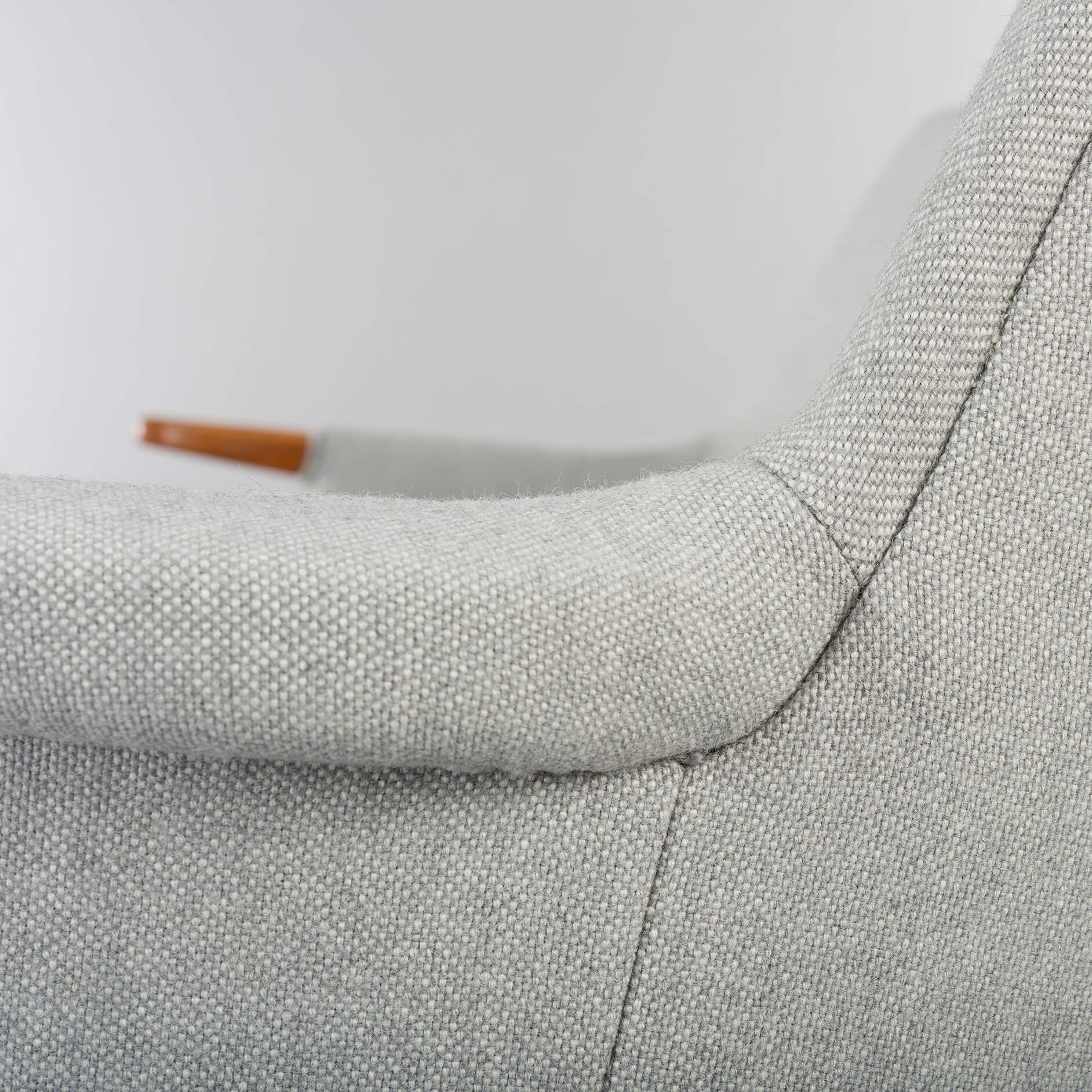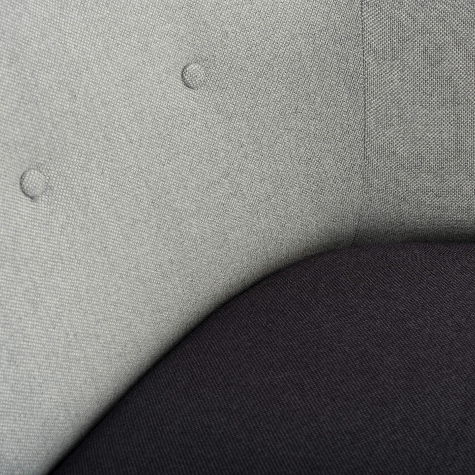 This sofa has a spaceous yet straight seat ergonomic, not suitable to potato away in front of the telly, but better suited to accomodate conversation and activity such as reading and work. With catchy twists like the grey wool covered buttons and teak armrests this sofa completes your living without overly dominating it.
