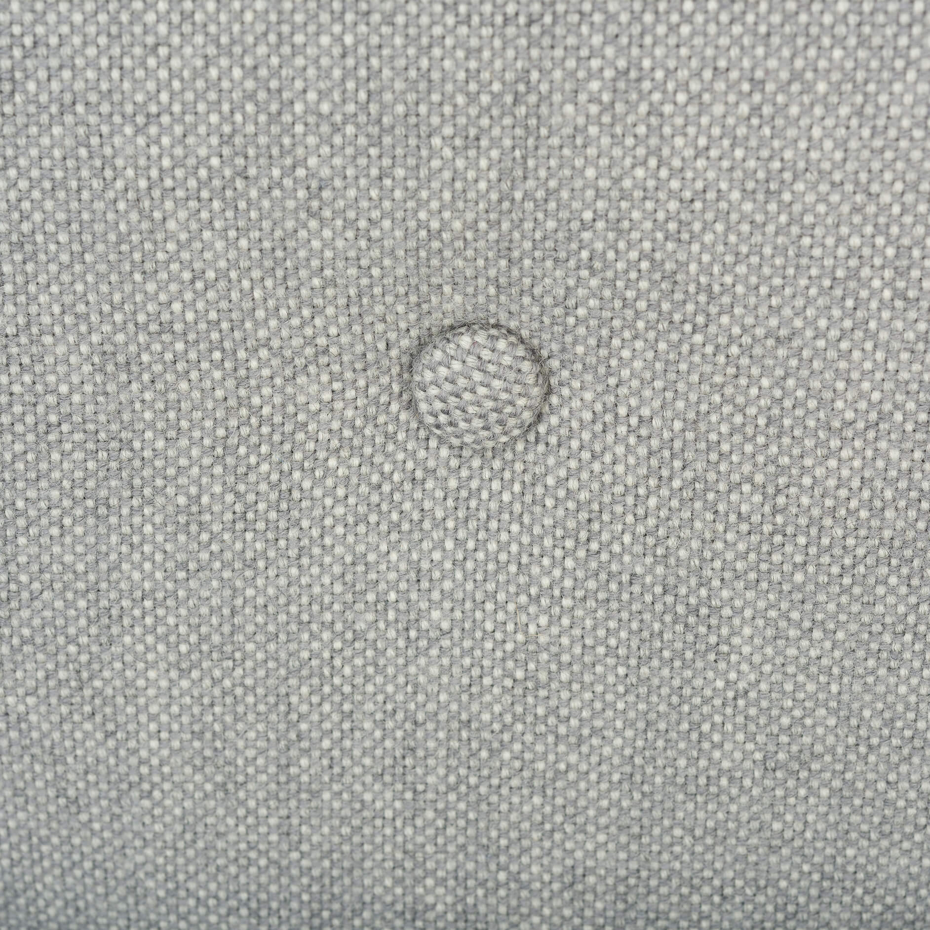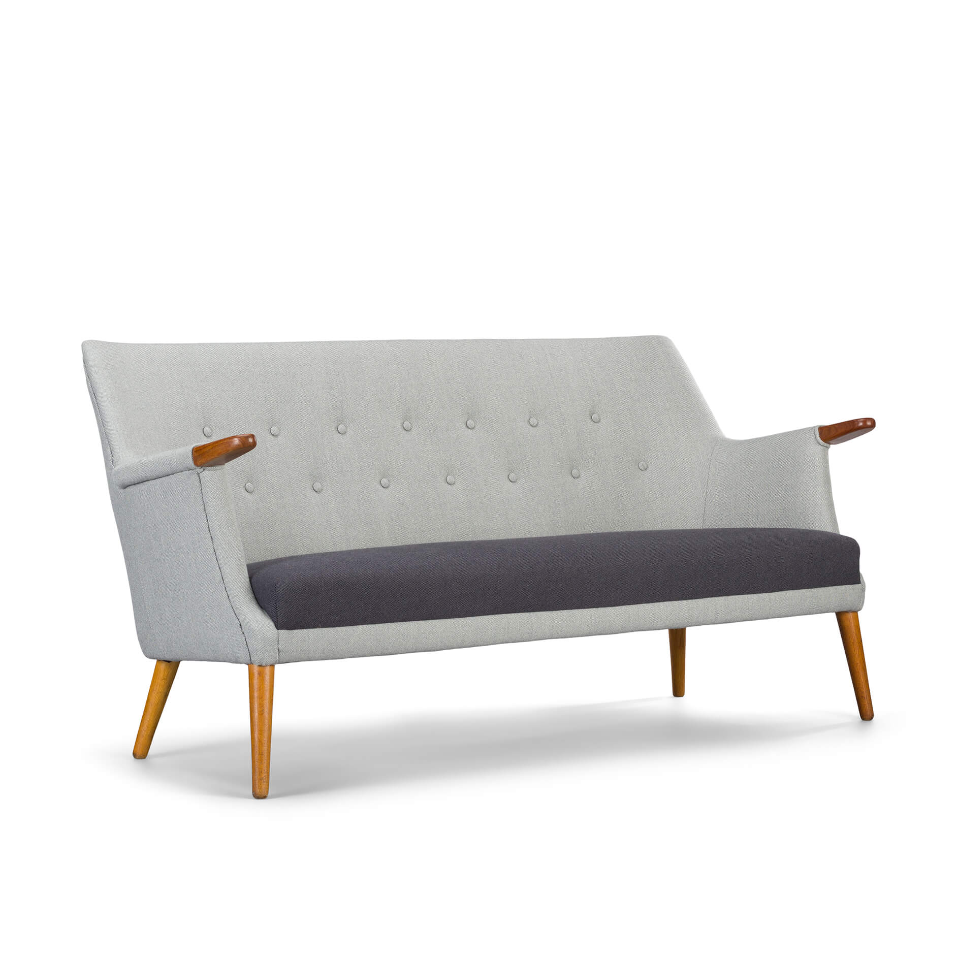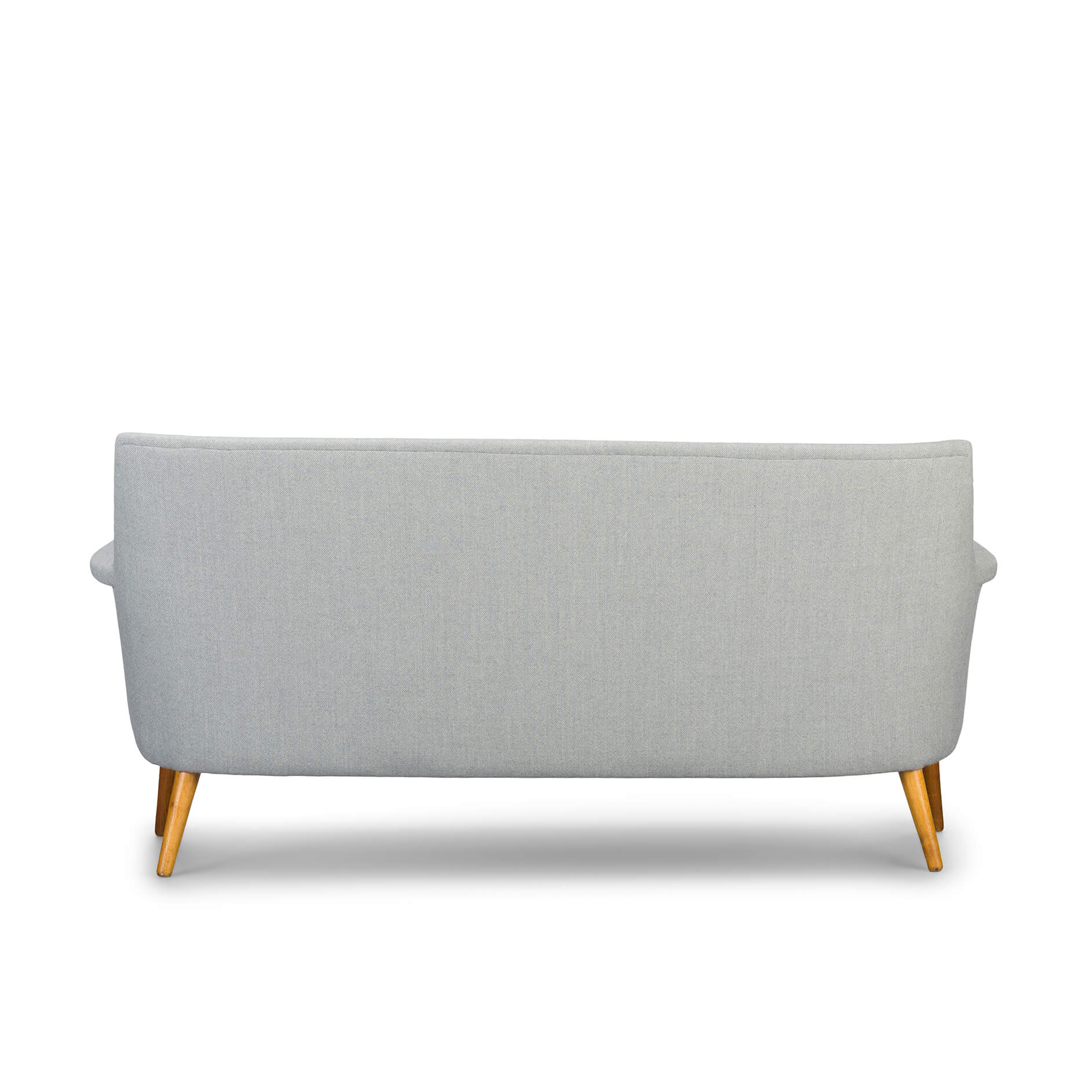This sofa has a spaceous yet straight seat ergonomic, not suitable to potato away in front of the telly, but better suited to accomodate conversation and activity such as reading and work. With catchy twists like the grey wool covered buttons and teak armrests this sofa completes your living without overly dominating it.