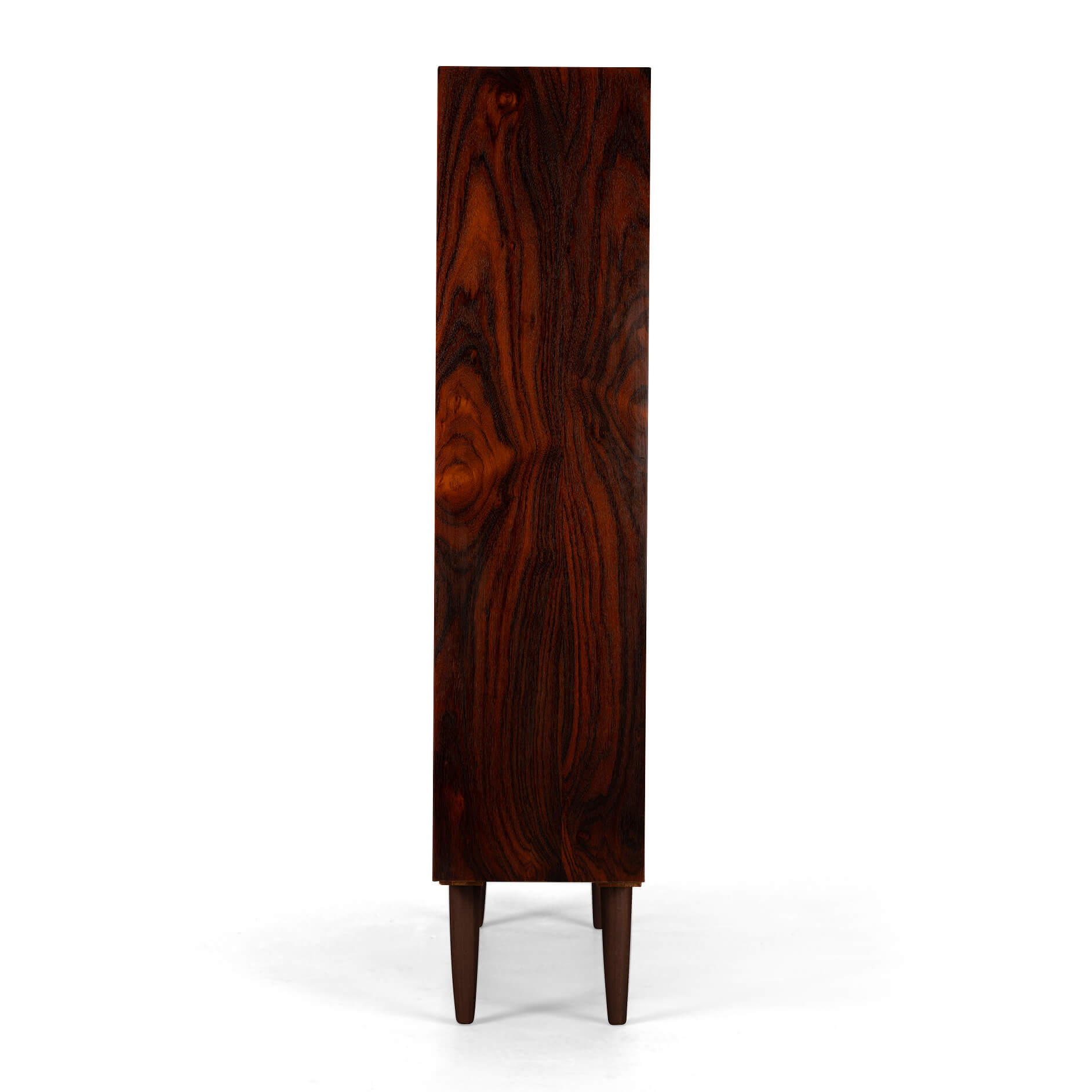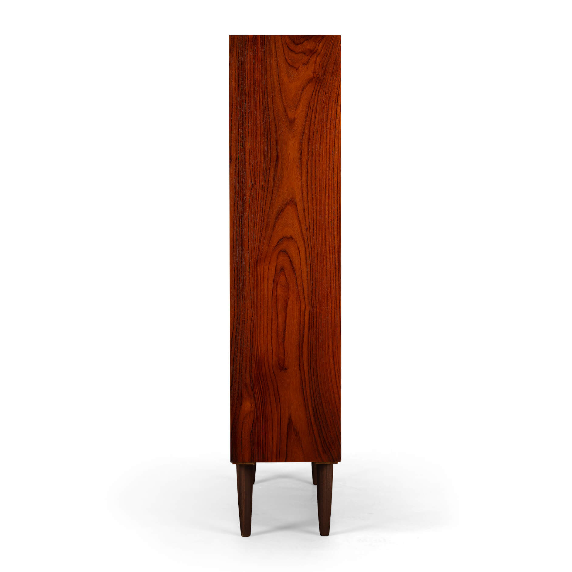 Danish bookcase in beautiful rosewood veneer. Design by IB Kofod Larsen and made by Faarup Mobelfabrik. This bookcase has a total of 8 height-adjustable horizontal shelves. We have two more shelves that are not in this picture. In addition, we have 1 extra horizontal shelf over the entire width of the bookcase. So the possibilities to arrange the cabinet according to your own insight are great!