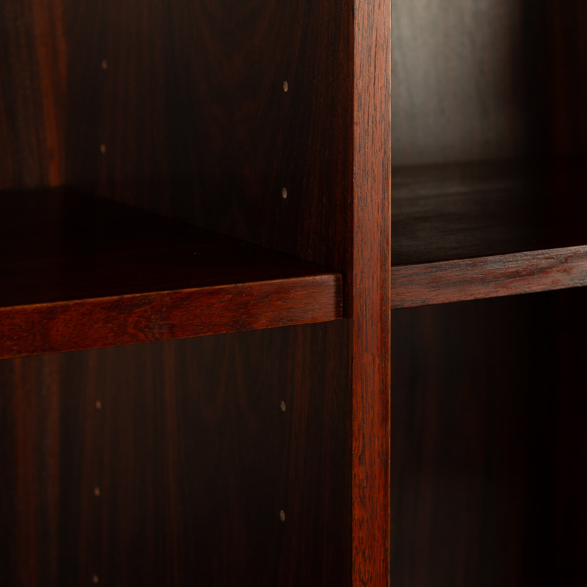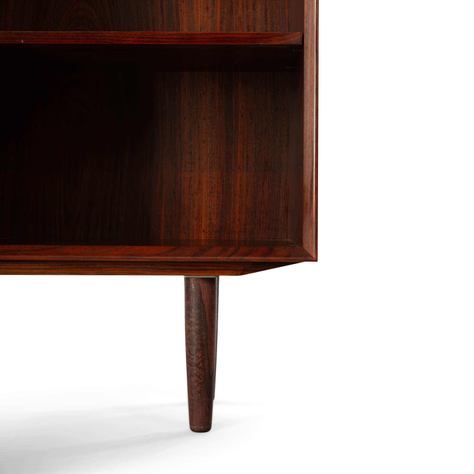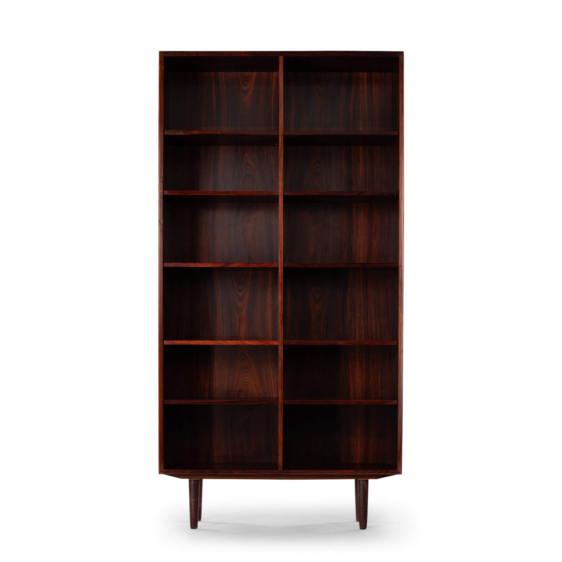 Danish high bookcase in beautiful rosewood veneer by E. Brouer made in his own Brouer Mobelfabrik. Especially this high model is rare nowadays. This bookcase is in very good vintage condition. There are only some scratches on one of the sides. See picture.