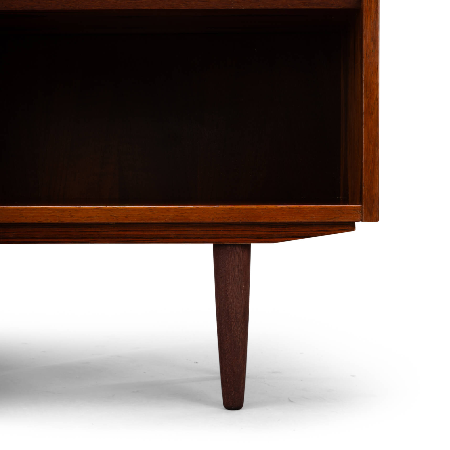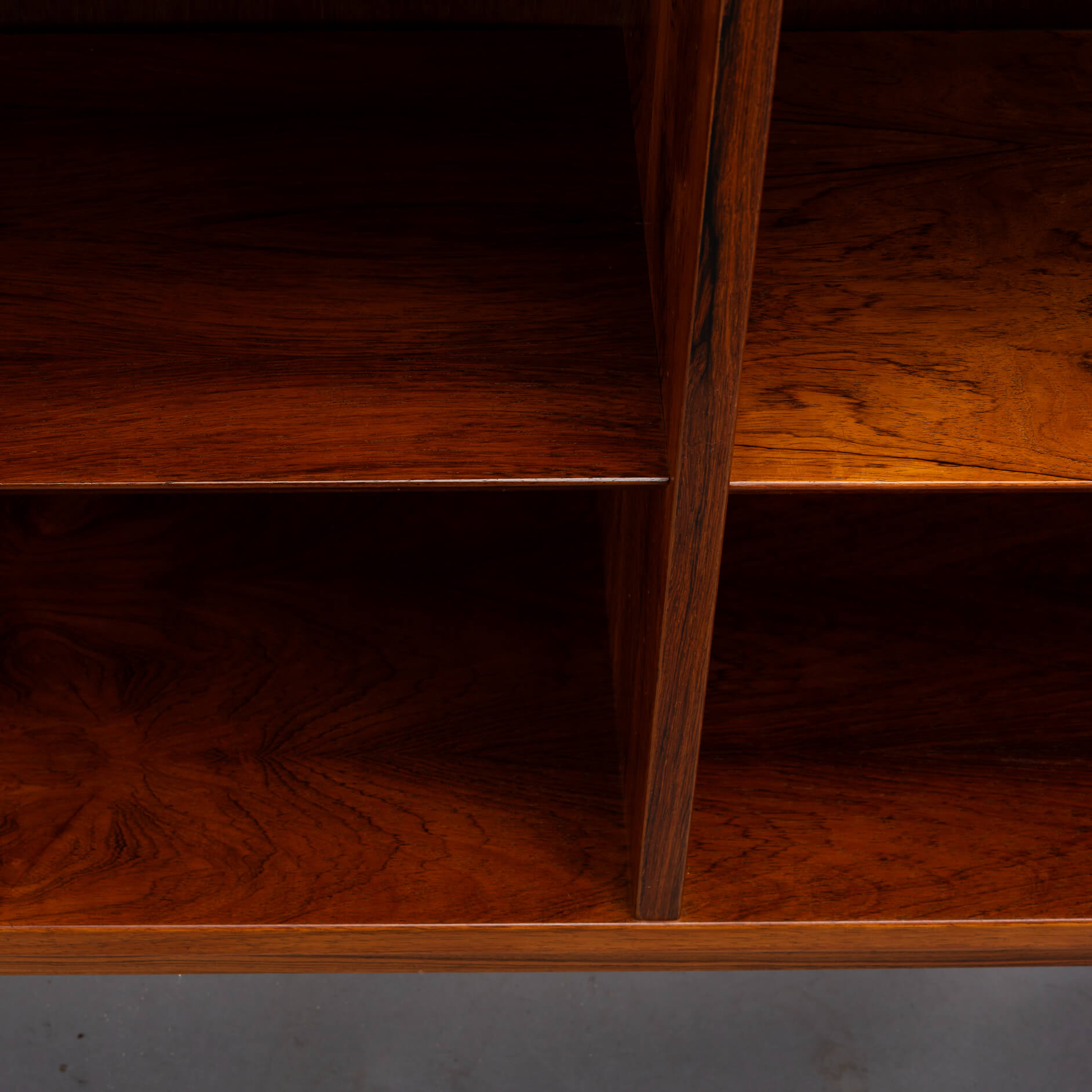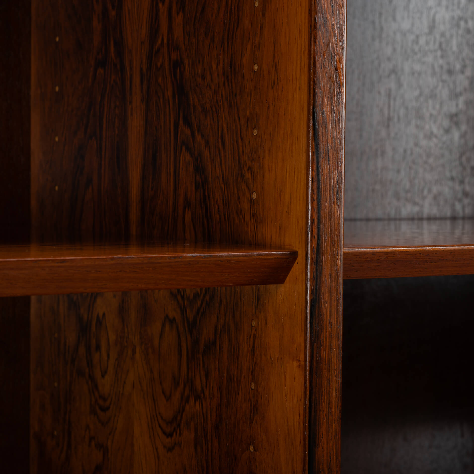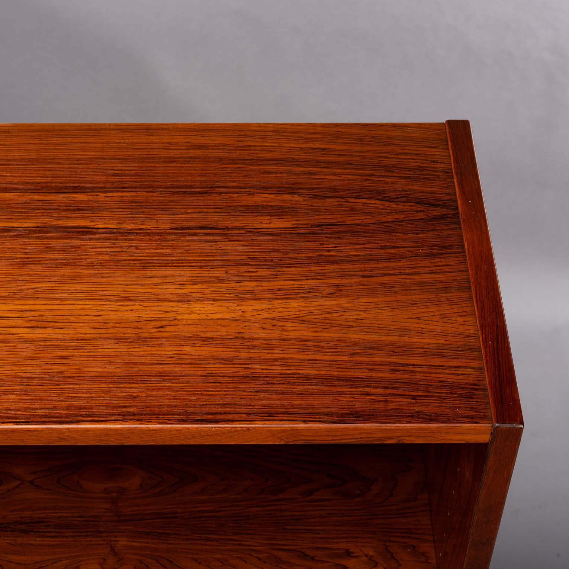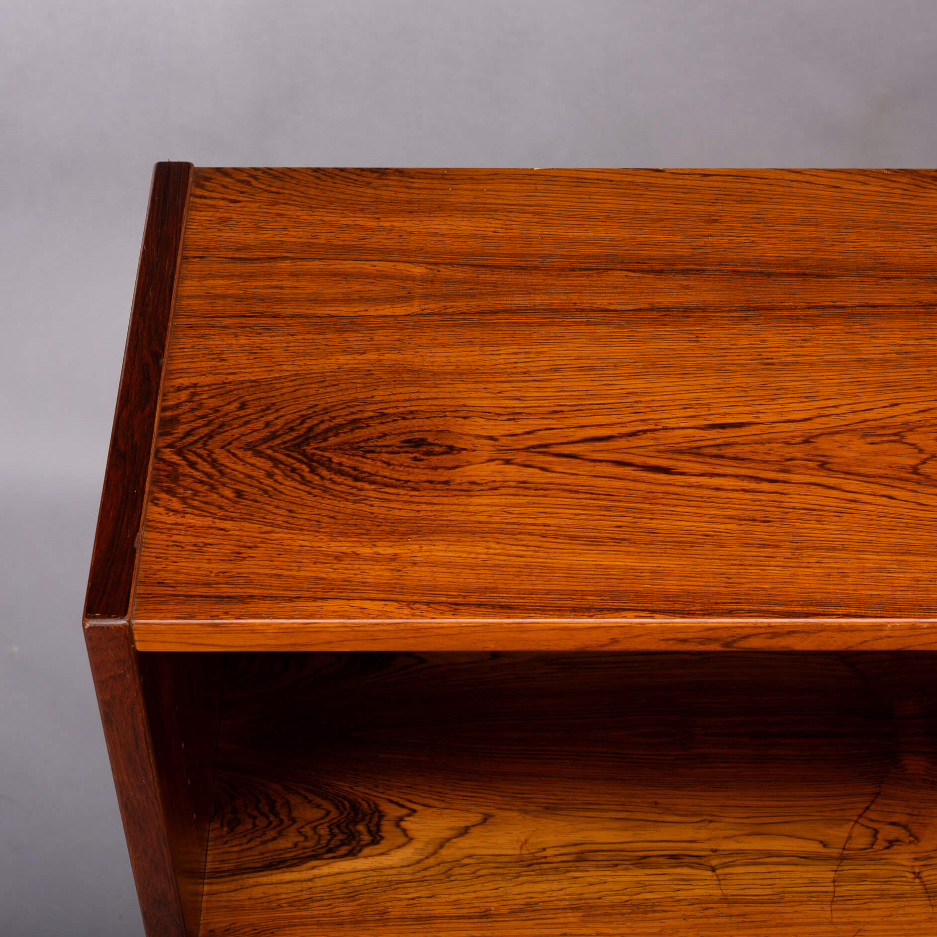 Unfortunately, the sticker has been lost over the years. However, a Hundevad bookcase can always be recognized by the planks that are beveled.