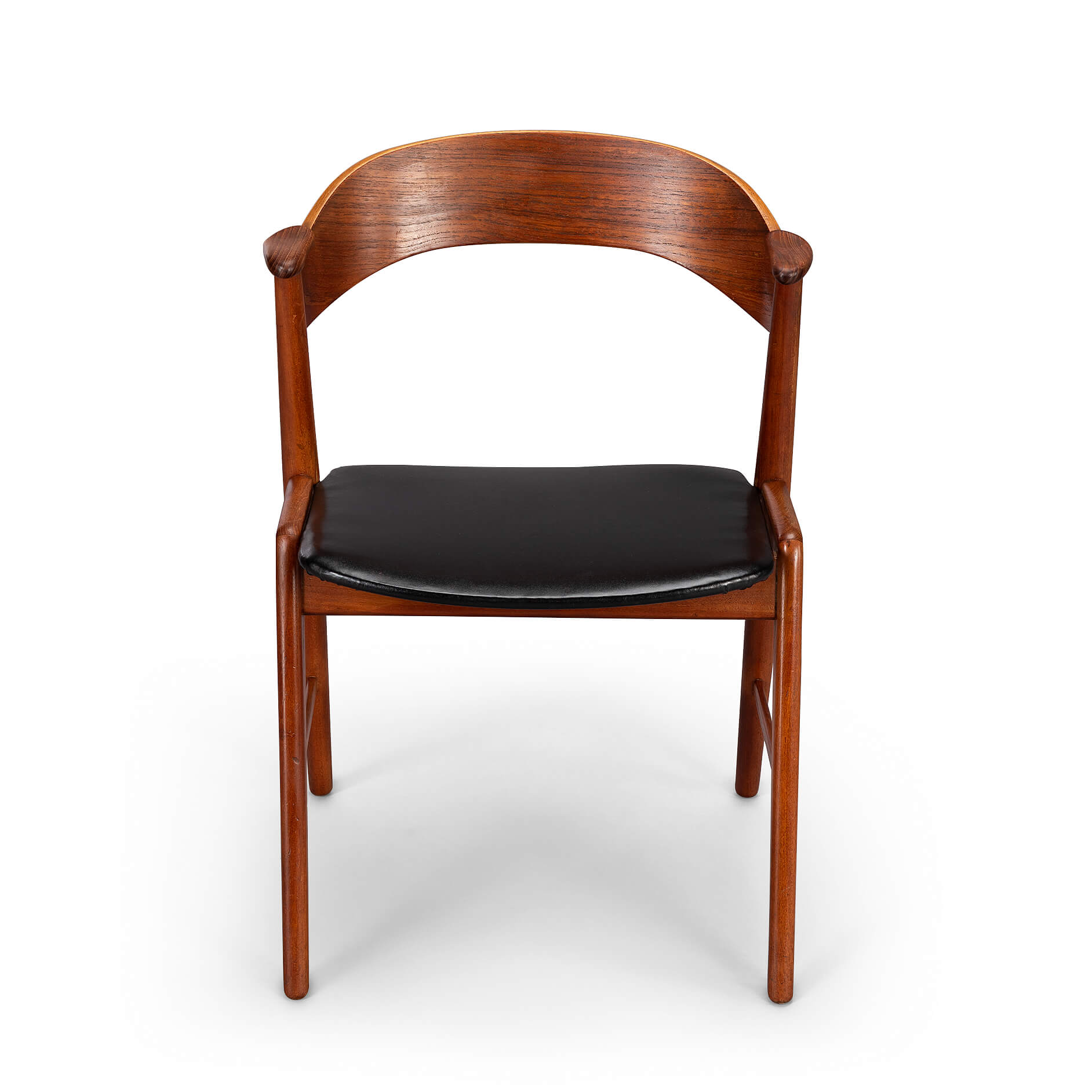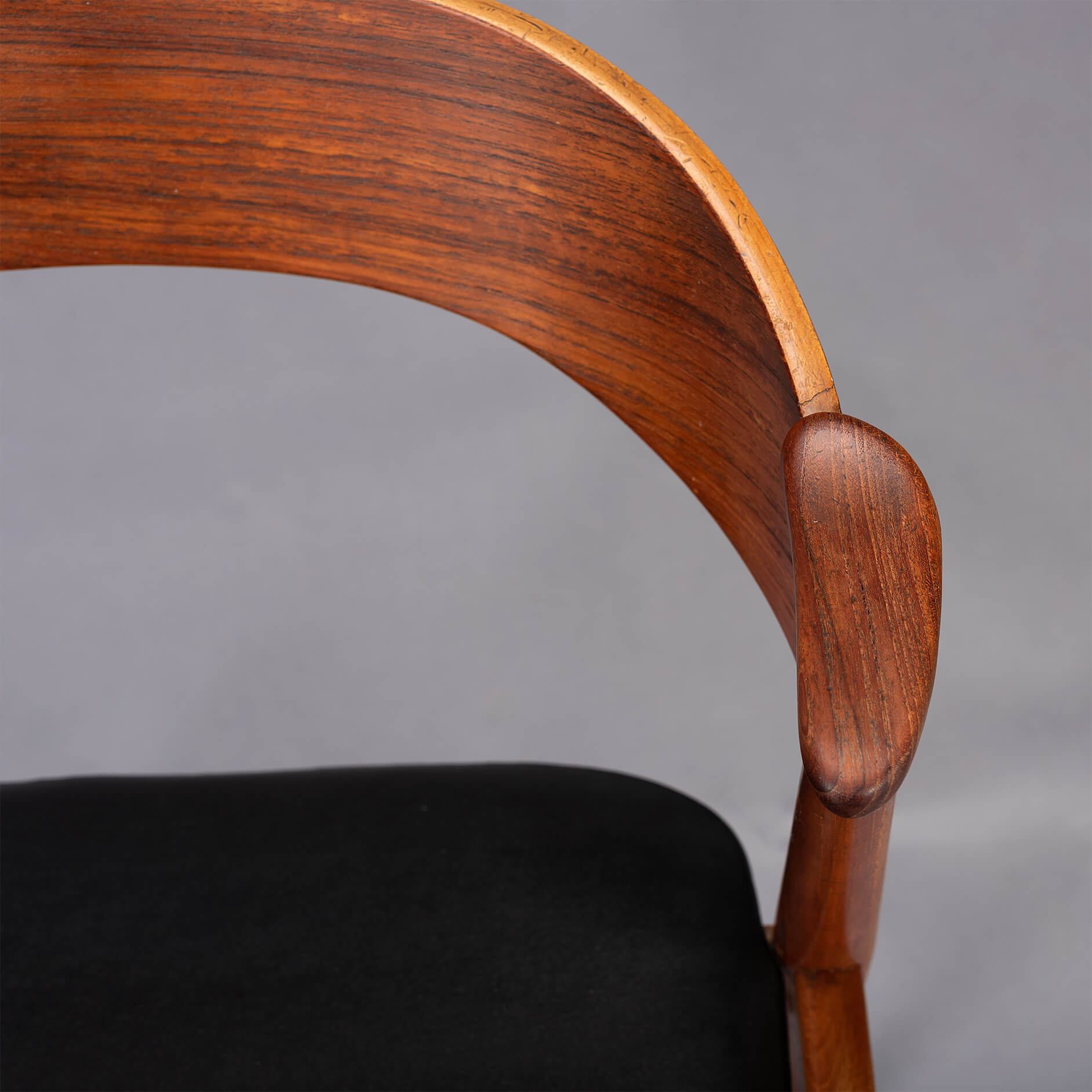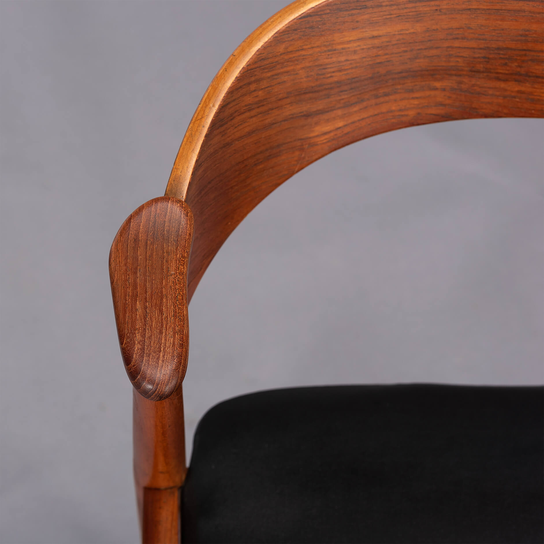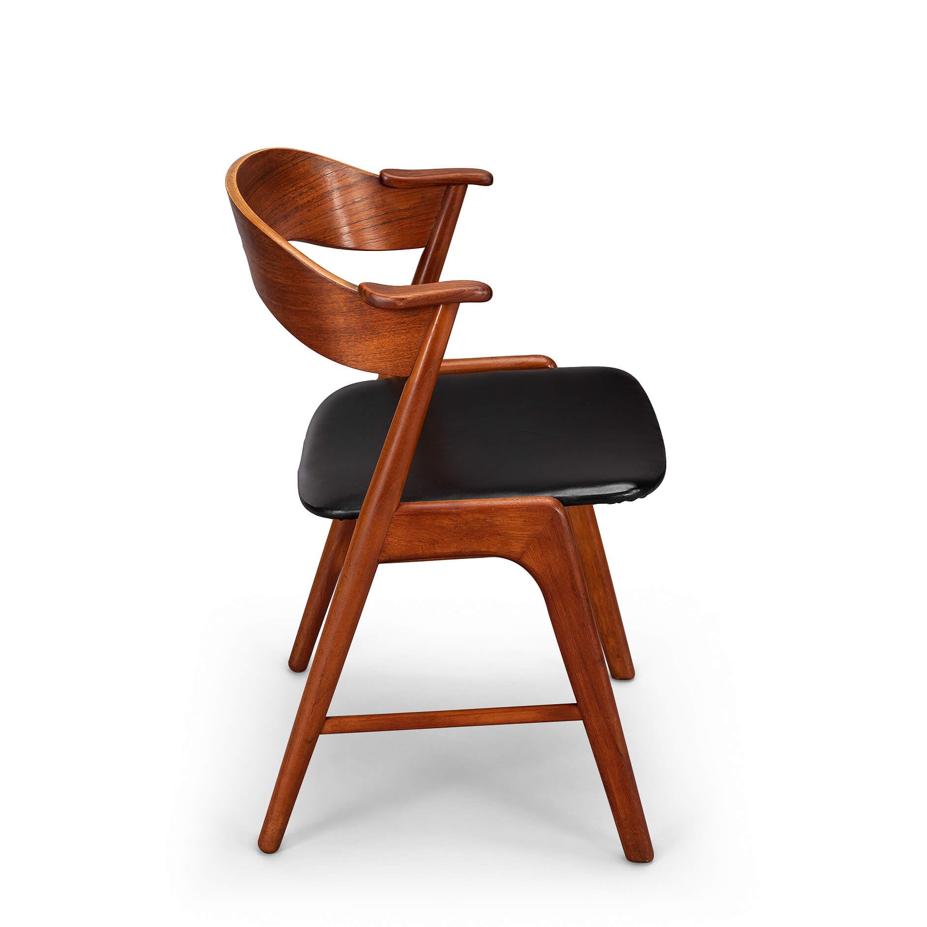 We would like to say 'a typical Kai Kristiansen' design style on this elegantly cut dining chair or desk chair. This vintage chair, model 32 is designed by Kai Kristiansen in de 1960s. Beautiful design with small armrests and beautiful round backrest made of teak!