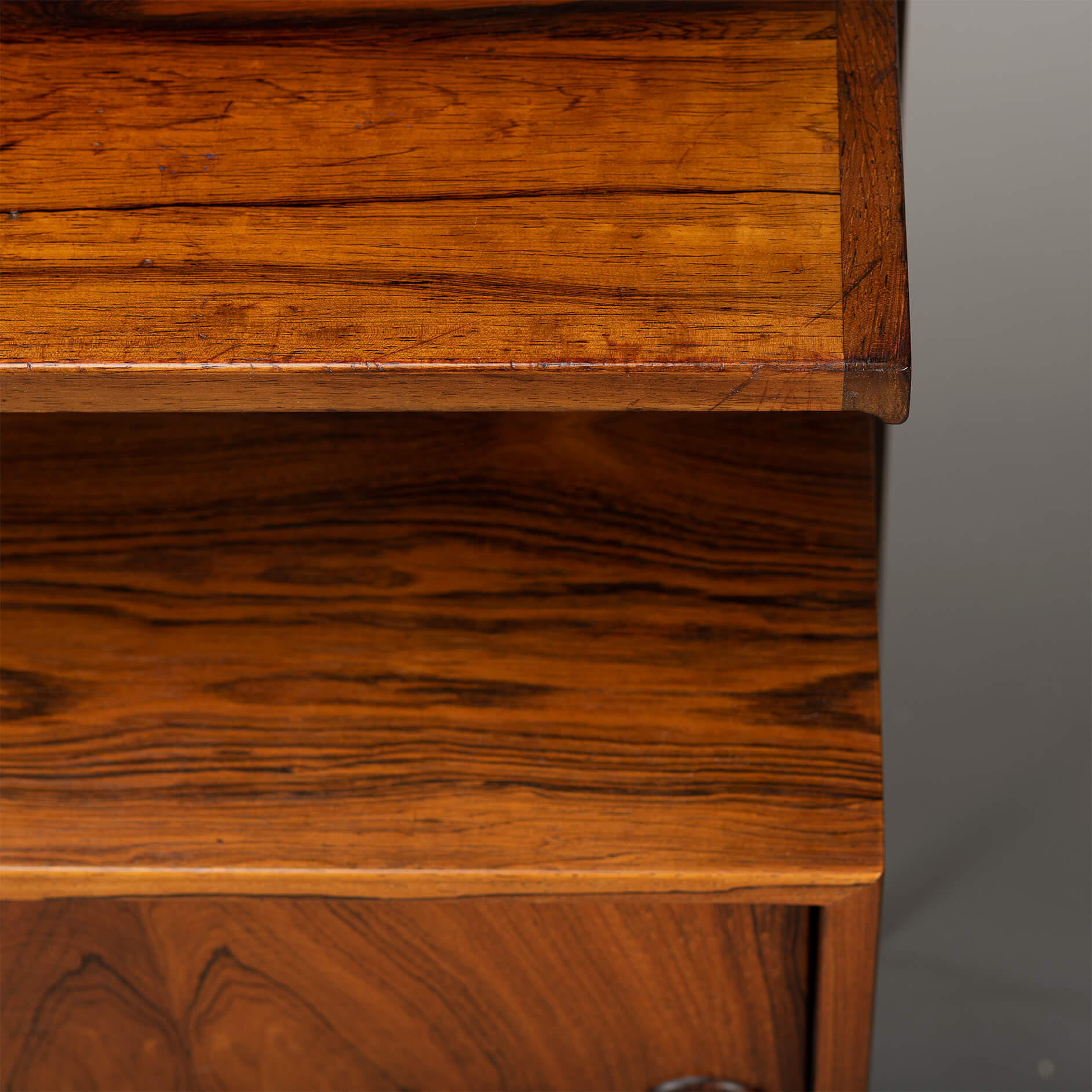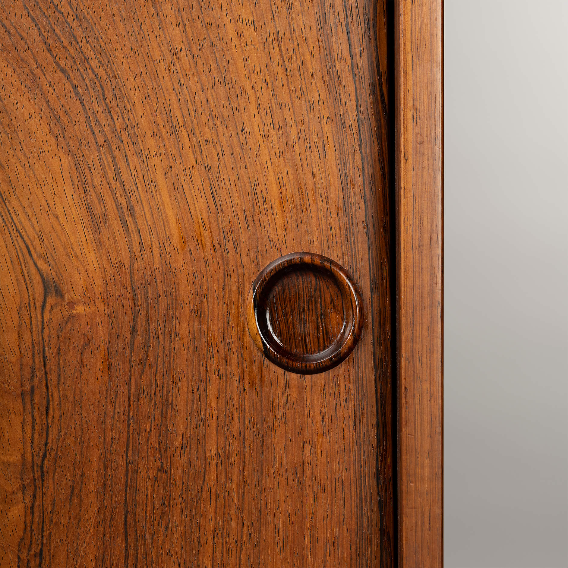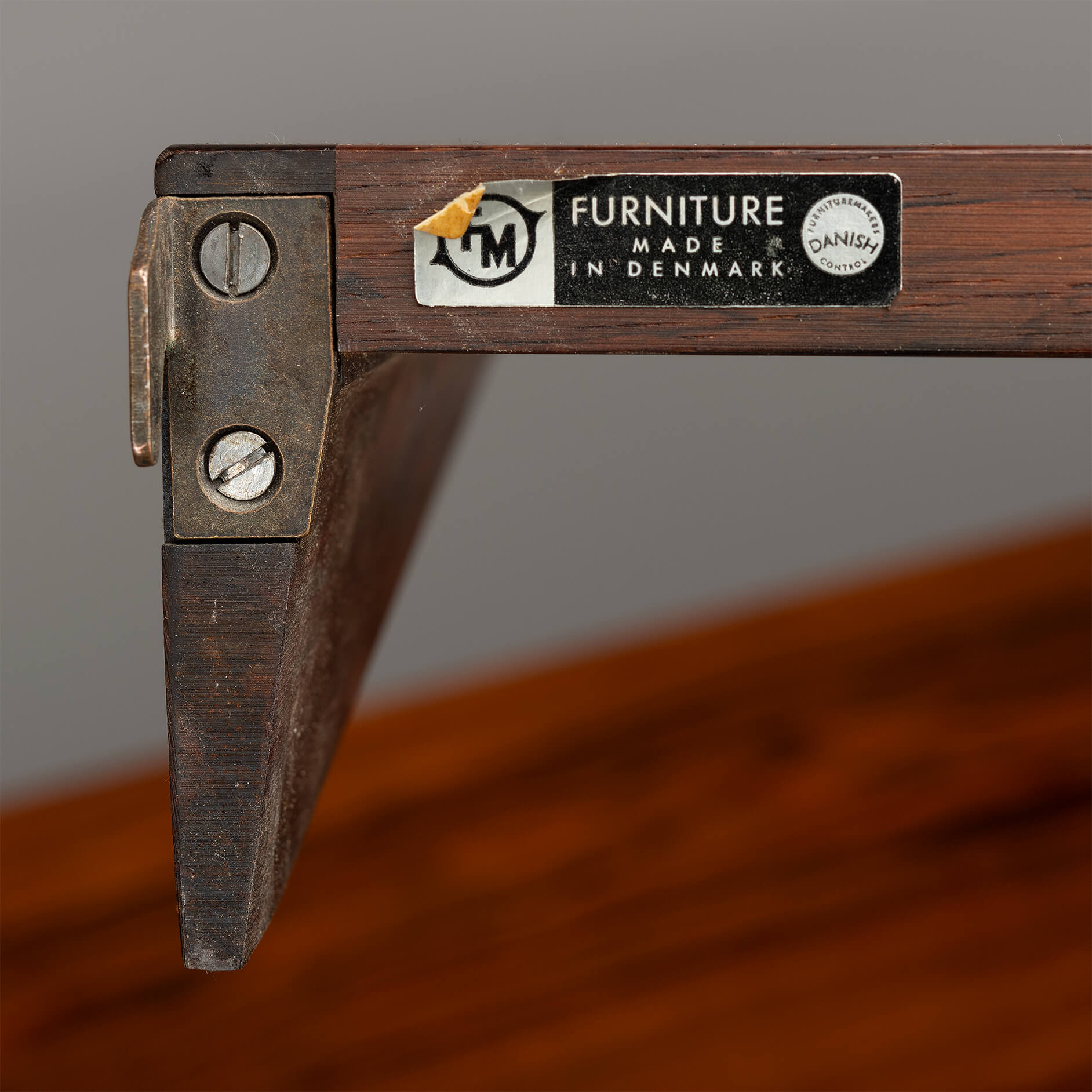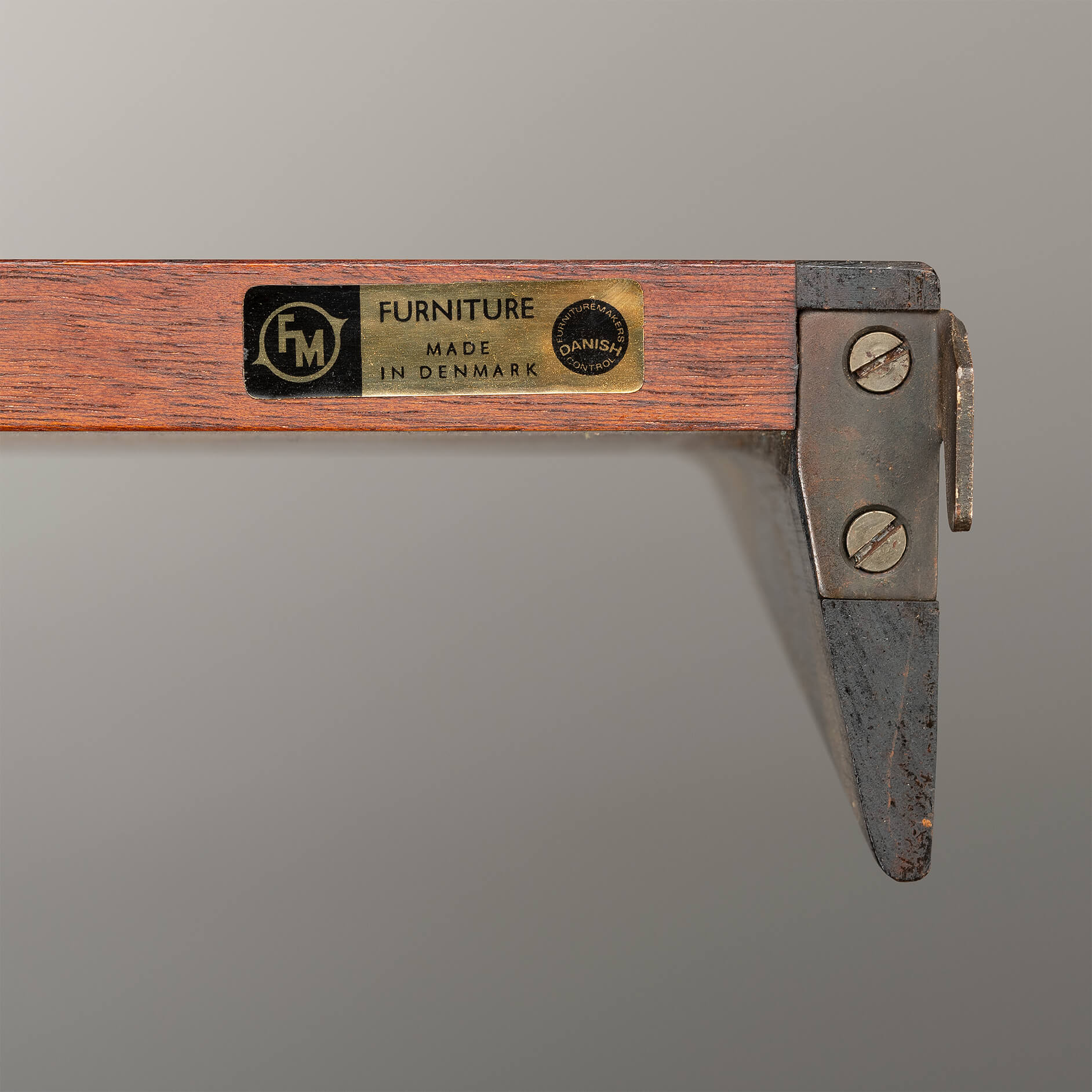 Danish design by Kai Kristiansen and produced by FM Mobler. FM is short for Feldballes Møbelfabrik that had the fortune to have succesful designer Kai Kristiansen on their side in the 50s and 60s. Kai Kristiansens most successful design for FM was the FM Reolsystem Wall Unit from 1957. Proved to be a huge success with sales throughout Europe and the US. The modular shelving unit was made in both teak and rosewood and came in a variety of add-on shapes and sizes to suit ones need.