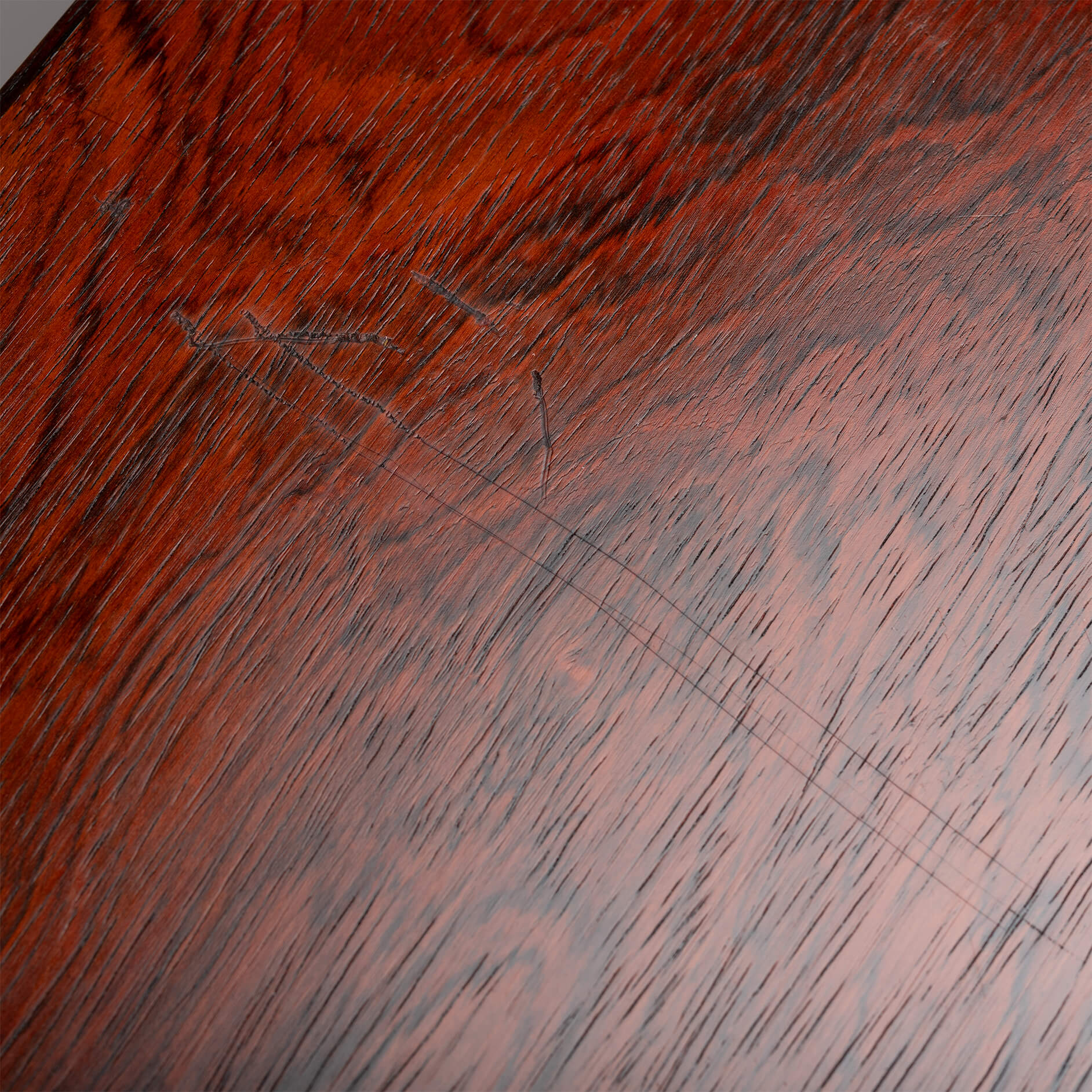 The cupboard stands on its original base. Unfortunately the sticker of DR Møbler from Viby has fallen off. This case is in a very good vintage condition with subtle traces of a few scratches on the top. Photographed with backlight to make them visible. Also some discoloration on the side of the top probably from a bookcase that has been standing on top. They give face to the cupboard and are part of his 60-year-old story ;-)