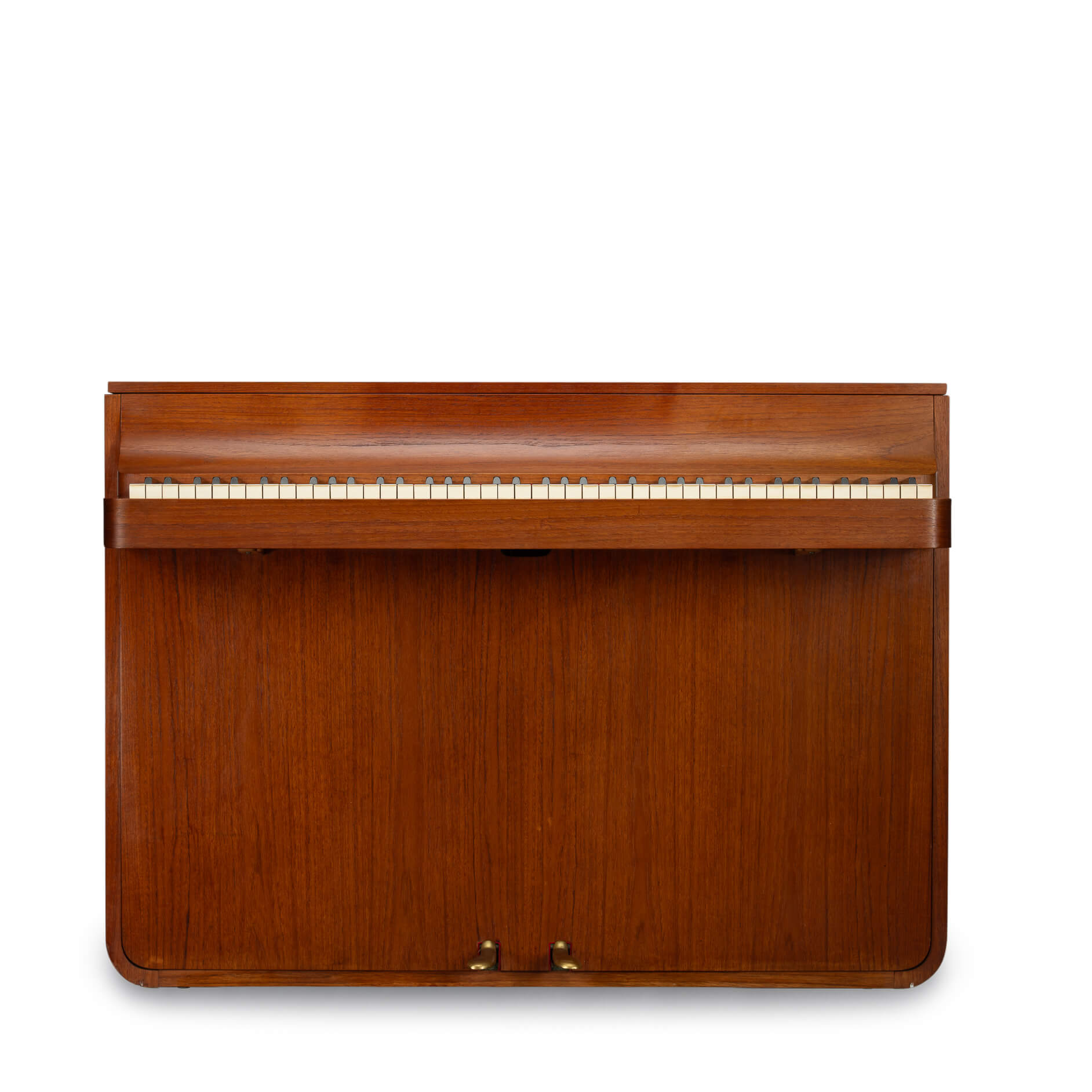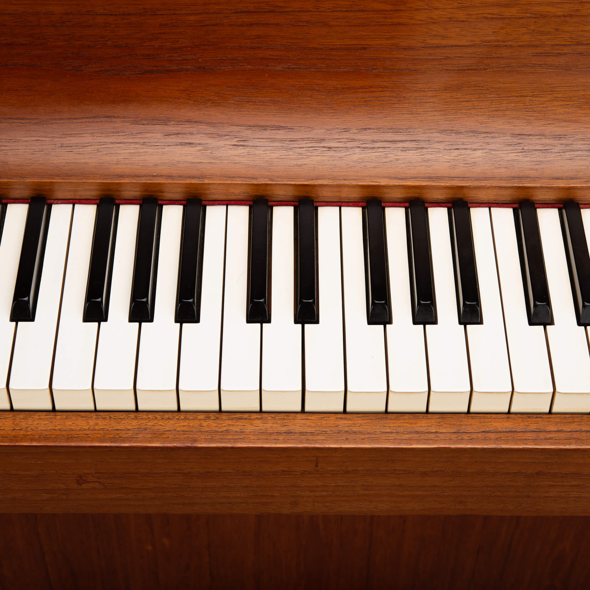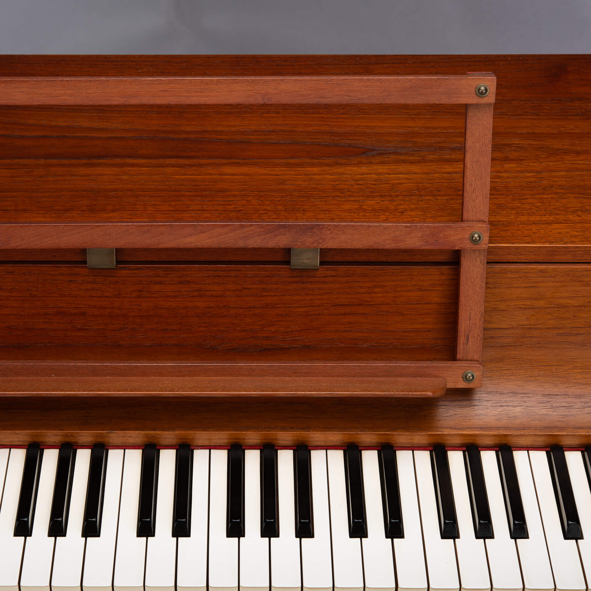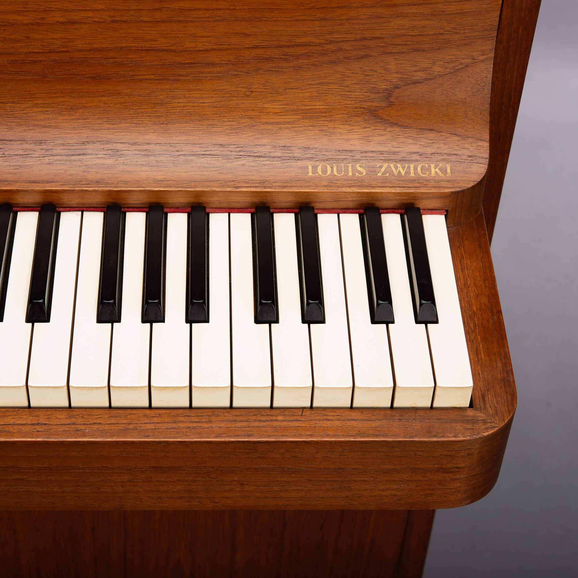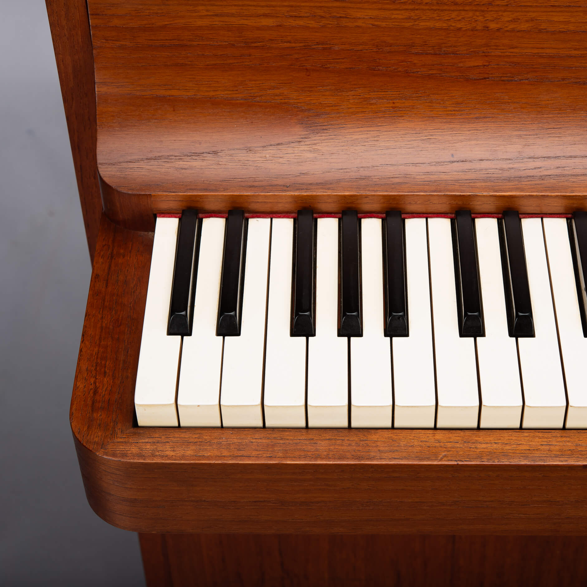 A rare Danish midcentury pianette made of teak. It is called pianette due to the 82 keys rather than the standard 88 of a full size piano. This pianette is made by renowned piano maker Louis Zwicki. Every piano from Louis Zwicki is numbered. This one is No. 7891. This piece stands out in a modern interior, lobby of a hotel etc.