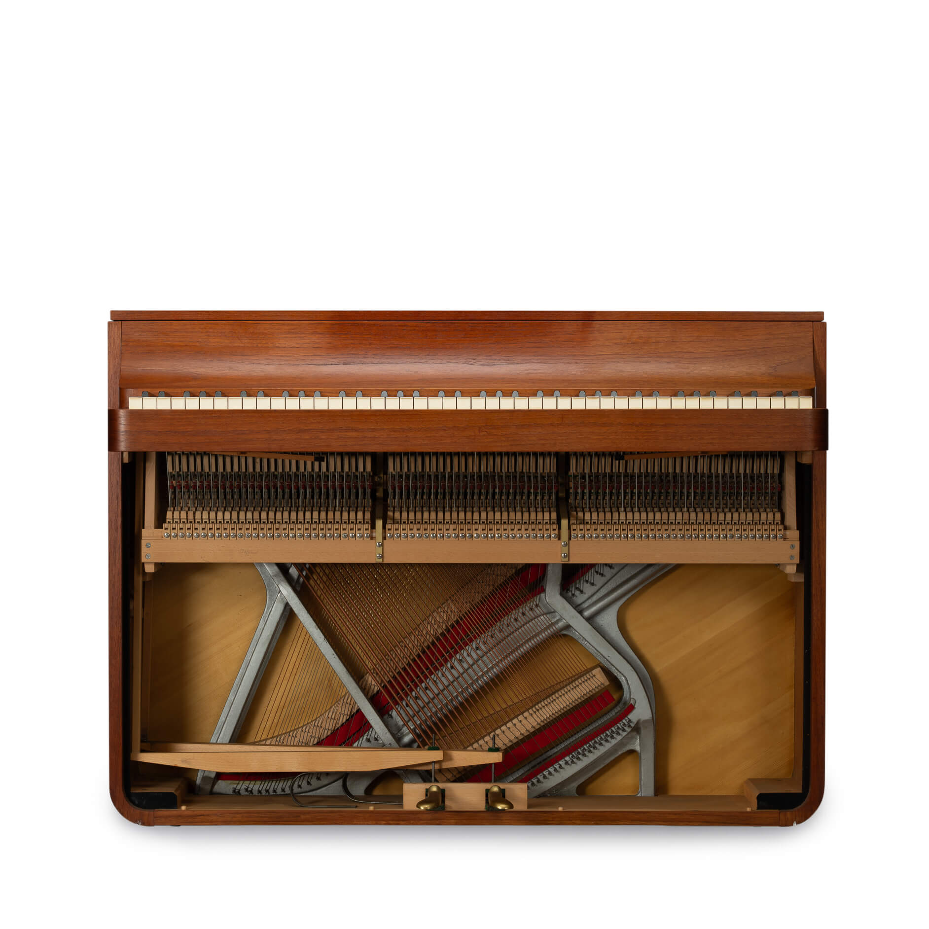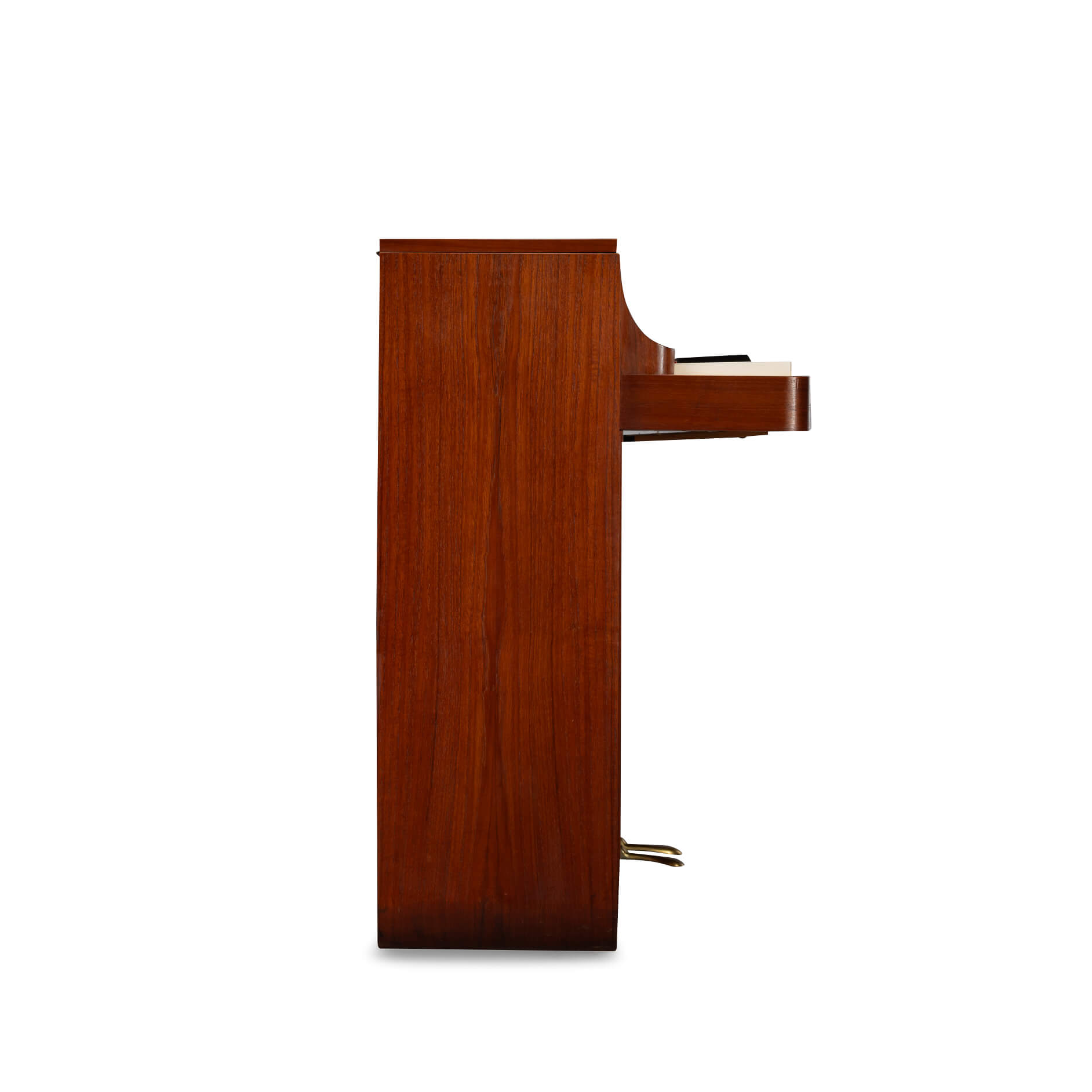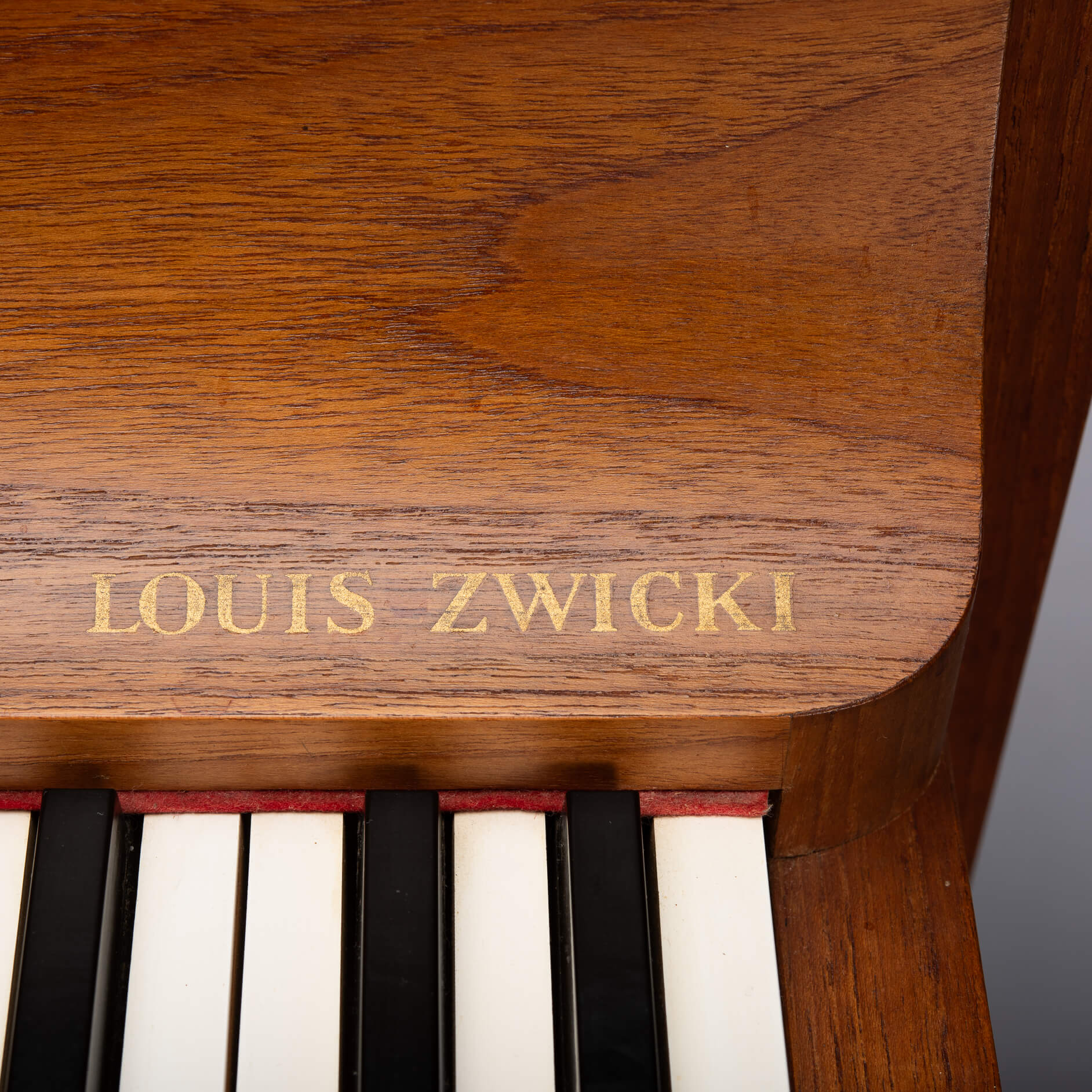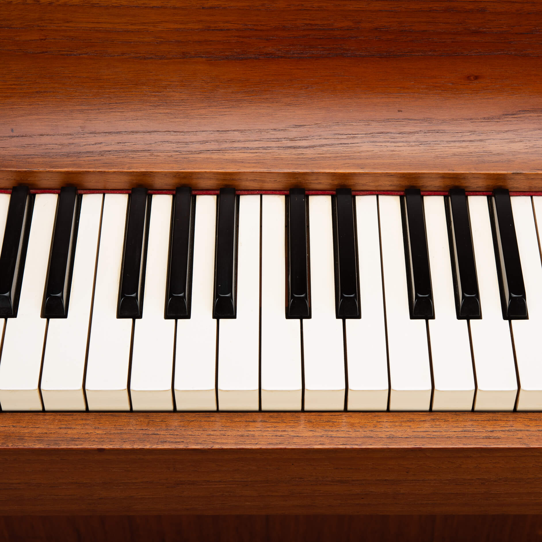 A rare Danish midcentury pianette made of teak. It is called pianette due to the 82 keys rather than the standard 88 of a full size piano. This pianette is made by renowned piano maker Louis Zwicki. Every piano from Louis Zwicki is numbered. This one is No. 7891. This piece stands out in a modern interior, lobby of a hotel etc.