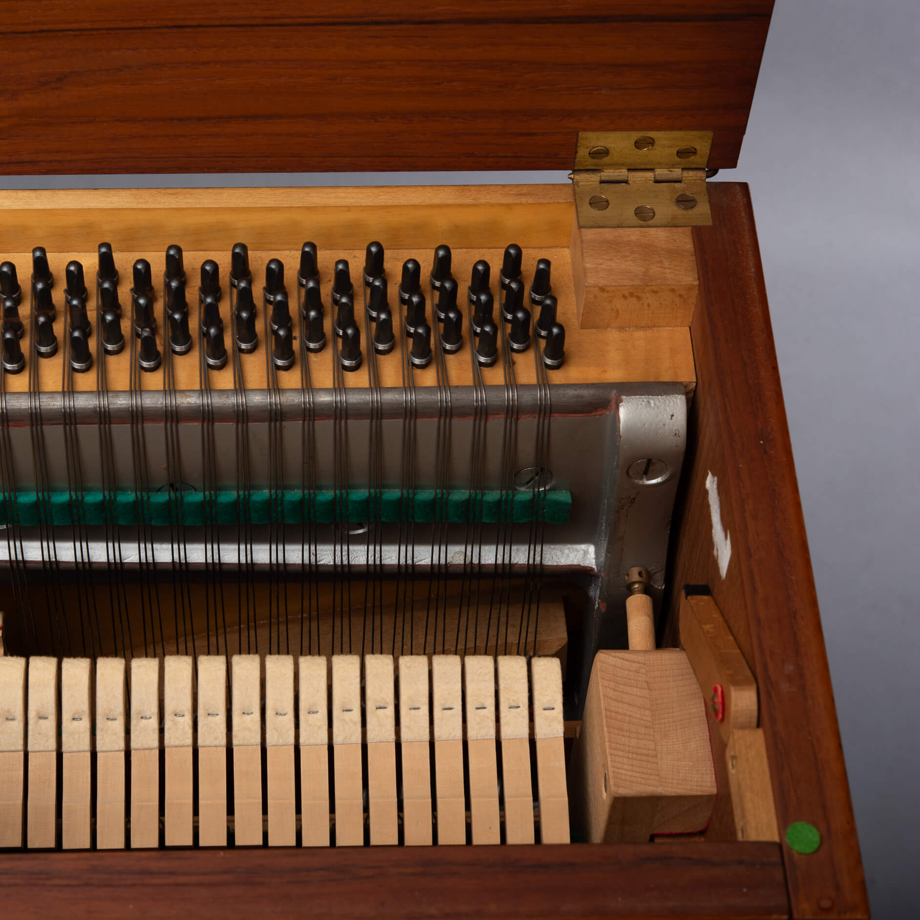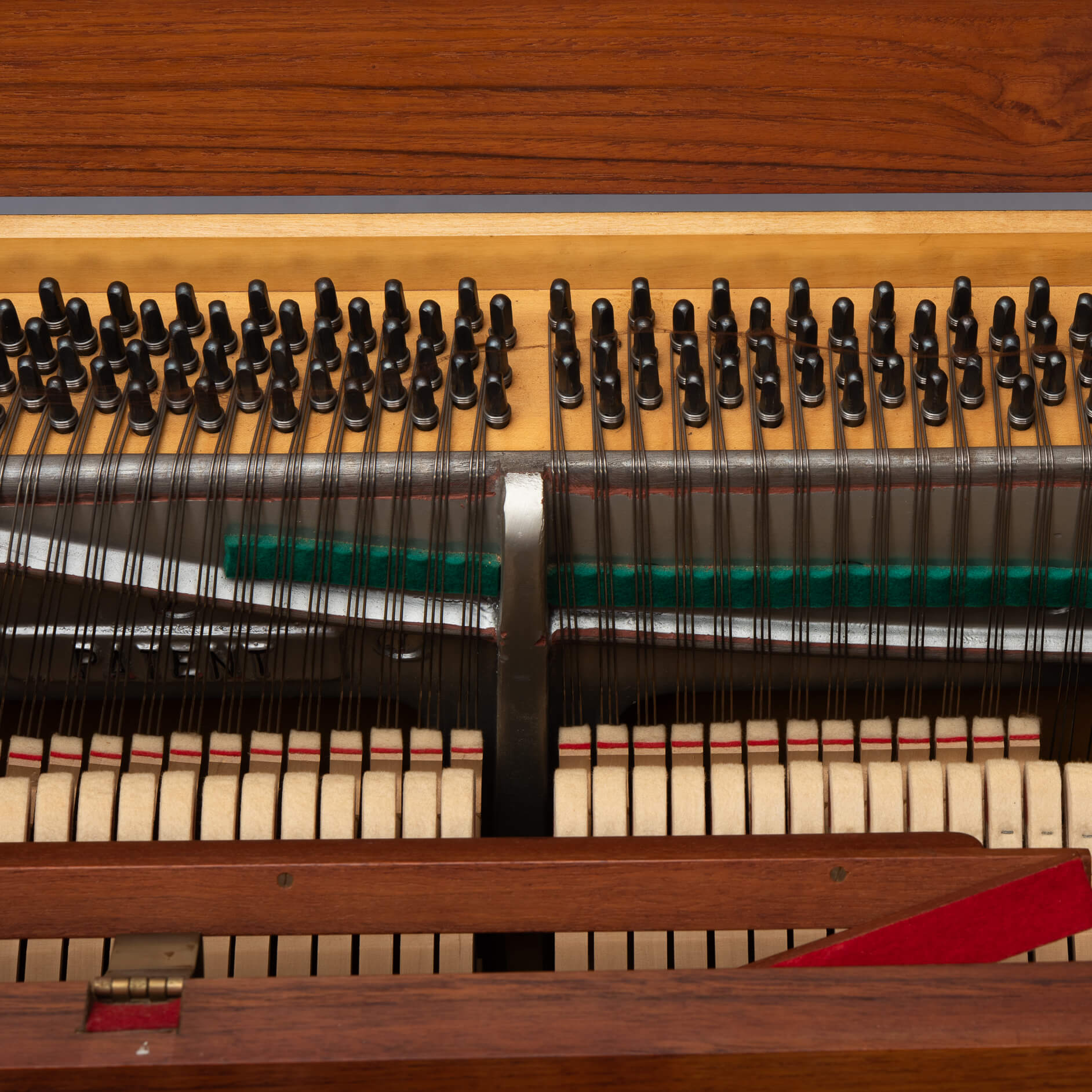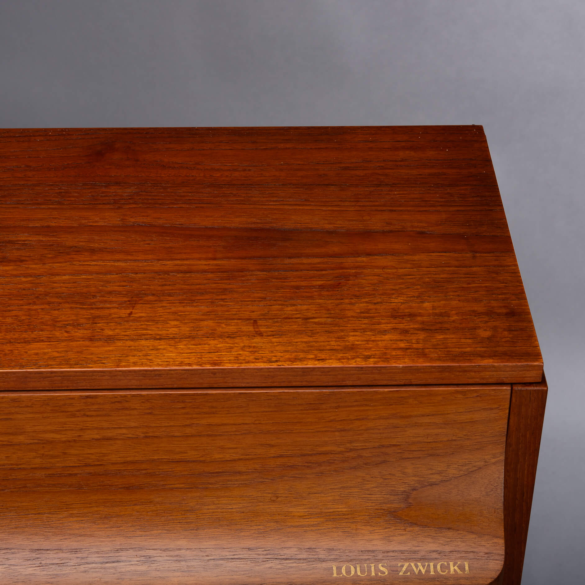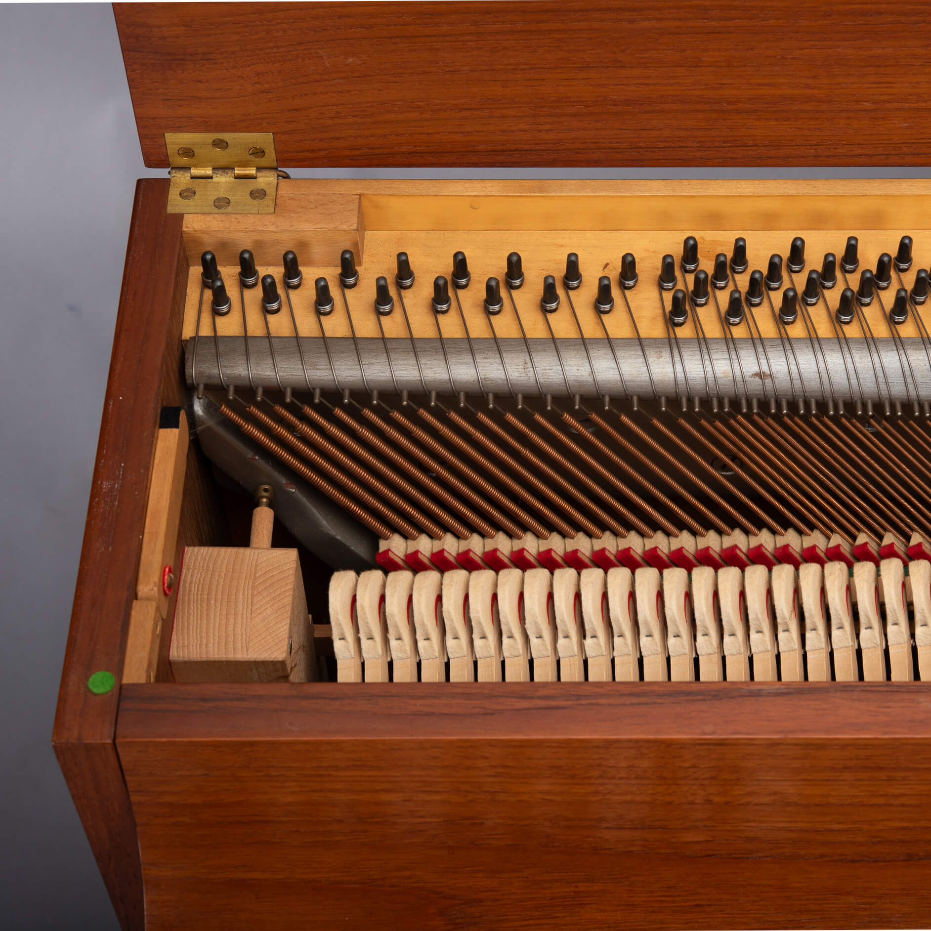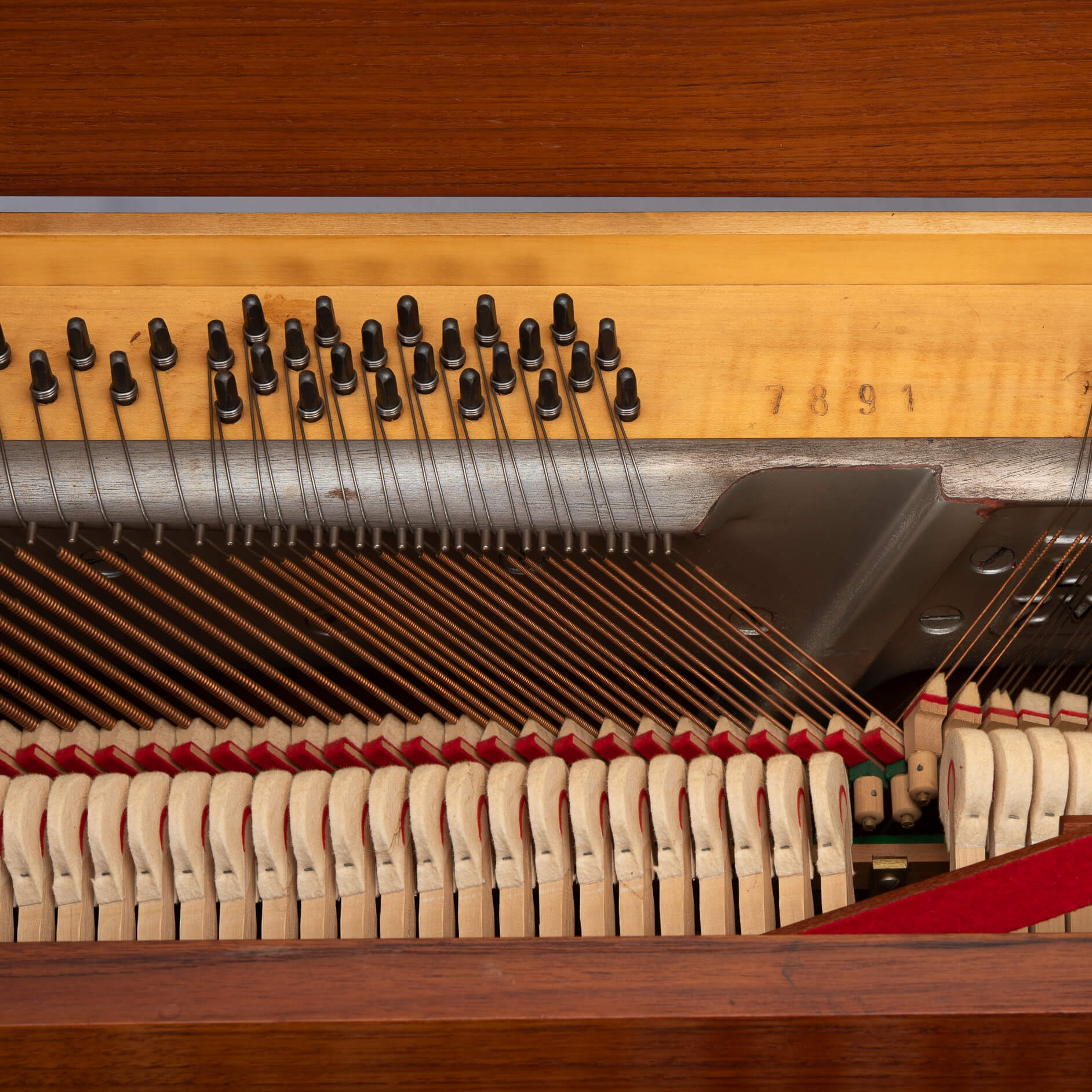 A rare Danish midcentury pianette made of teak. It is called pianette due to the 82 keys rather than the standard 88 of a full size piano. This pianette is made by renowned piano maker Louis Zwicki. Every piano from Louis Zwicki is numbered. This one is No. 7891. This piece stands out in a modern interior, lobby of a hotel etc.