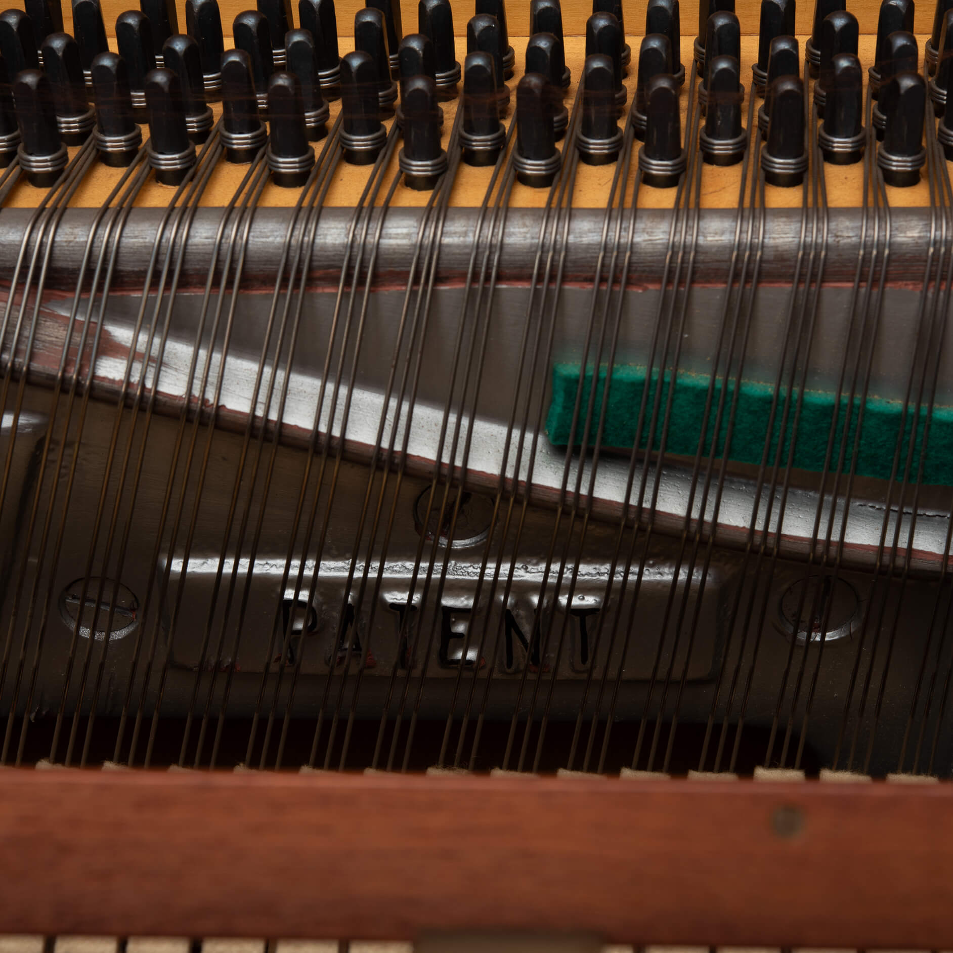 The pianette is in very good vintage condition. There are some signs of wear on the top and the veneer has damage on the bottom. See pictures. The pianette must be placed against the wall and is not suitable for free-standing. The acoustic and tone is good. However it will need tuning after transport. There is a recent technical report about the condition of the piano. Please contact us if you would like to receive this report.