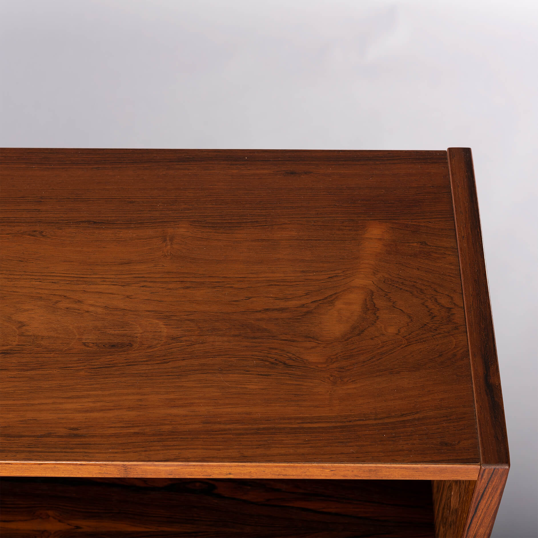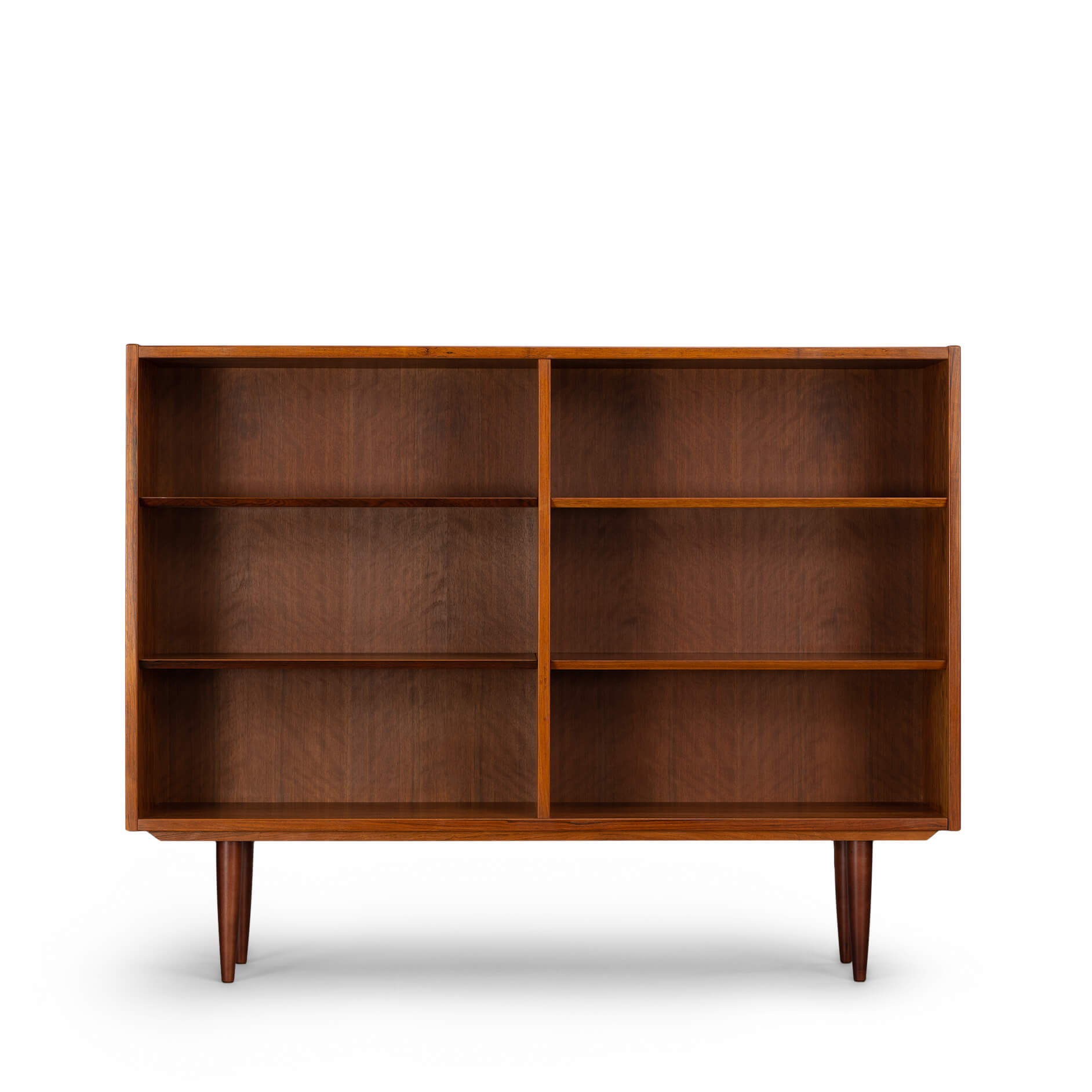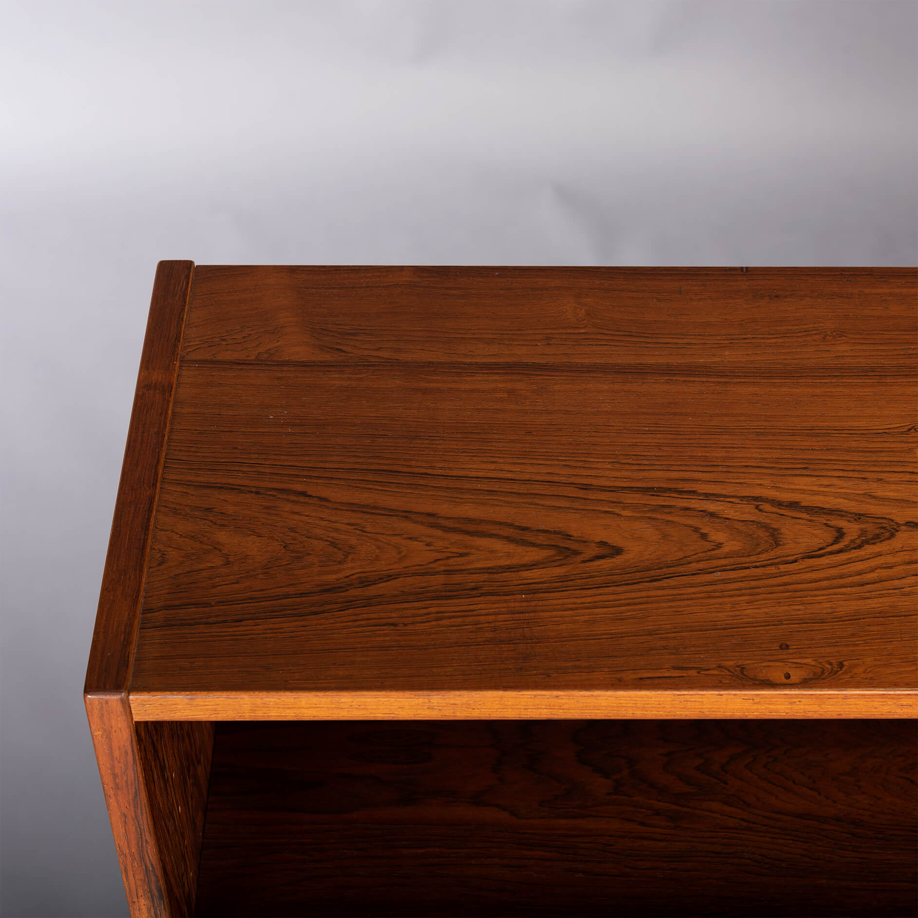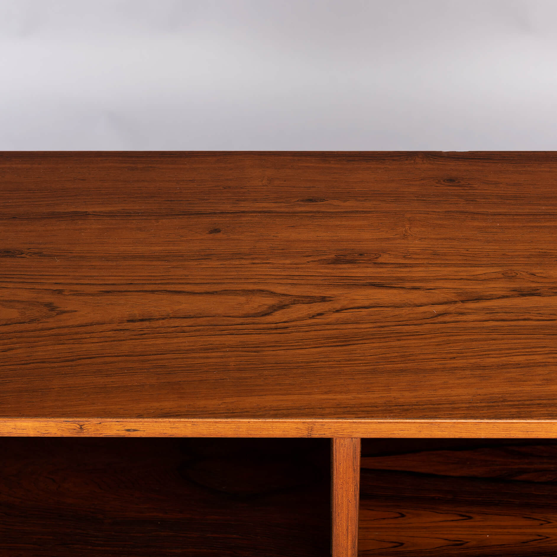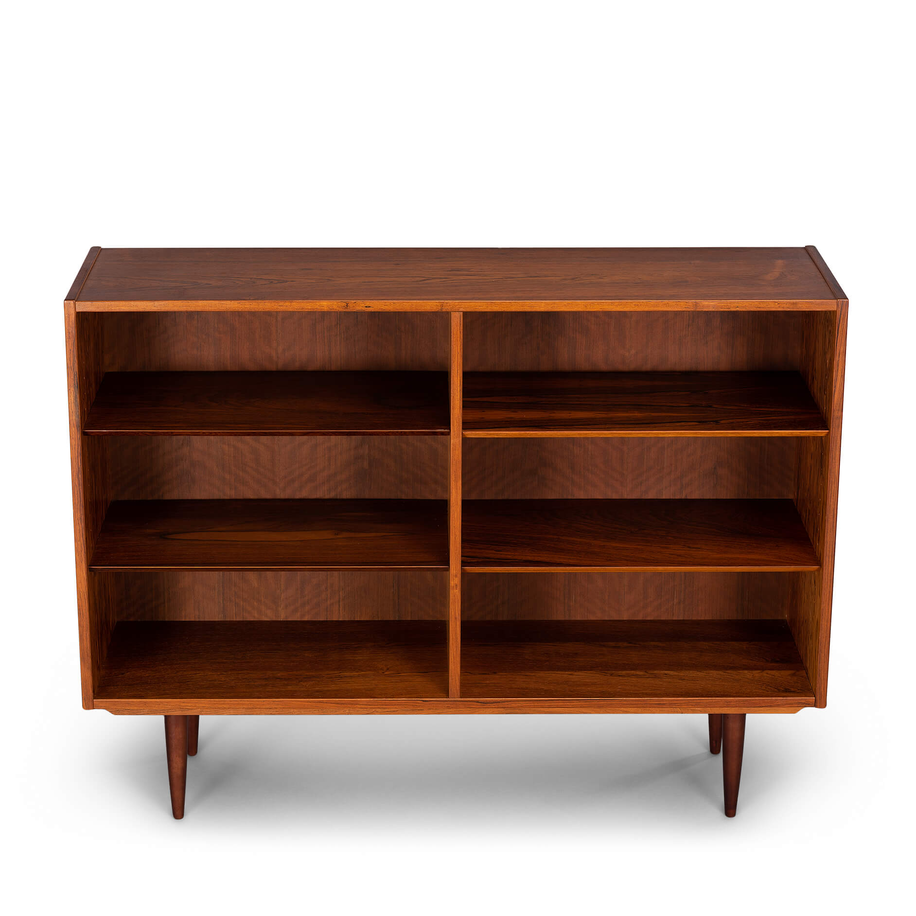 Danish low bookcase in beautiful rosewood veneer. Designed by Carlo Jensen and made by Hundevad & Co.