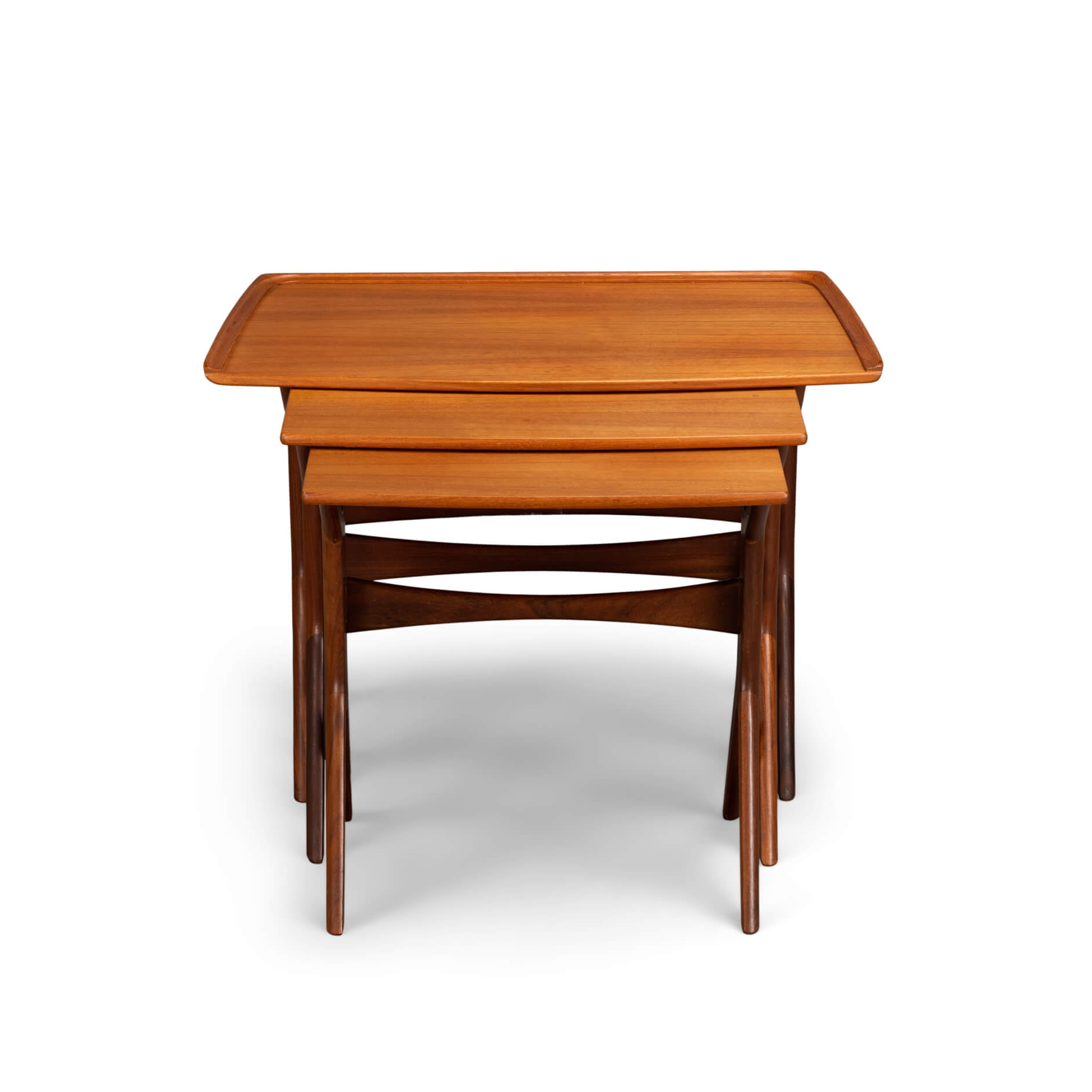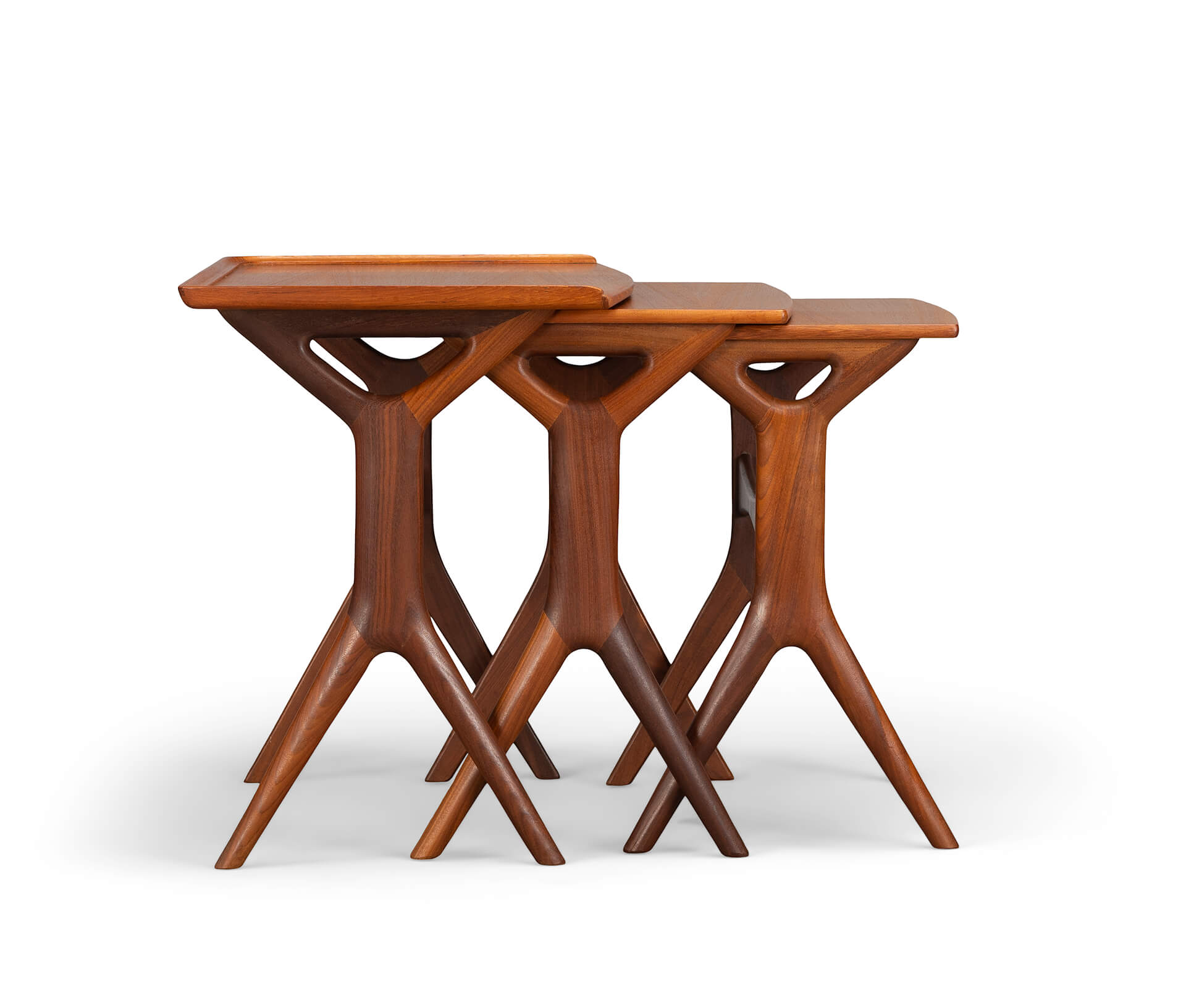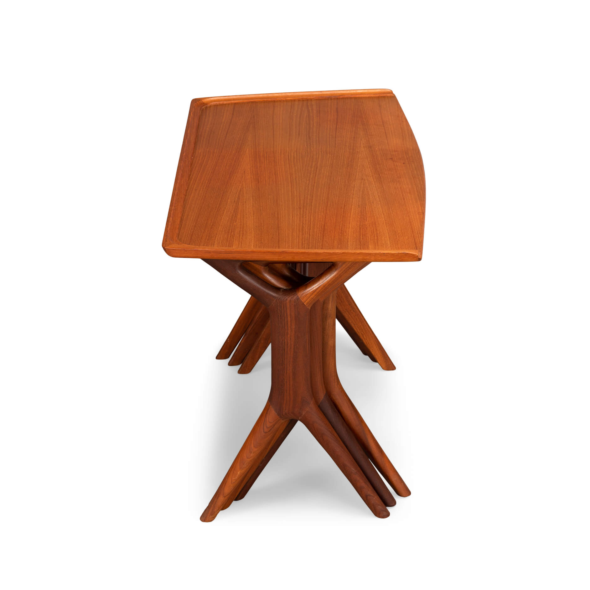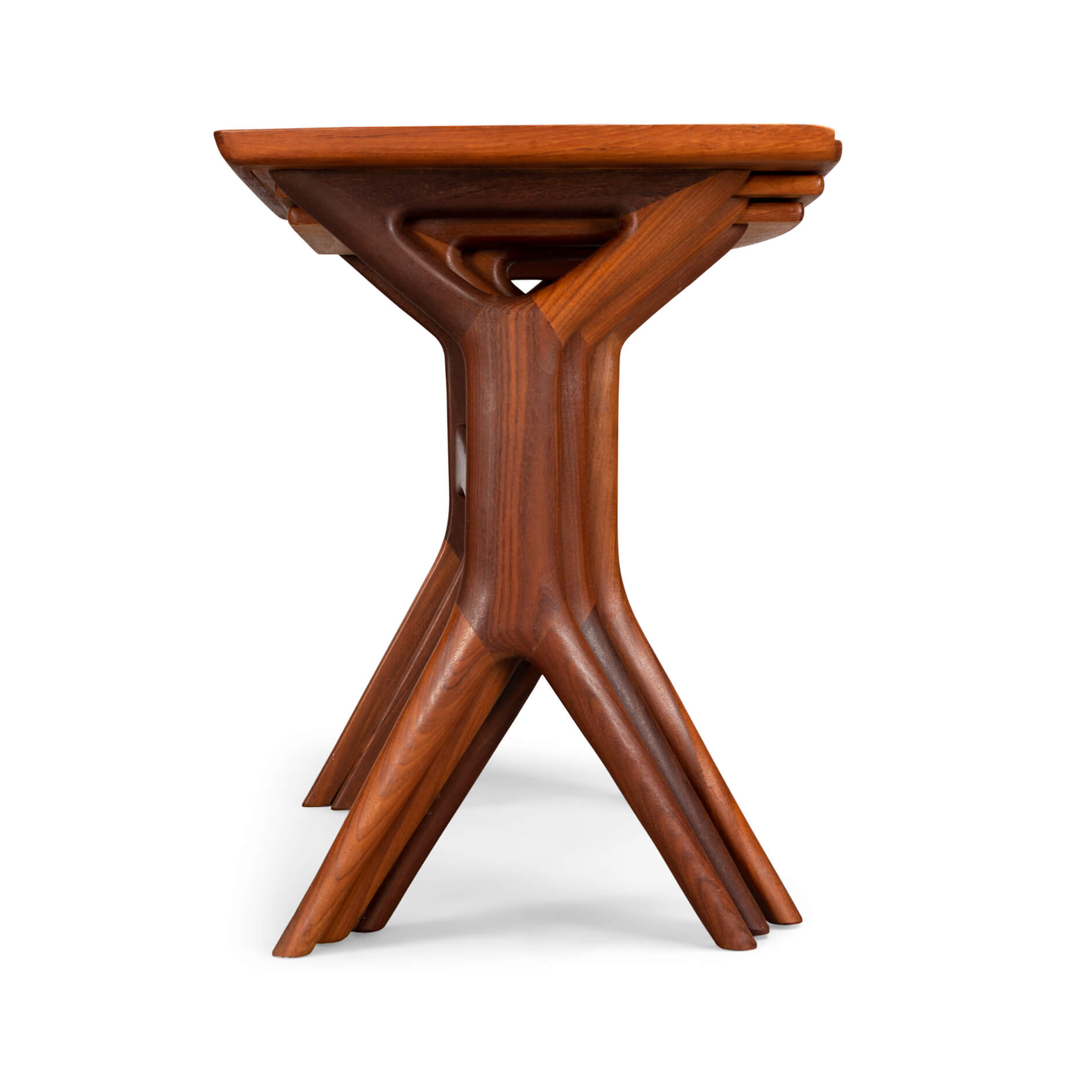 Nothing less than an Andersen classic are these nesting tables for CFC Silkeborg. Fits perfectly with Andersens organic shape design style that led him to incorporate some amazing joinery design. The cross figure under the tables is a fantastic example of craftsmanship.