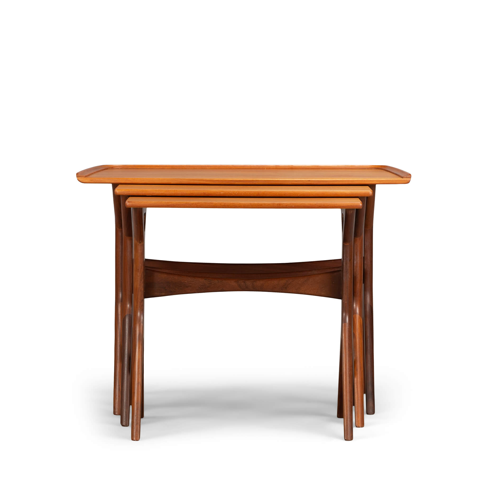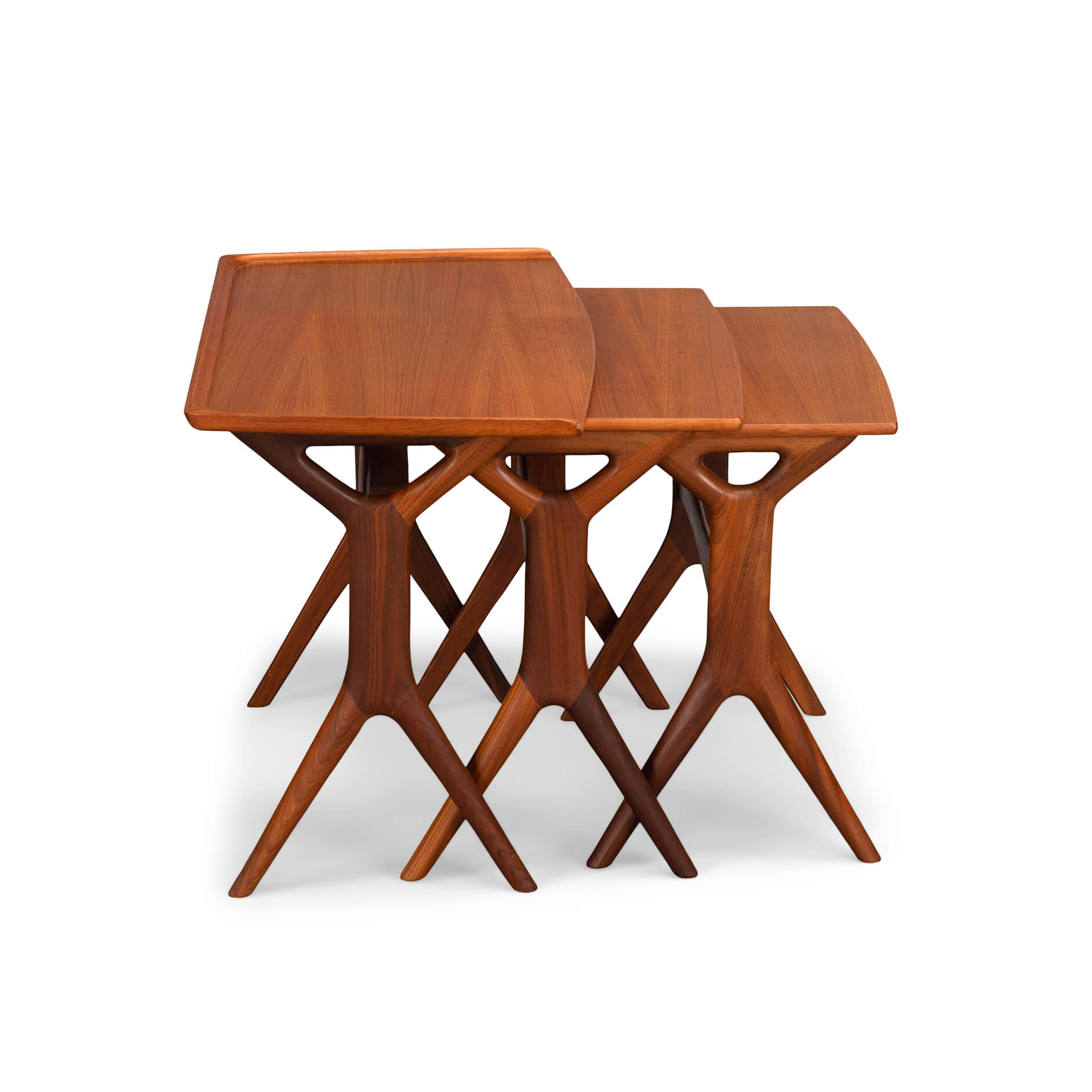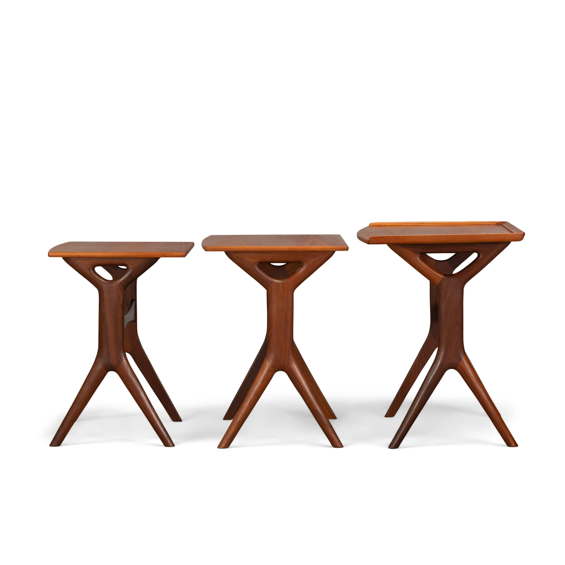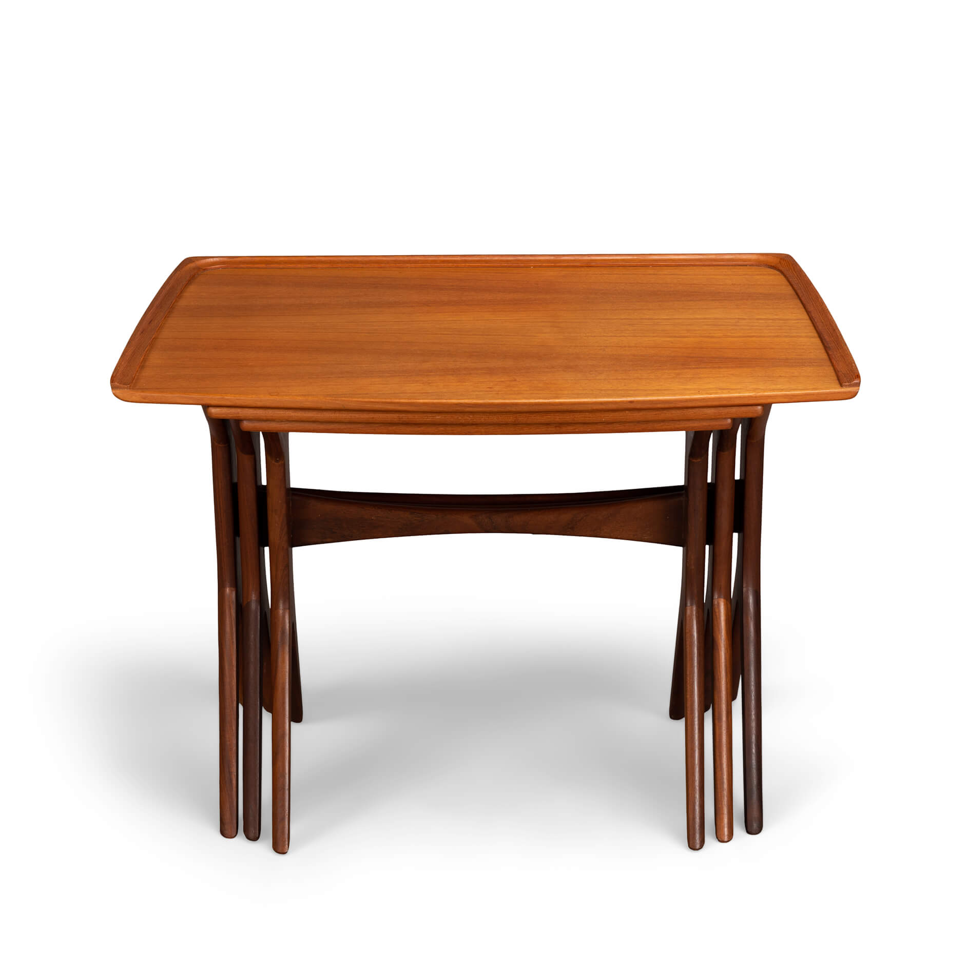 Nothing less than an Andersen classic are these nesting tables for CFC Silkeborg. Fits perfectly with Andersens organic shape design style that led him to incorporate some amazing joinery design. The cross figure under the tables is a fantastic example of craftsmanship.