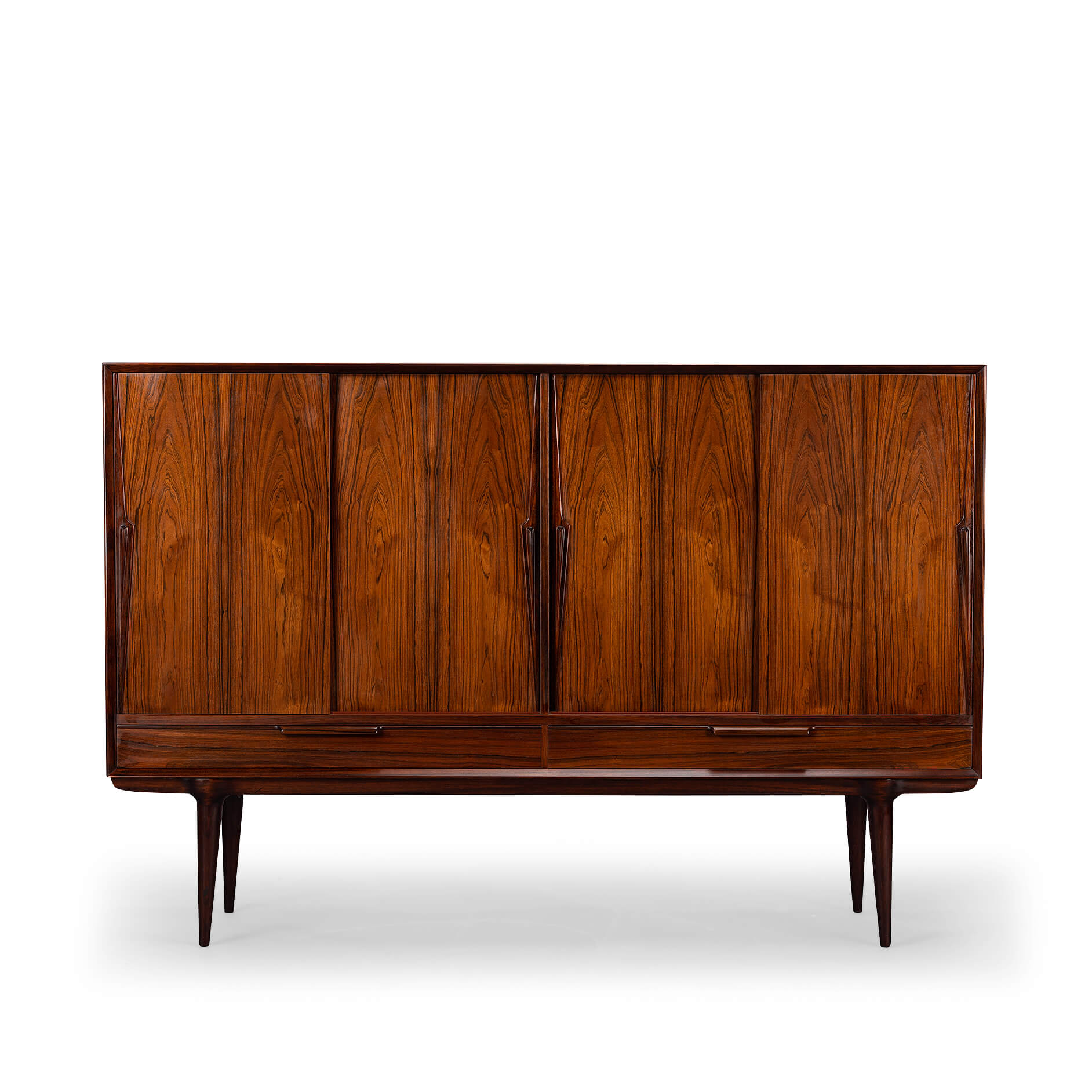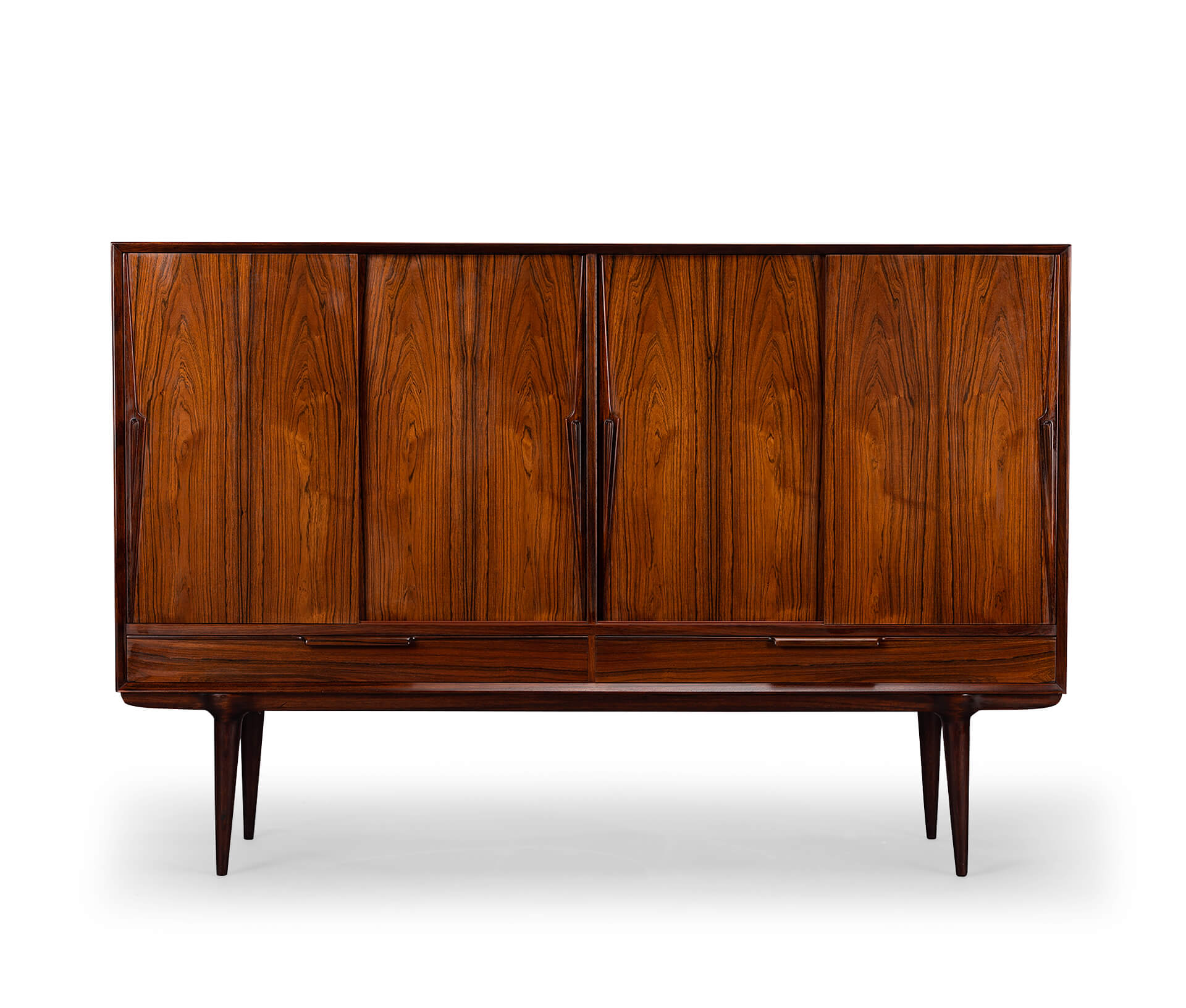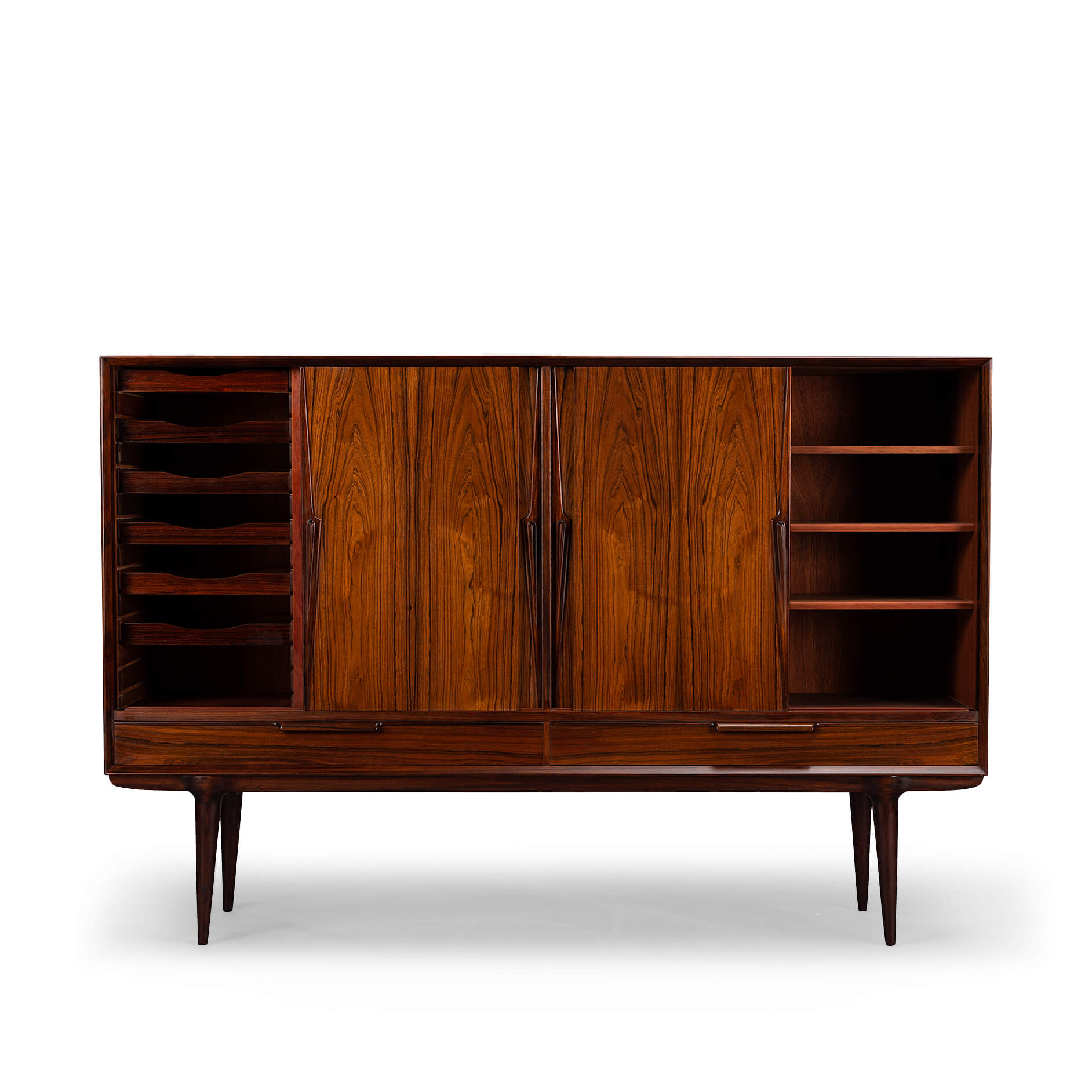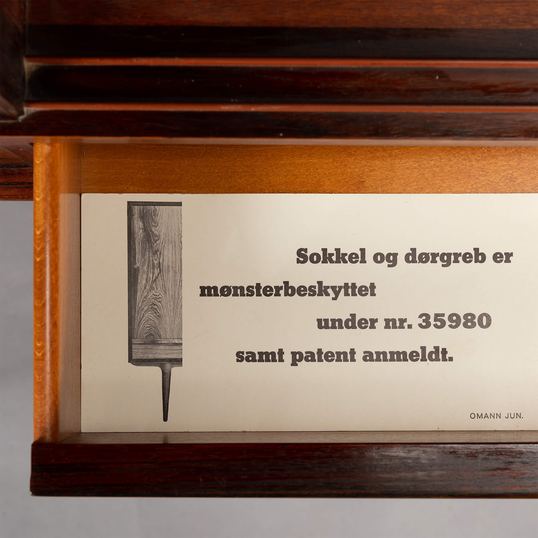 A classic among credenza's, this rosewood model #13 credenza designed by Gunni Omann for Omann Jun Møbelfabrik. Recognisable design features and perfectly proportioned, with a low profile design, this piece will work well with any modern decor.