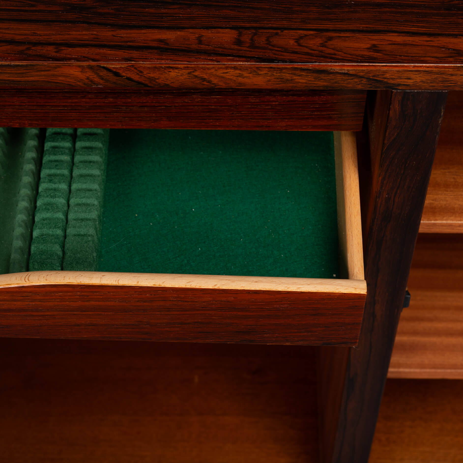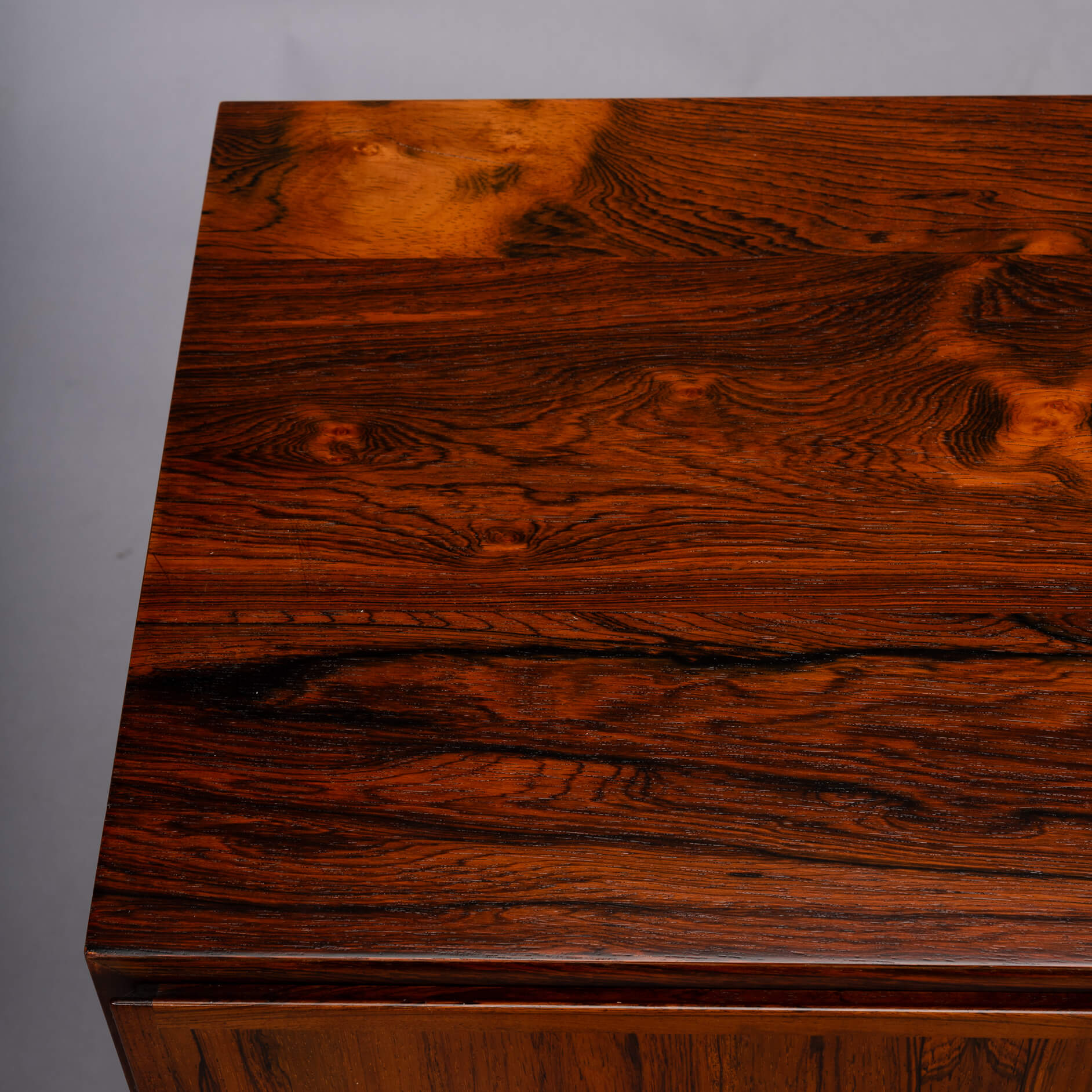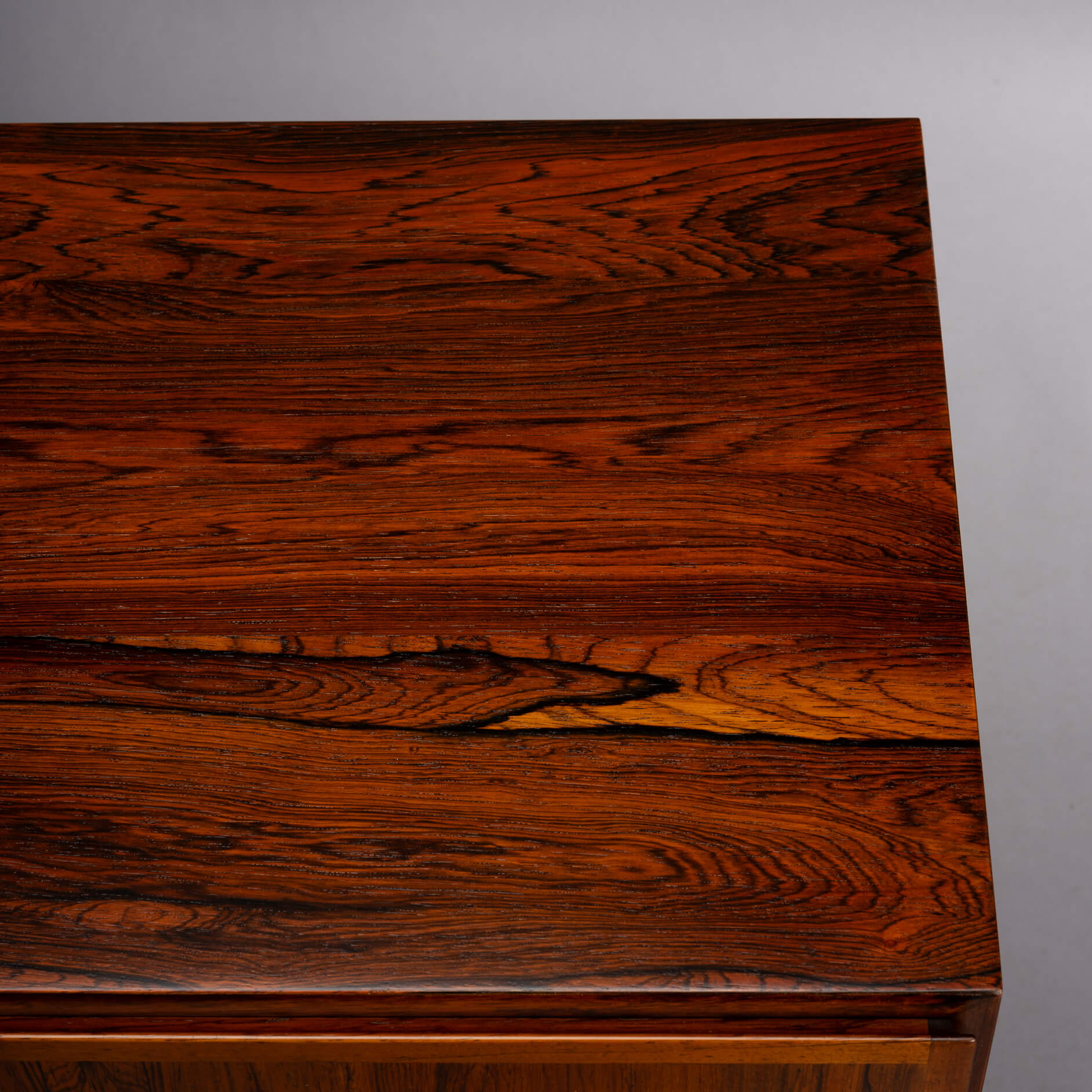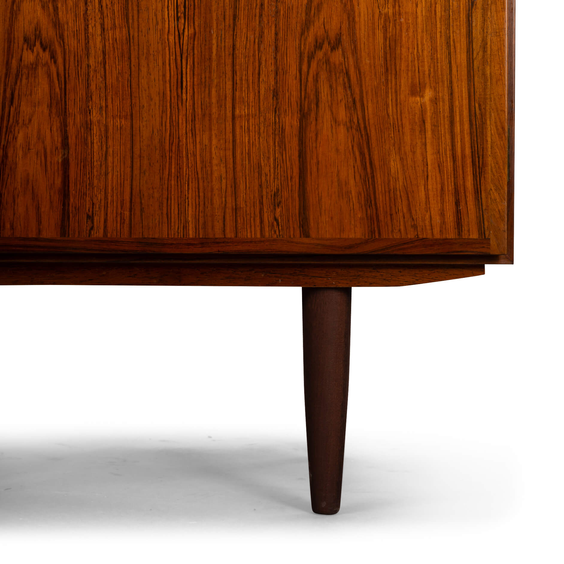 A timeless piece, this palissander model #4 credenza designed by Gunni Omann for Omann Jun Møbelfabrik. Superb level of quality and use of high end materials on top of its design make it a full pull. The doors open to reveal an adjustable shelve.