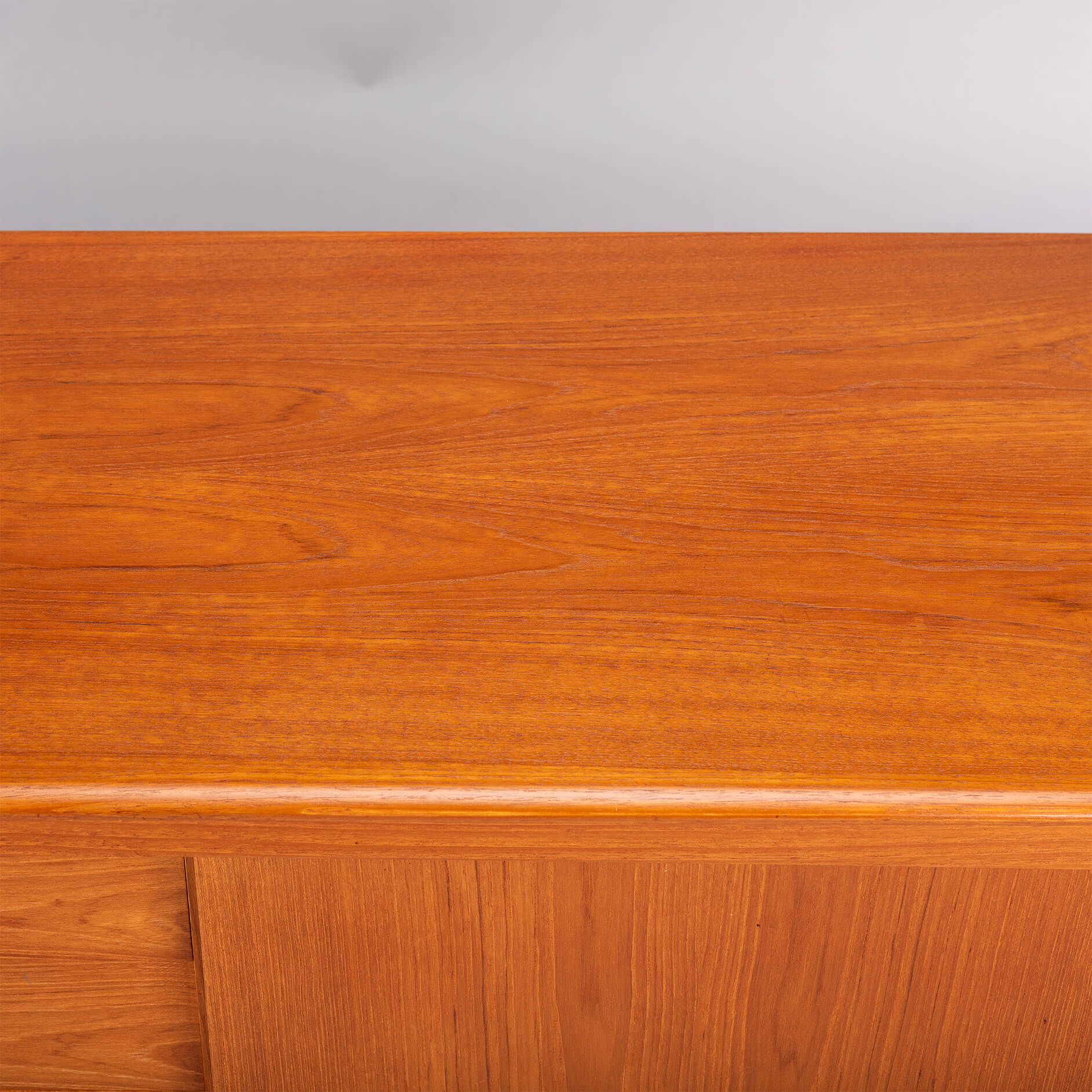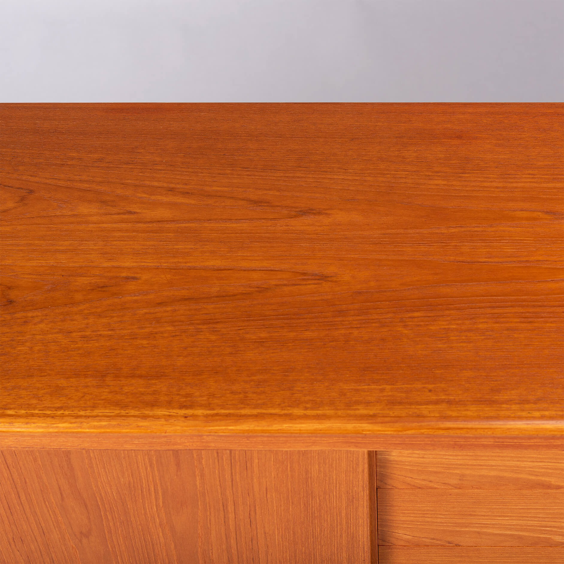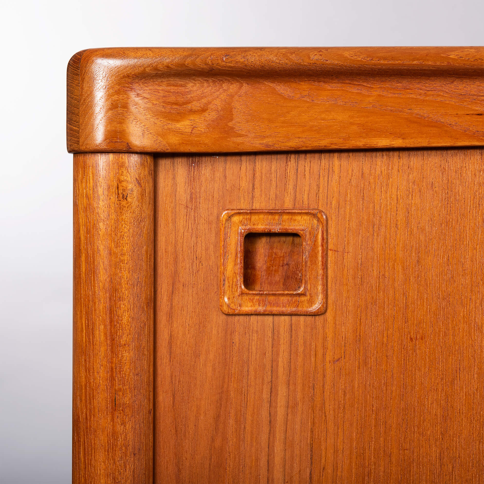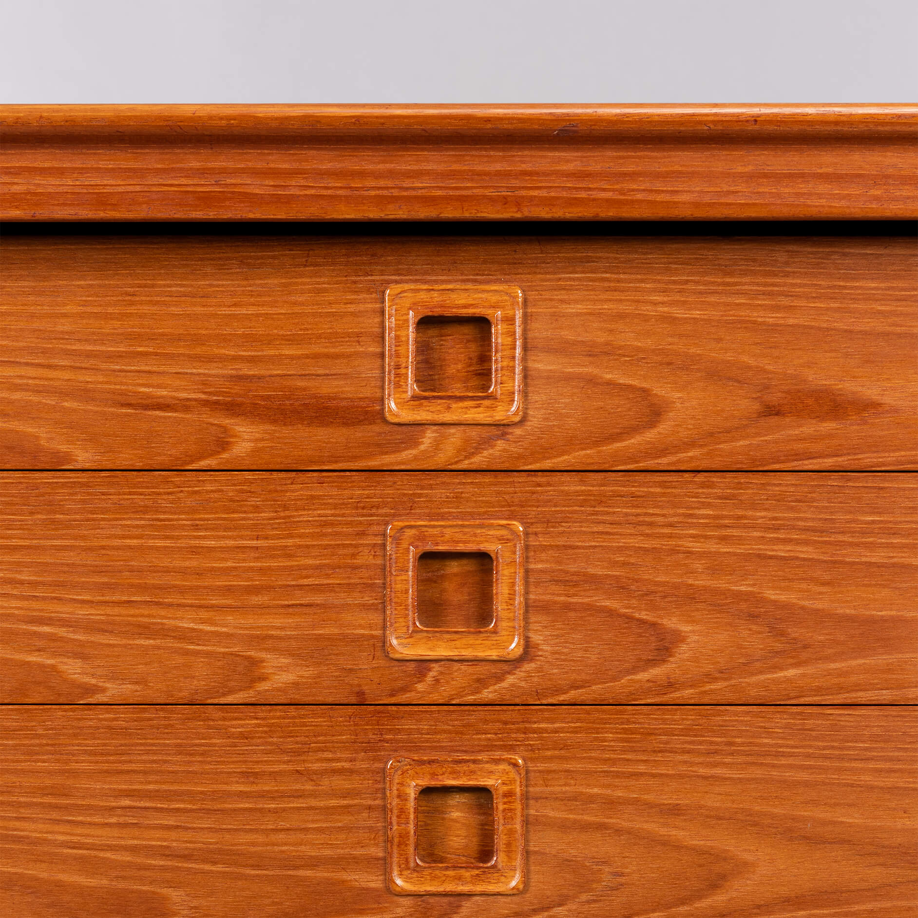 This credenza has many rounded and curved bezels that make you move your eye from detail to detail. The contradiction between curved bezels and square grips is telling for Klein's ideas behind this design. All of this in a wonderful vintage condition, we would know what to do.. ;-)