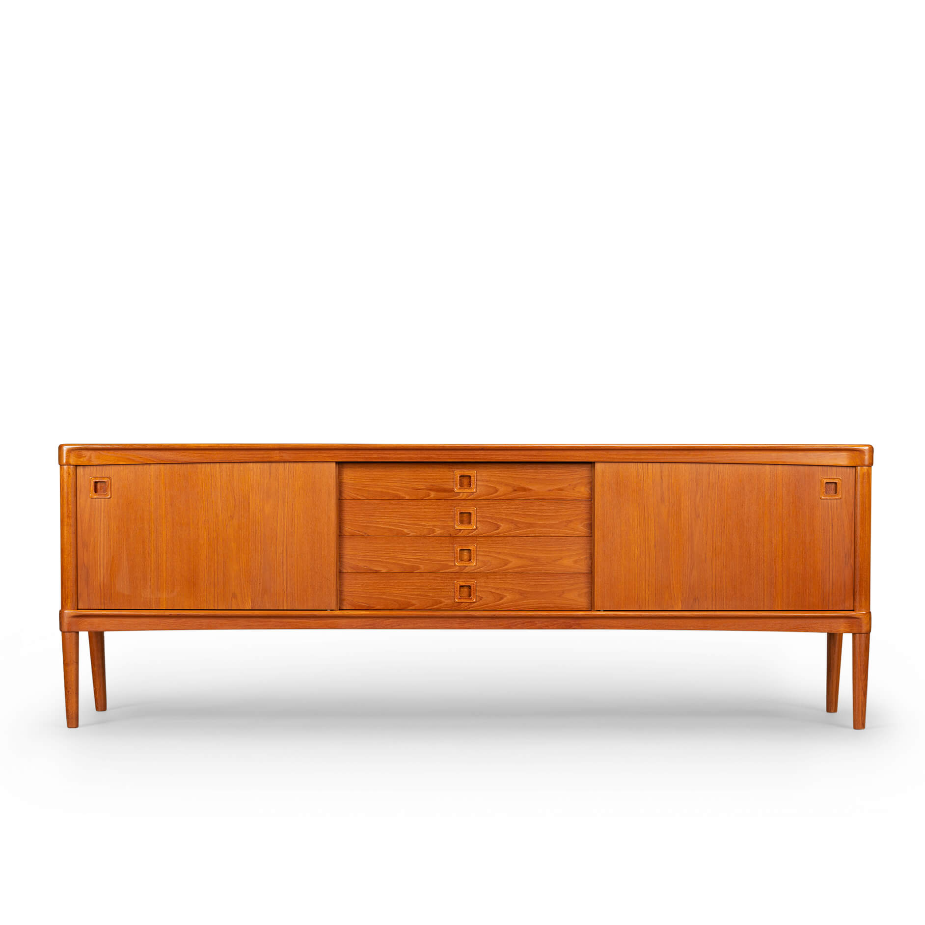Vintage eyecandy! This credenza by H.W. Klein has some very nice design features. The back legs are positioned inward and bring a twist to this credenza design! Klein was inspired by natural shapes and curvature and worked this inspriration into furniture designs with the highest level of furniture making by Bramin Møbler.