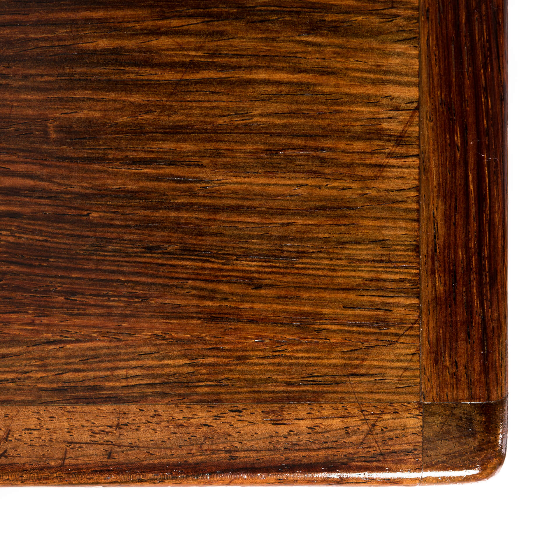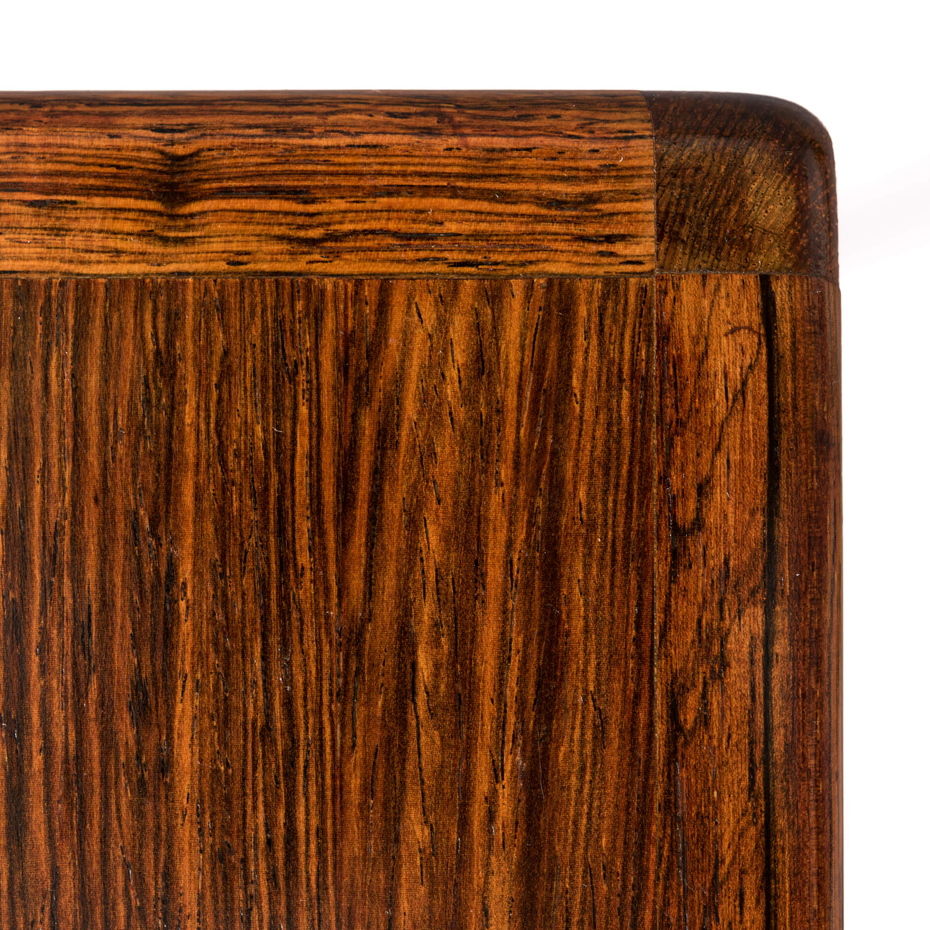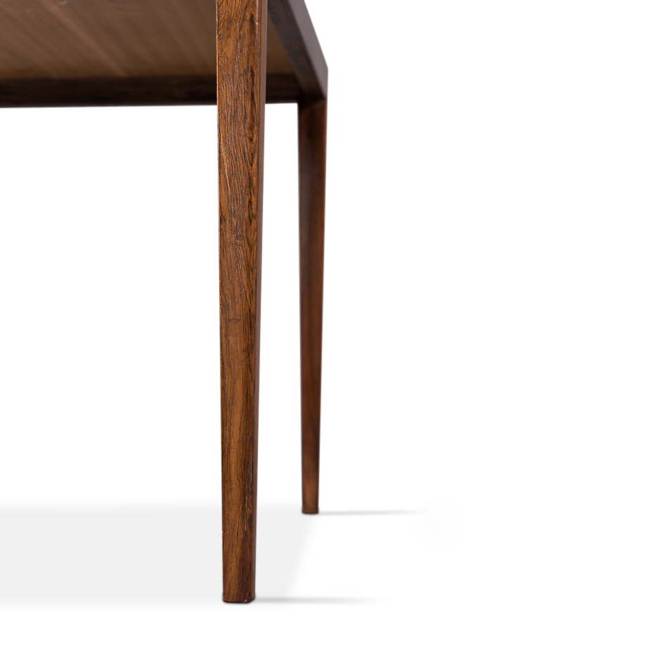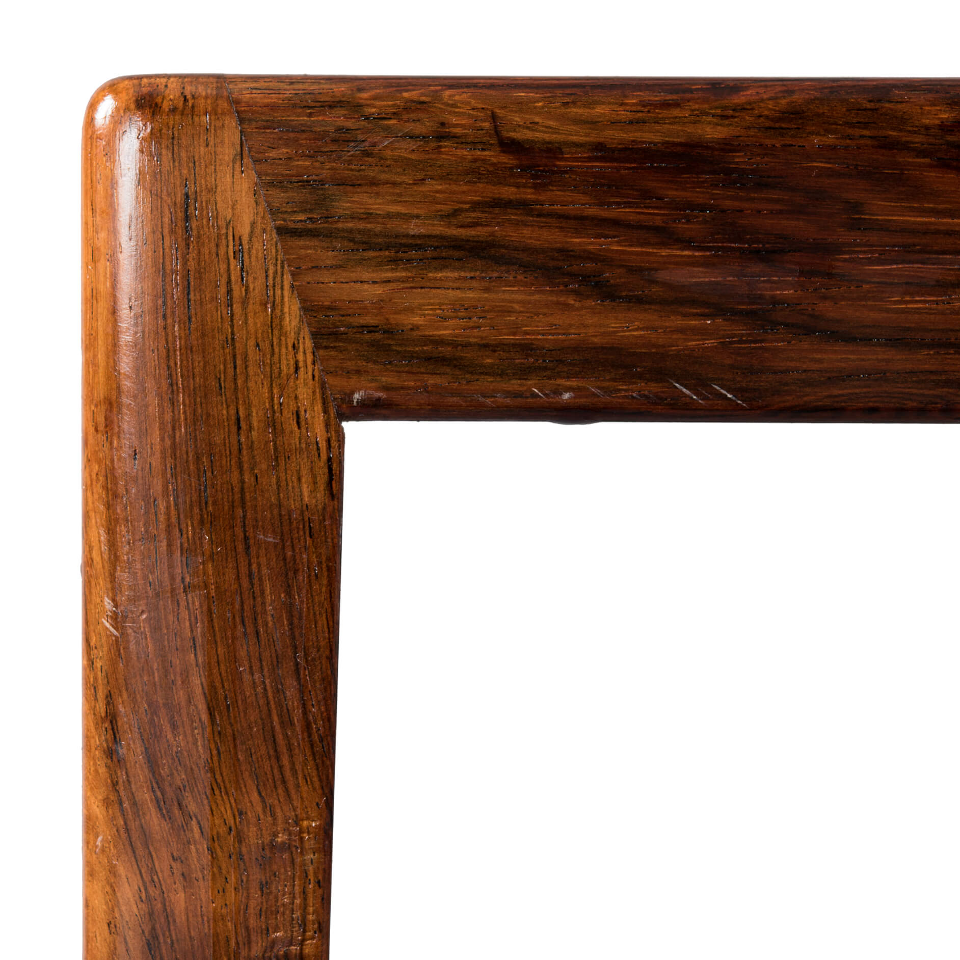 An in very particularly rich and dark patterned rosewood made square low side table. A very solid construction of solide rosewood legs and a rosewood veneer wooden top that is mounted flush with a solid rosewood frame. The calm design of the table can be a great addition to most modern interior designs.