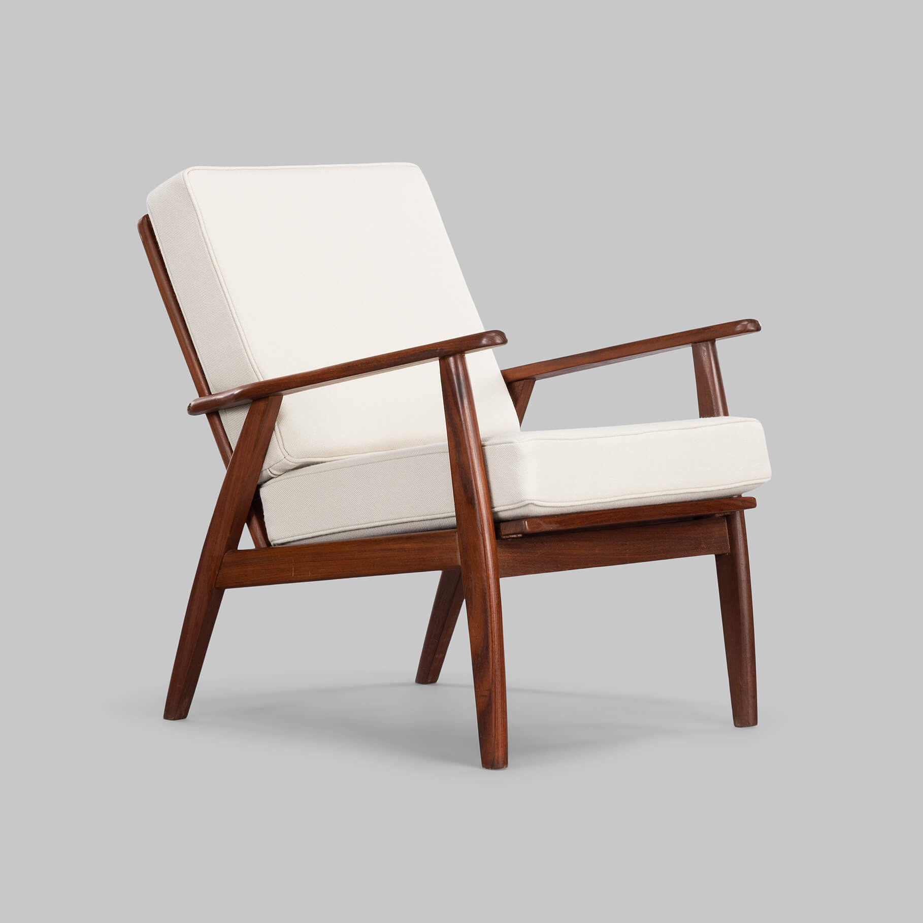 Buy this man-chair and just try to resist the natural urge to smoke cigars read a paper and drink scotch ;-) With the frame in good condition and the new upholstery (foam and wool) this chair is in a very good vintage condition.
