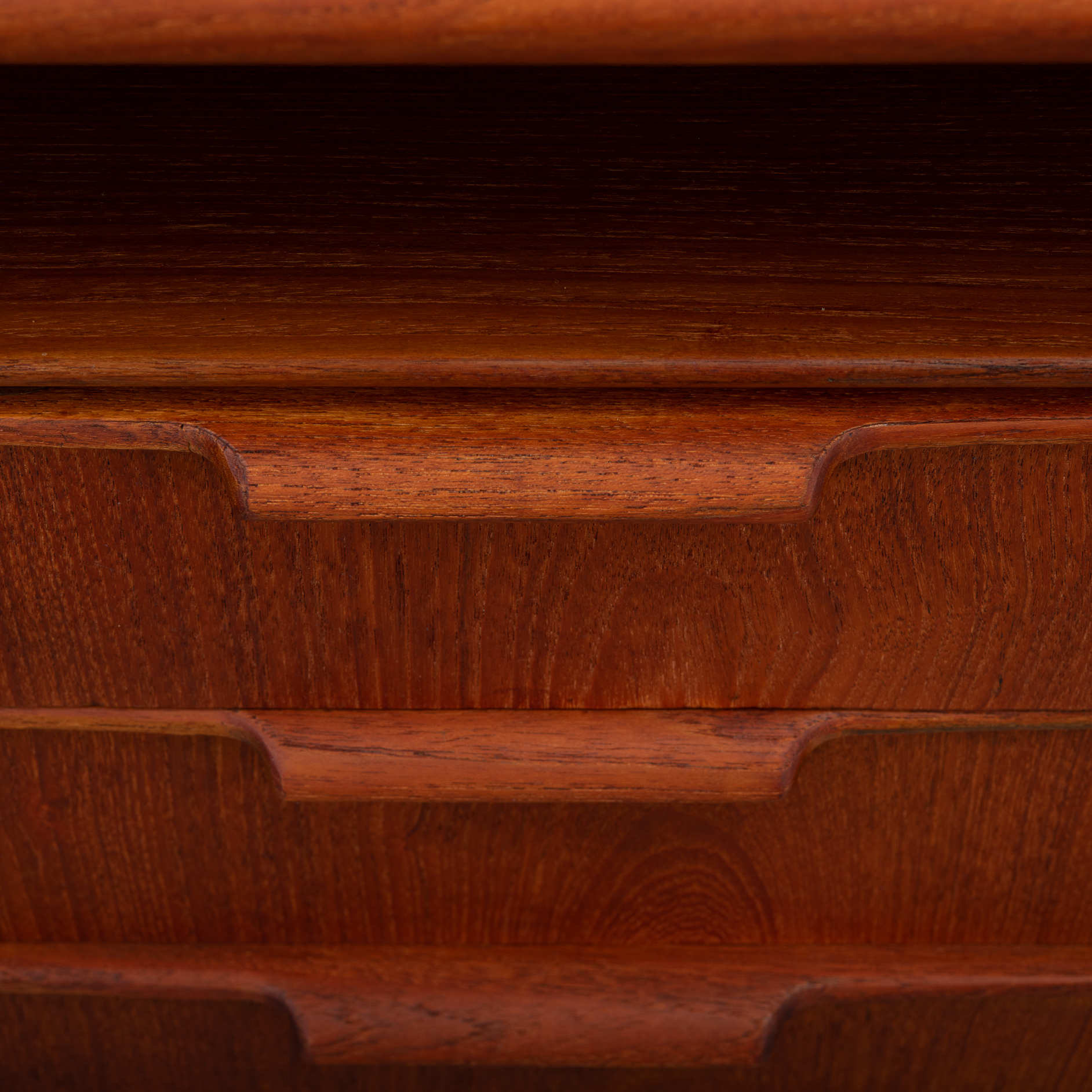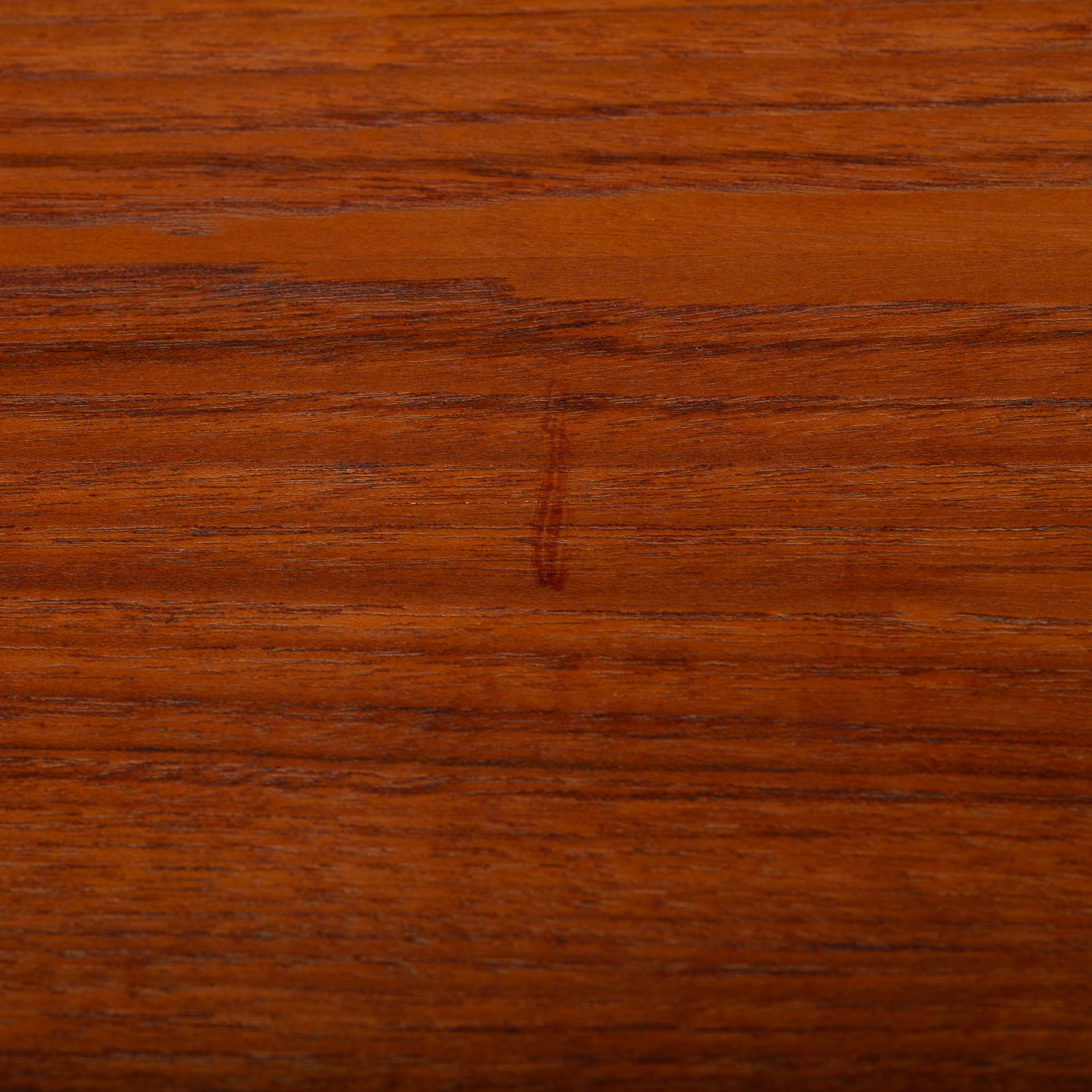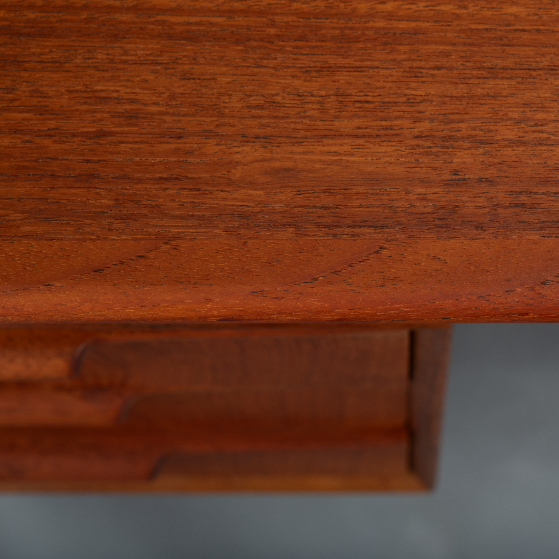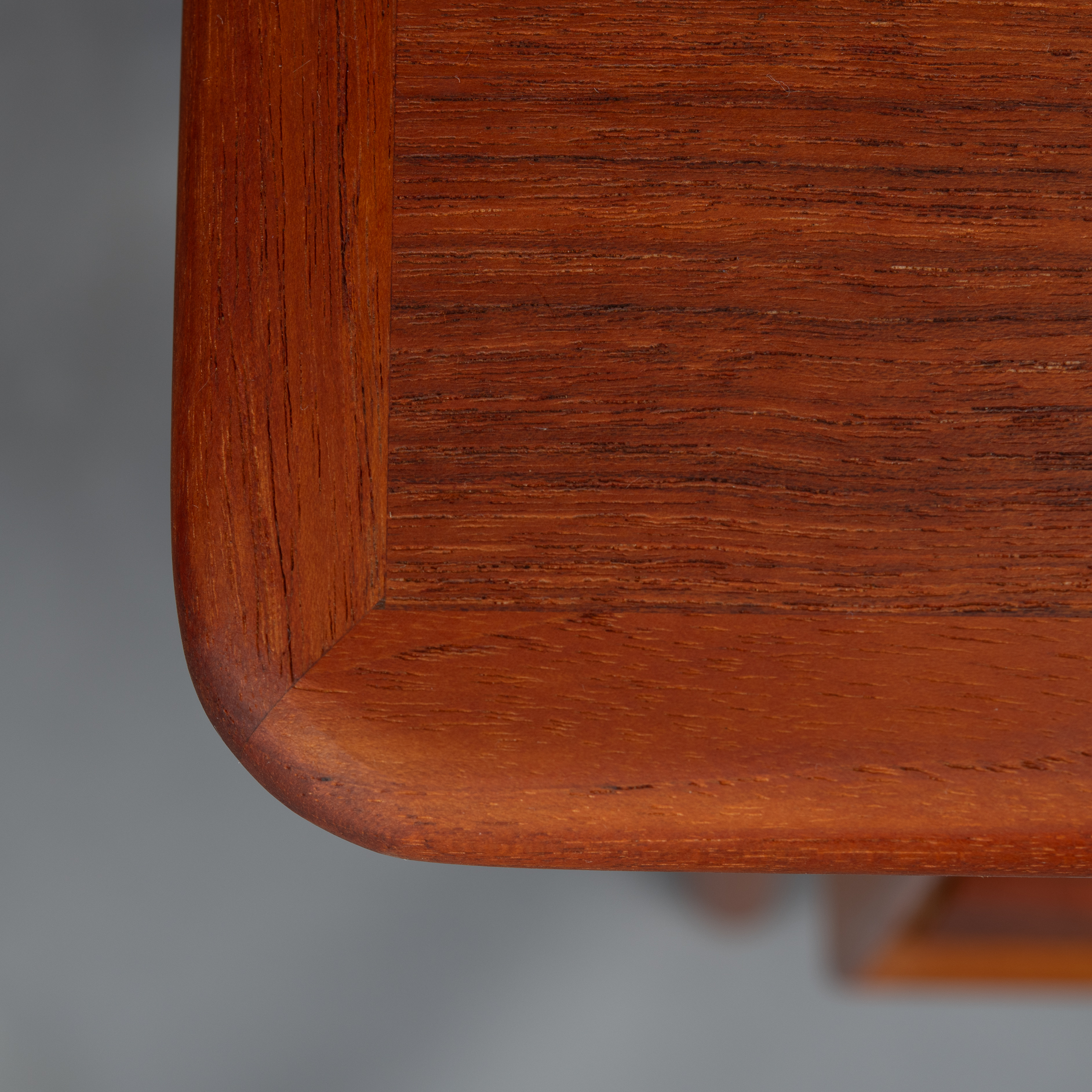 Constructed of solid teak with teak veneers more that half a century ago it shows minor signs of age and use. It is really in very good vintage condition. Only a stripe of coloring on the leaf, see photo. The desk comes fully assembled with keys included.