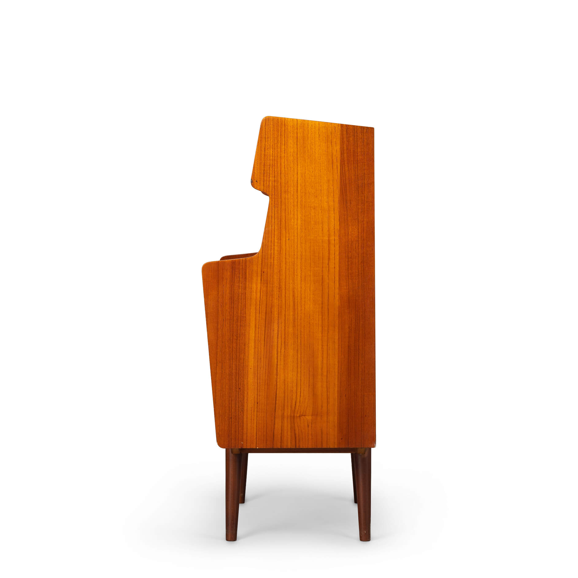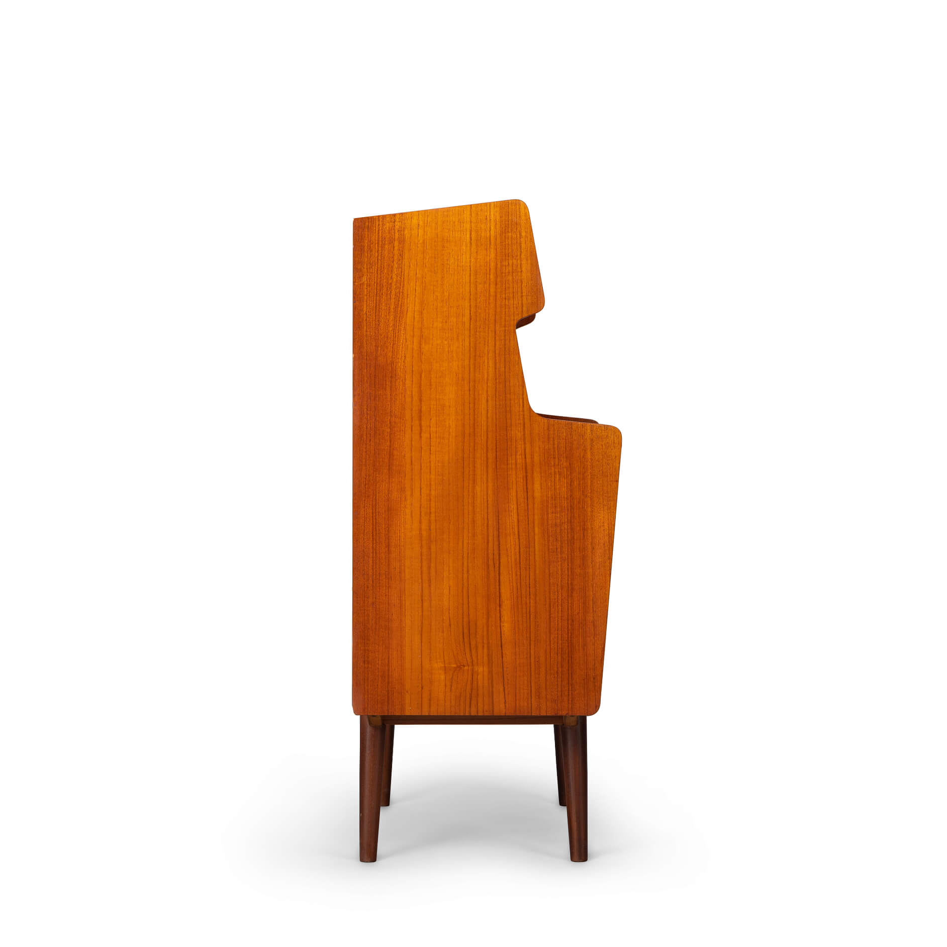Easy does it: a writing desk when you want it to be one! This writing desk has it all. It is made in teak veneer and has a pull out leaf. Could beauty up your living room and transform into a working station if you need it within seconds. Three huge drawers, two smaller drawers.