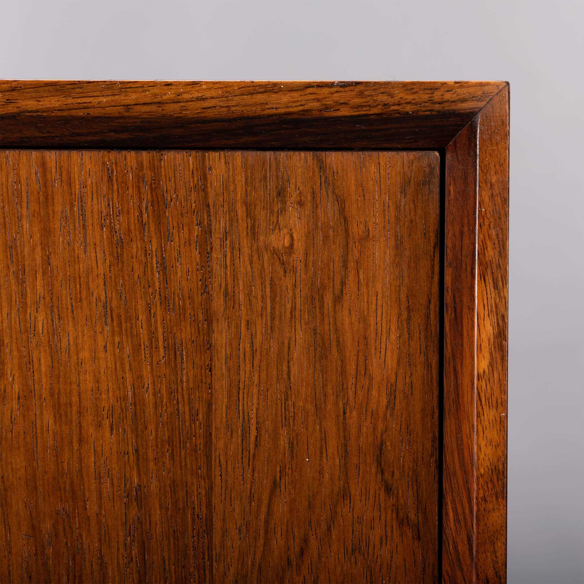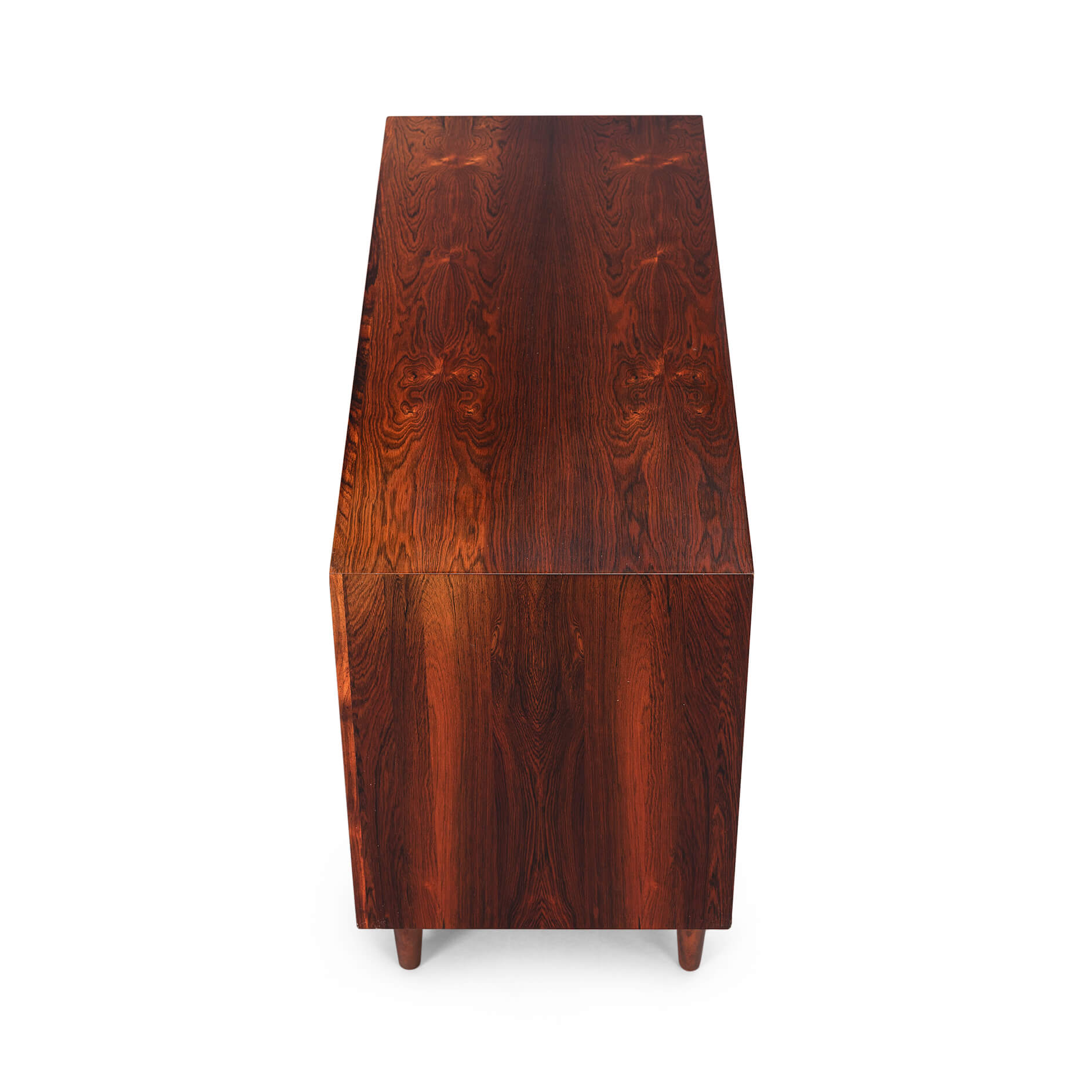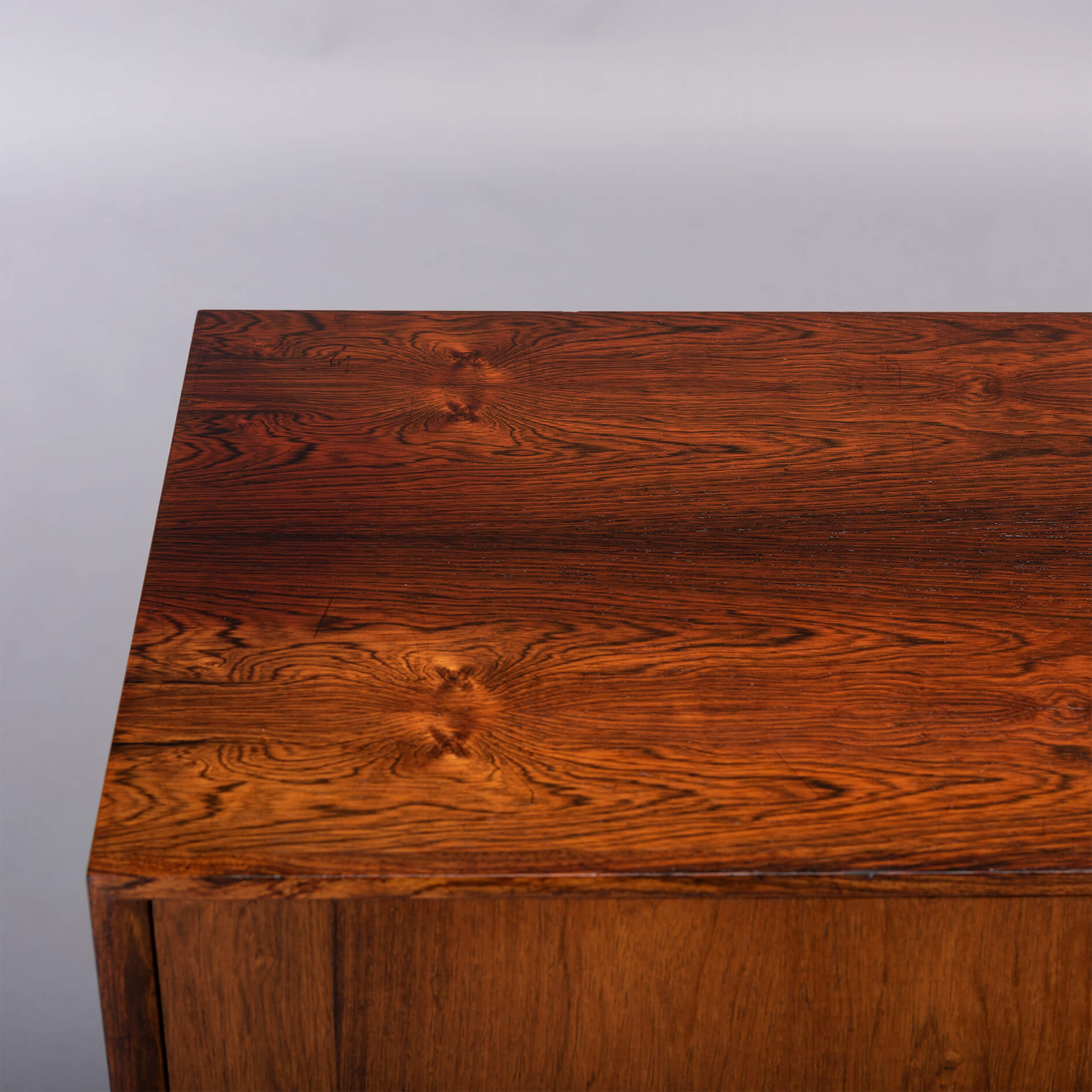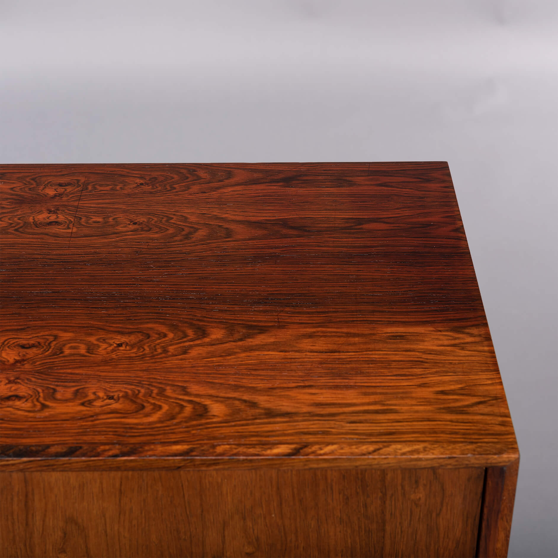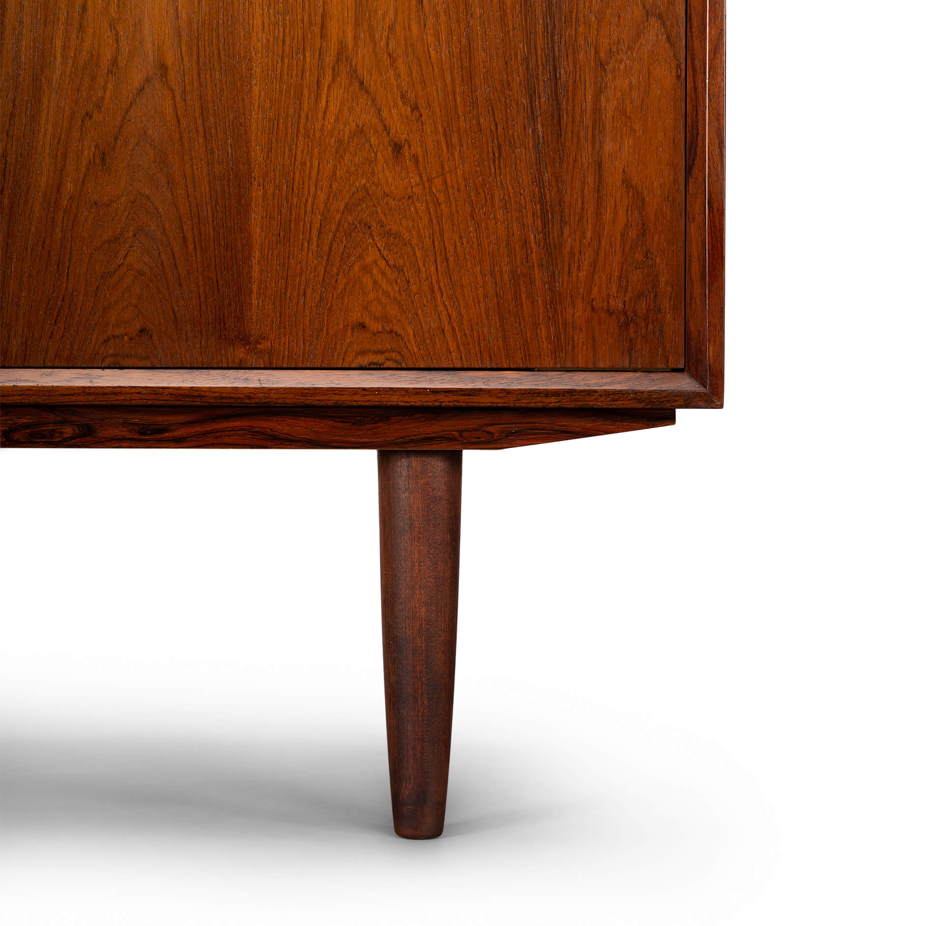 This elegantly designed credenza by Johannes Sorth voor Bornholm Møbelfabrik, clearly marked on the back side of the chest. This sideboard provides for good storage and is made with a nice rosewood veneer. Simple design with only 1 shelve behind the two doors.