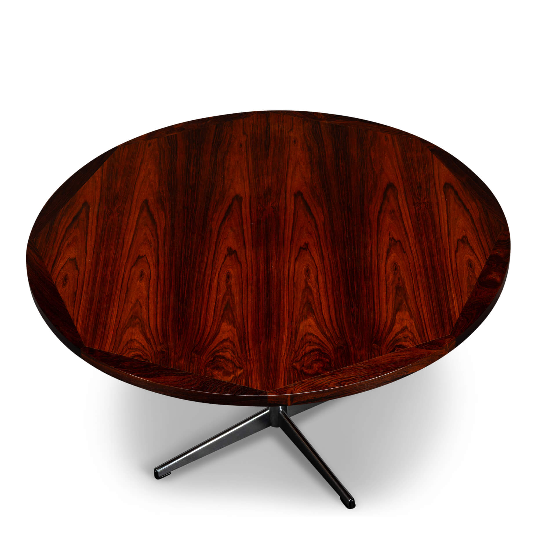 De tafel is gemaakt van prachtig palissander in de jaren 60. Met een stalen voet.