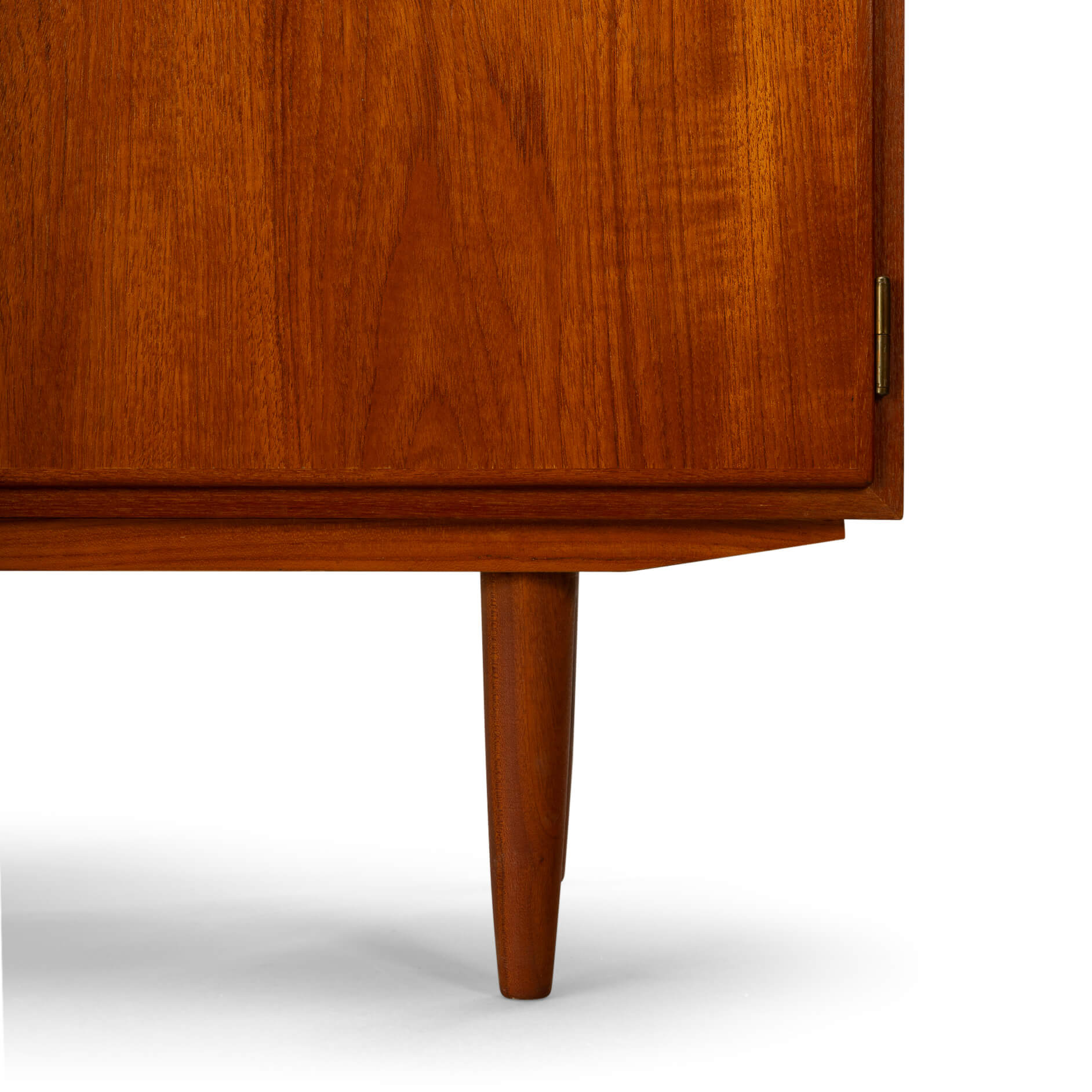 Een Carlo Jensen design! Geproduceerd door Hundevad & Co. Uitgevoerd in een prachtig teak. Dit is een kast waar het ook om de finesse van constructie gaat. Zoals in de linkerhelft de in hoogte verplaatsbare schuiflades gemaakt van essenhout. Zodat je ook hogere items zoals glazen of flessen in dit kleine dressoir kunt plaatsen. Aan de rechterkant in de kast twee in hoogte verstelbare planken.