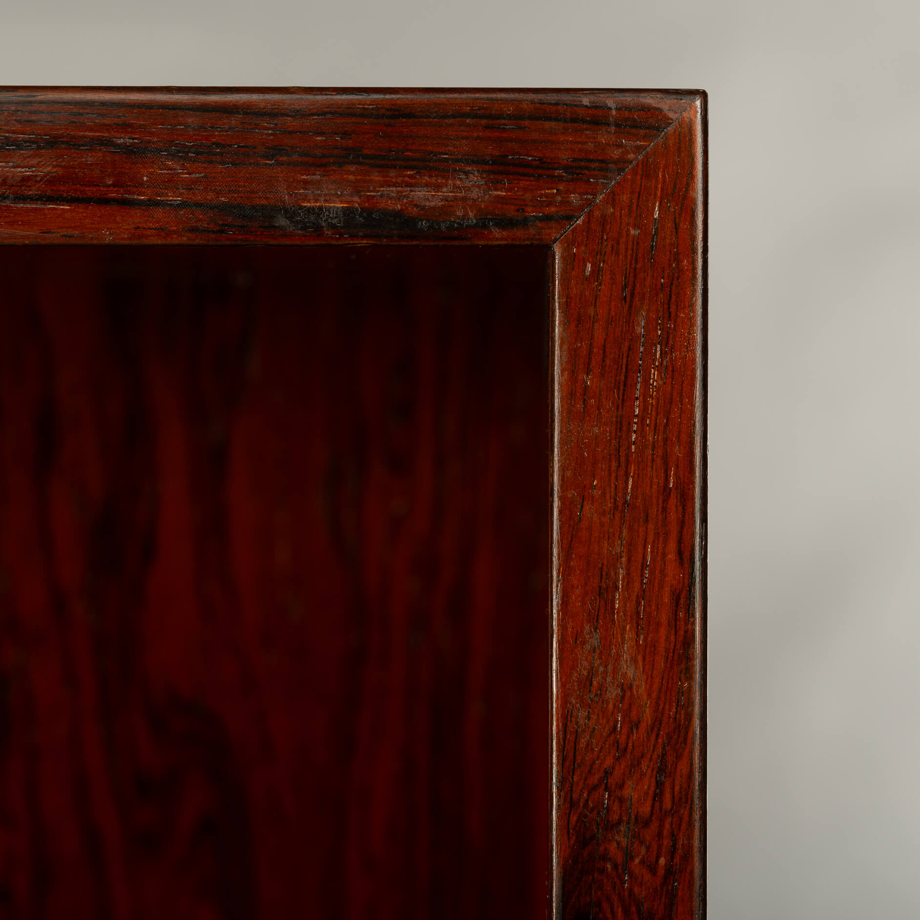 Een prachtige Omann Jun Model 6 boekenkast in palissander. Dit Model 6 draagt ​​met trots de erfenis van het Deense design voort, bekend om zijn strakke lijnen, minimalistische esthetiek en uitzonderlijk vakmanschap. Geïnspireerd door de moderne beweging uit het midden van de eeuw, weerspiegelt deze boekenkast de essentie van de Scandinavische ontwerpfilosofie, waar eenvoud en functionaliteit de boventoon voeren. En 60 jaar later verkeert deze boekenkast nog steeds in een zeer goede vintage staat!