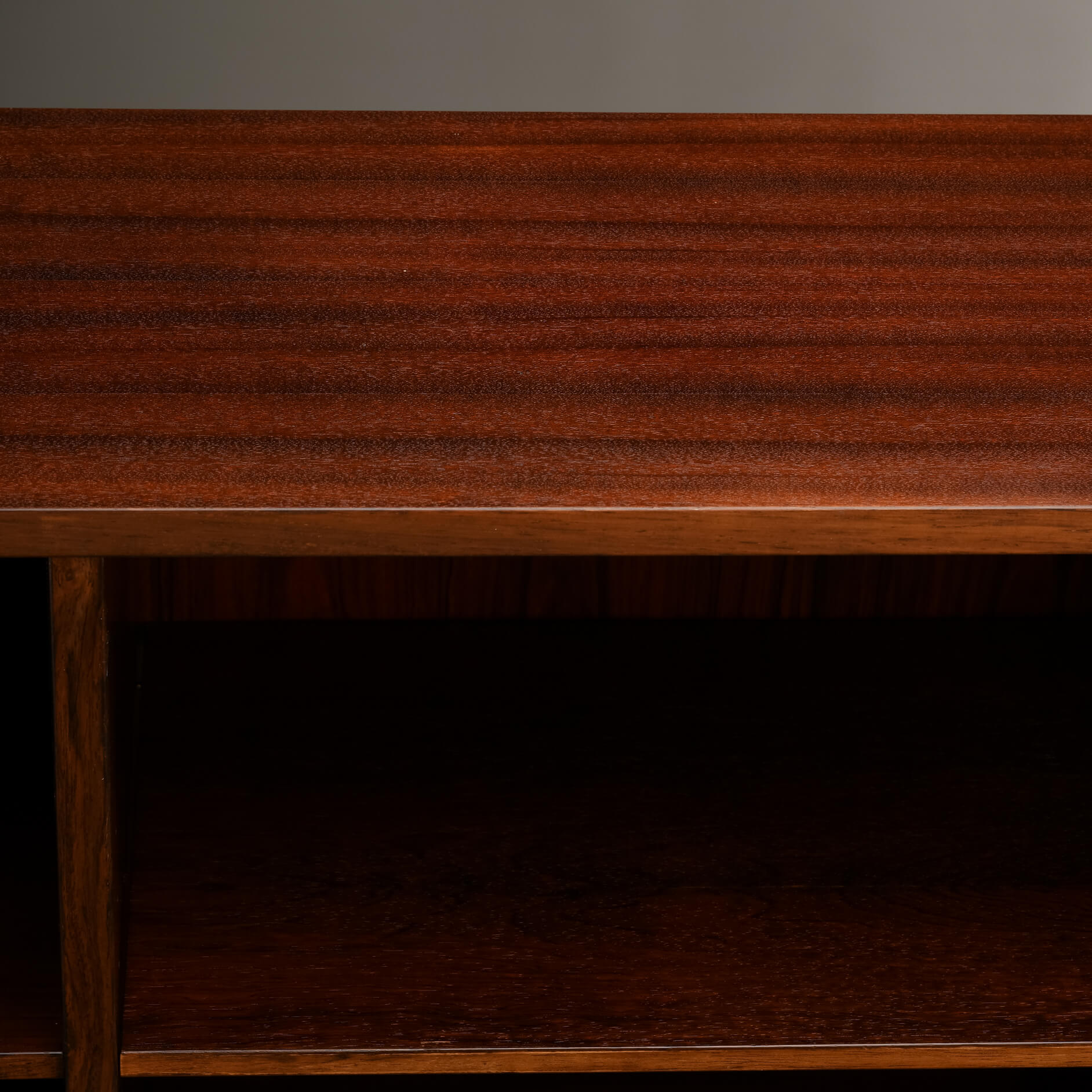 De uitgesproken nerfpatronen en warme tinten maken de inmiddels beschermde houtsoort palissander tot een begeerd materiaal. De natuurlijke variaties in het hout zorgen ervoor dat elke boekenkast een uniek meesterwerk is, dat warmte en verfijning uitstraalt. Met zes in hoogte verstelbare planken biedt deze boekenkast voldoende ruimte om uw boeken, kunstwerken en verzamelobjecten tentoon te stellen.