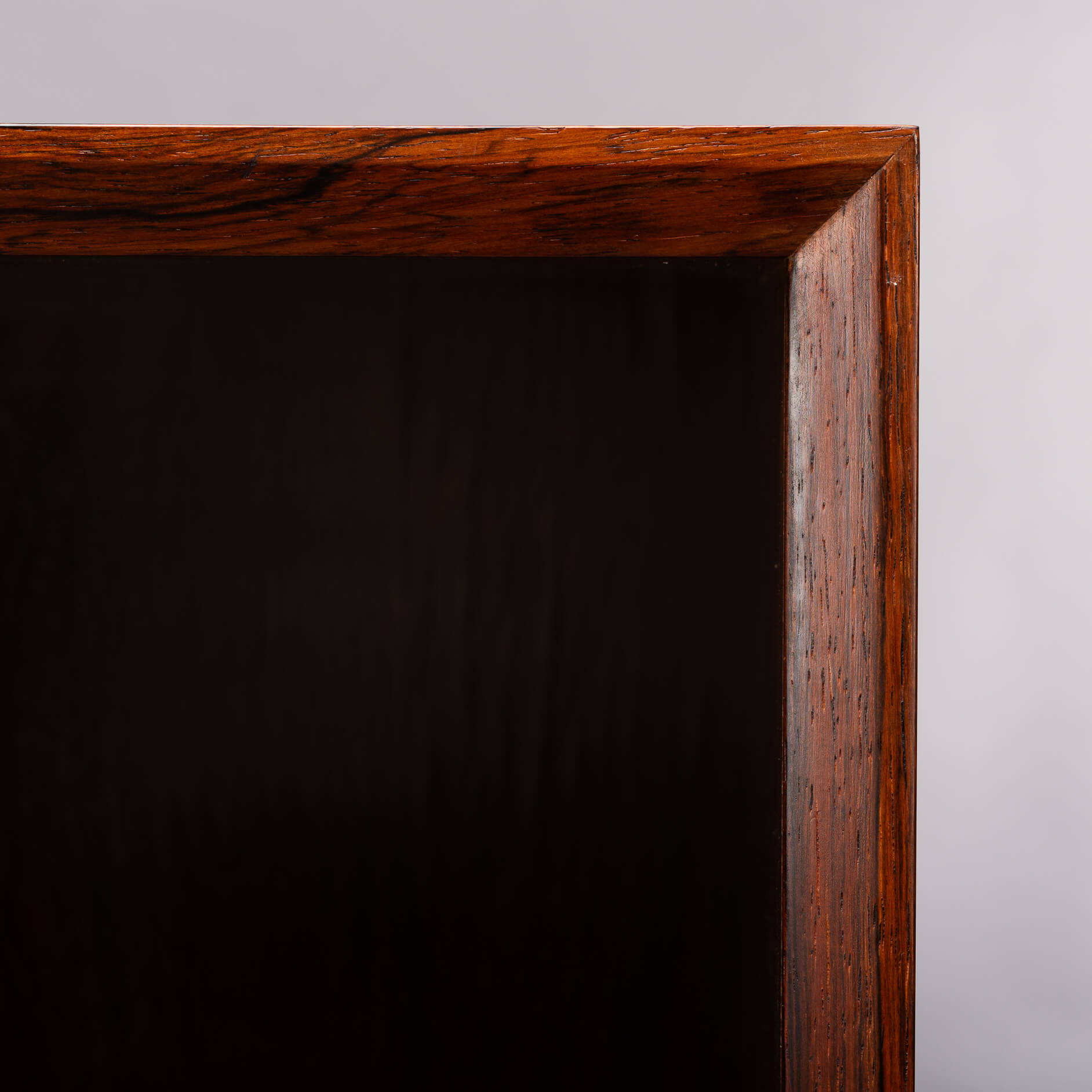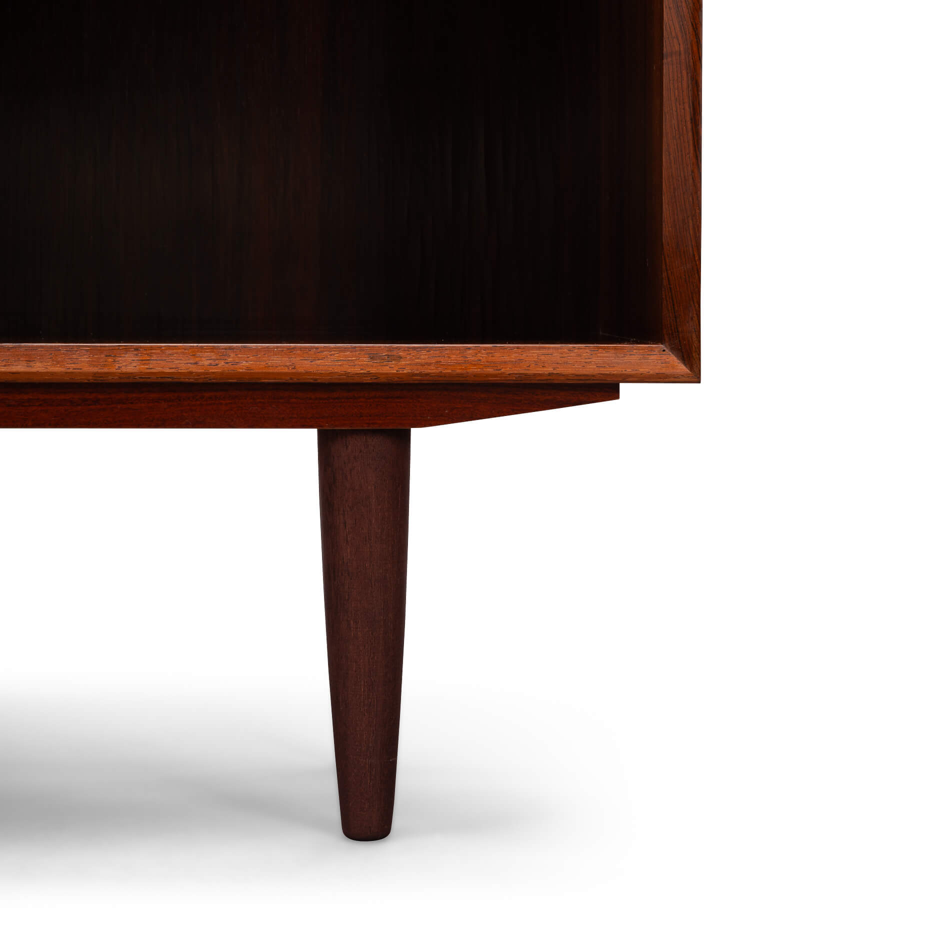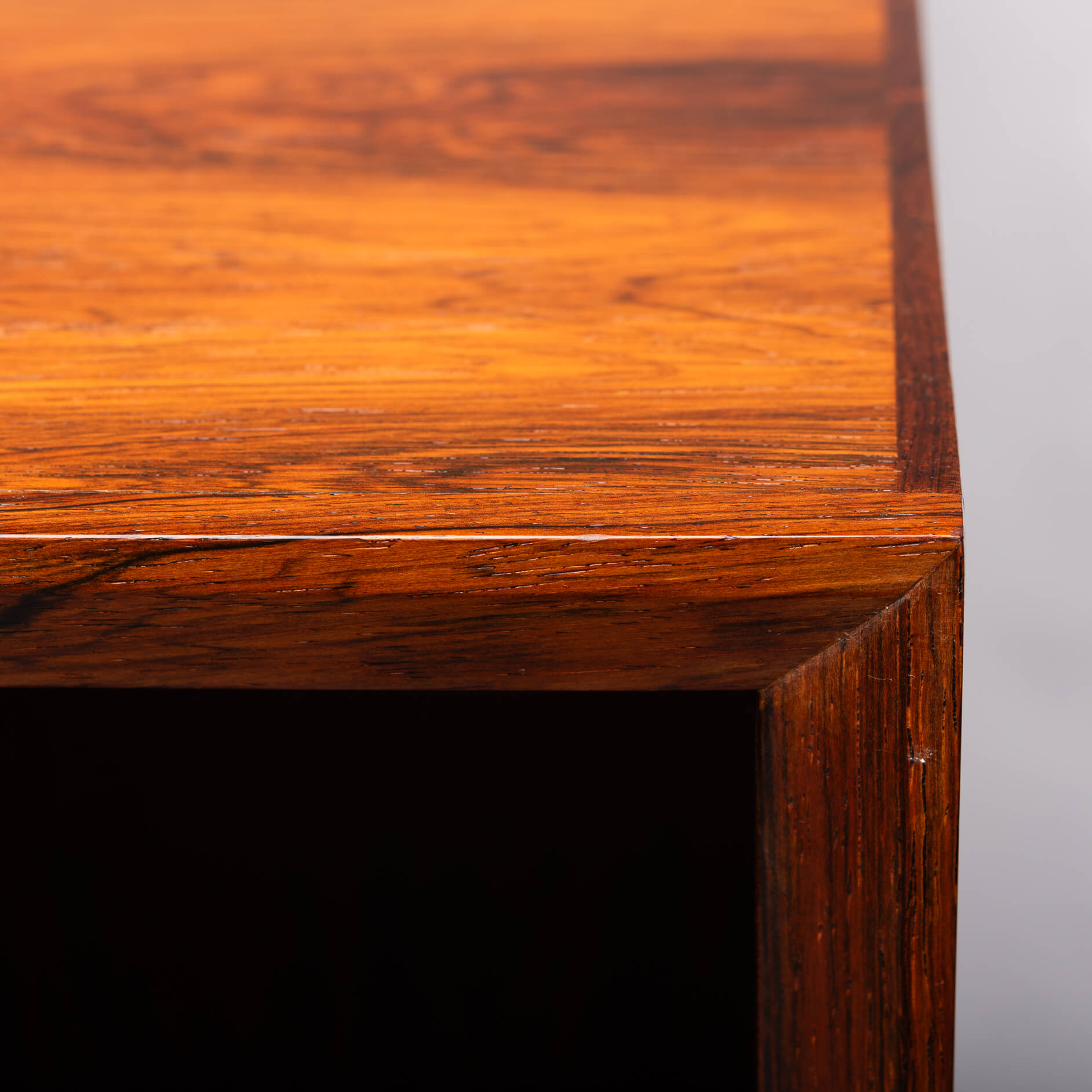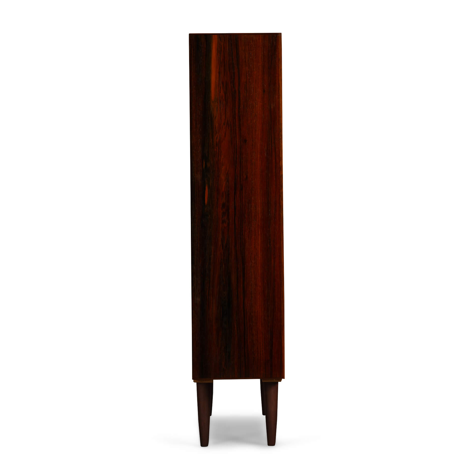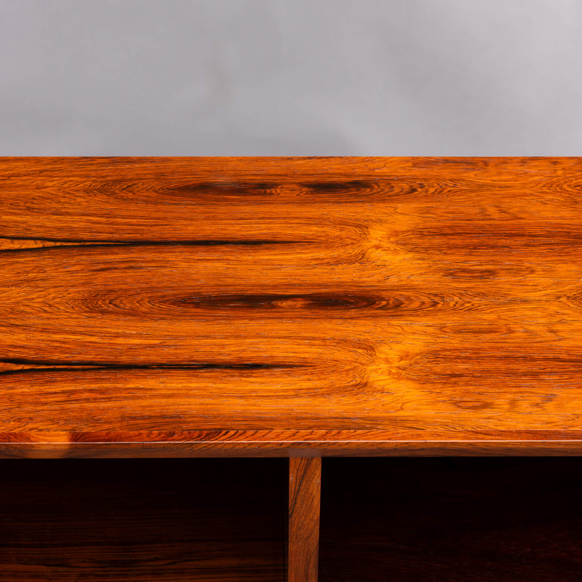 Deense midcentury modern boekenkast in prachtig palissander fineer. Helaas hebben we de designer en maker van de kwaliteitskast niet kunnen achter halen. Maar dat betekent wel een gunstigere prijs ;-)