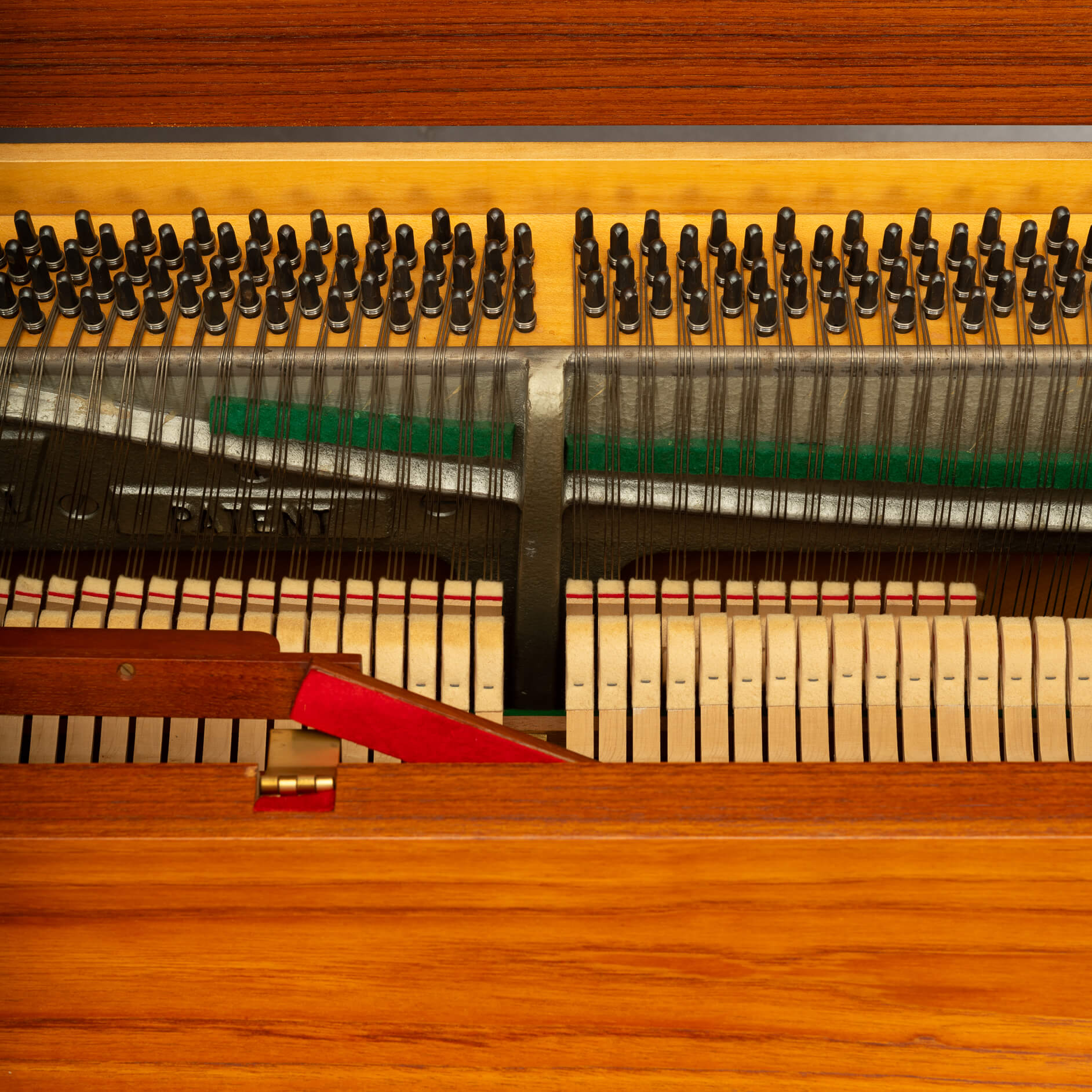 Een zeldzame Deense mid-century pianette gemaakt van teak. Het wordt een pianette genoemd vanwege de 82 toetsen in plaats van de standaard 88 bij een piano van volledige grootte. Deze pianette is gemaakt door de beroemde pianomaker Louis Zwicki. Elke piano van Louis Zwicki is genummerd. Dit is No. 10138. Zie foto!