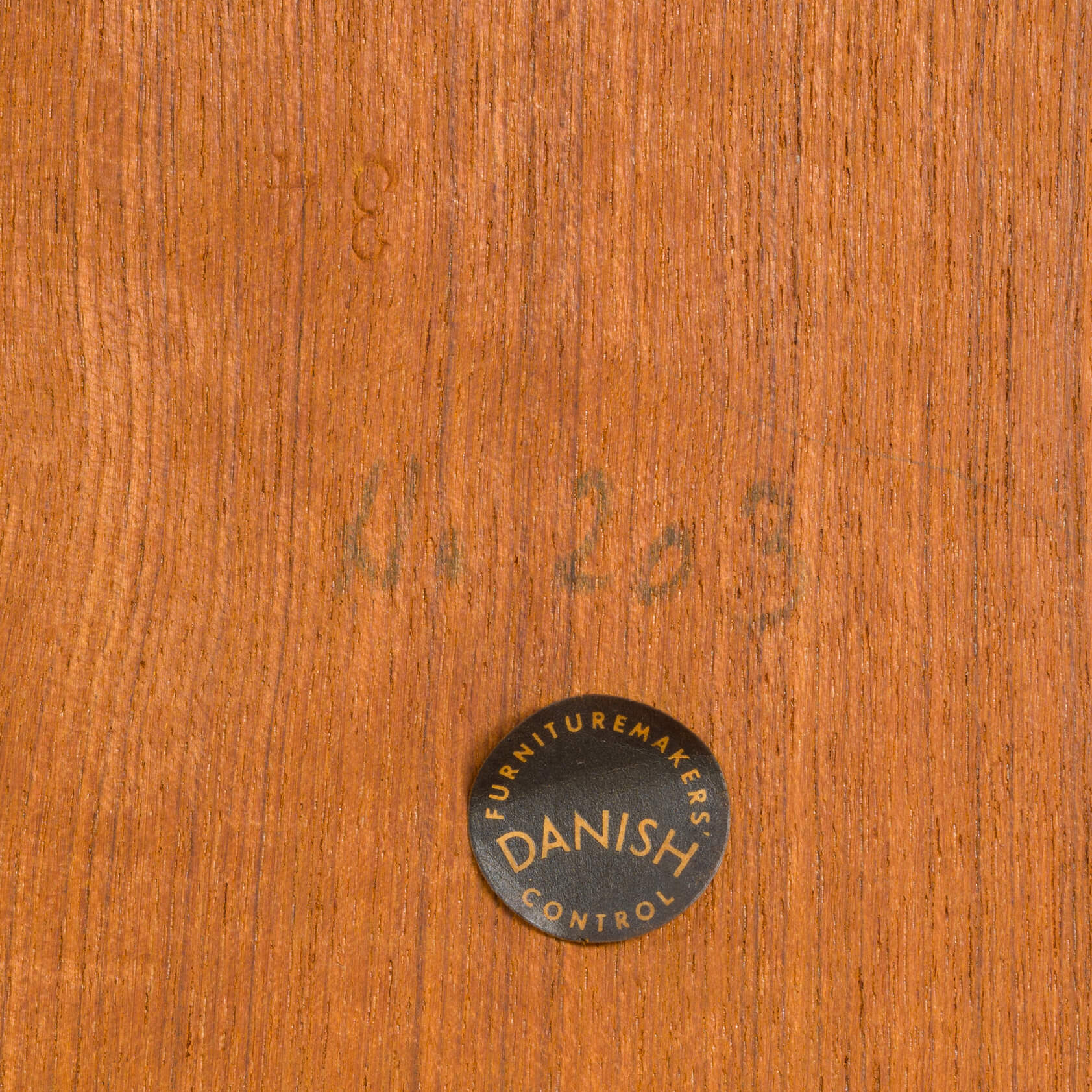 Aan de onderkant van het lagere plateau zit het Danish furniture control export label. Dit bijzettafeltje uit midden jaren 60 is in een zeer goede vintage staat.