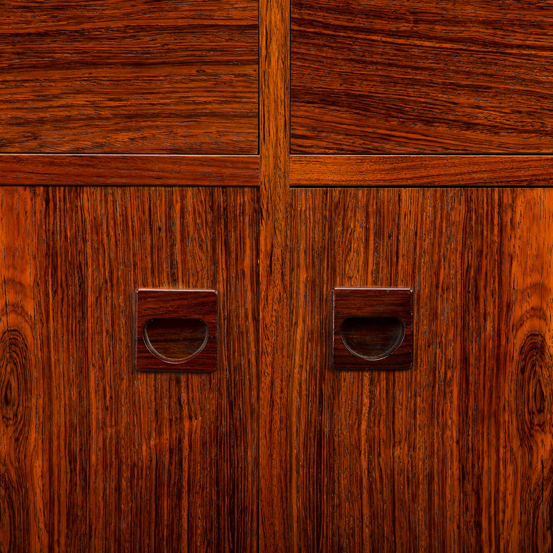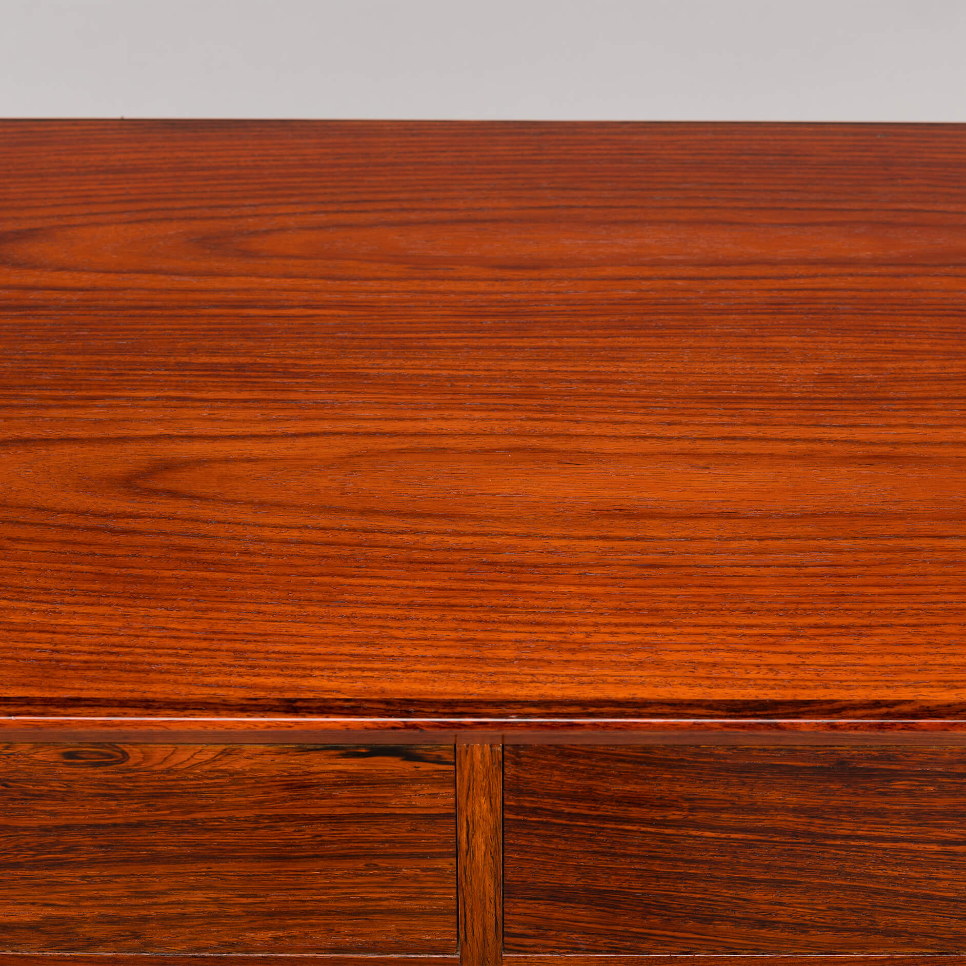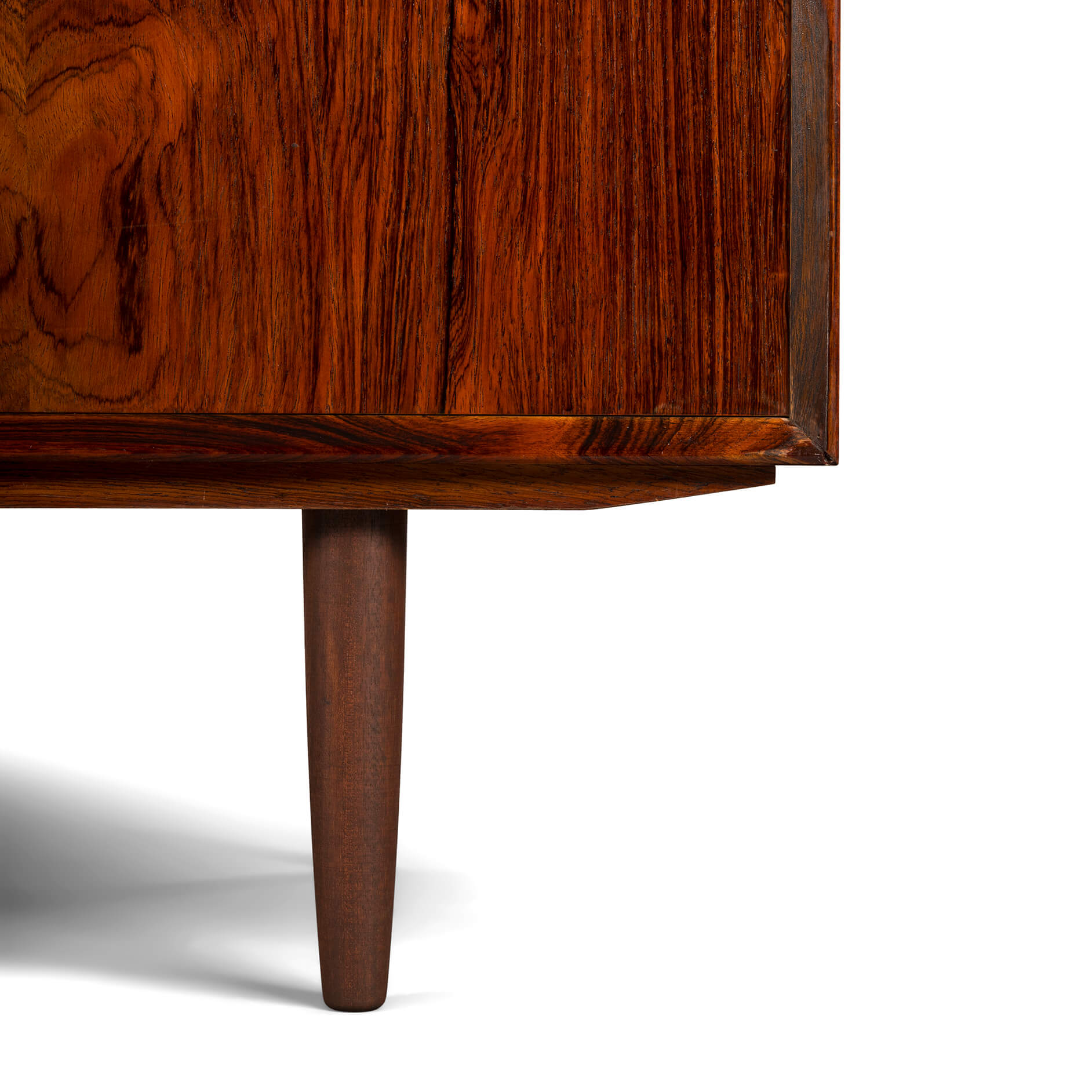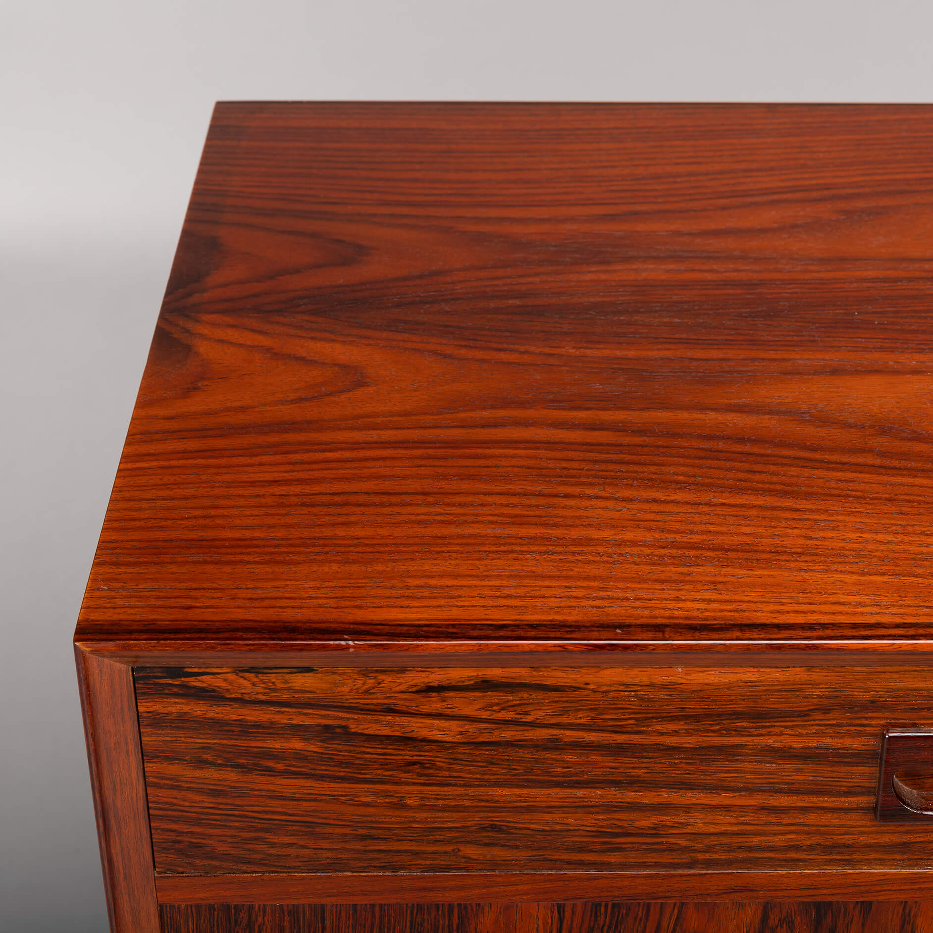 Rosewood! Oftewel Palissander in het Nederlands. Dit bescheiden dressoir, maar dan alleen in formaat, wordt gemaakt door de tekening en kleur van het hout. Een echte eye-catcher in een modern en licht interieur.