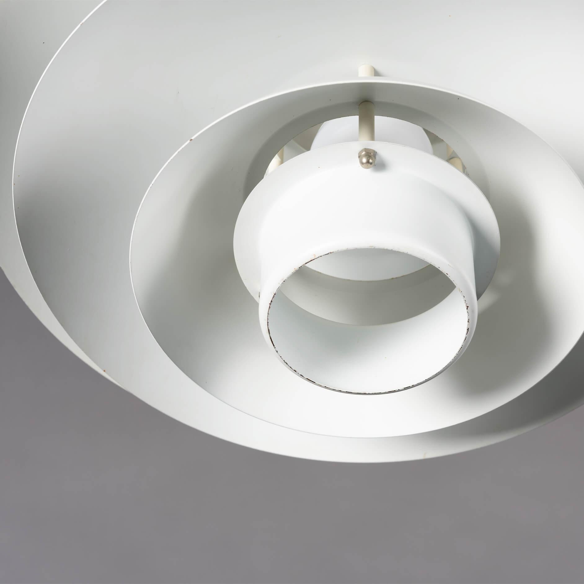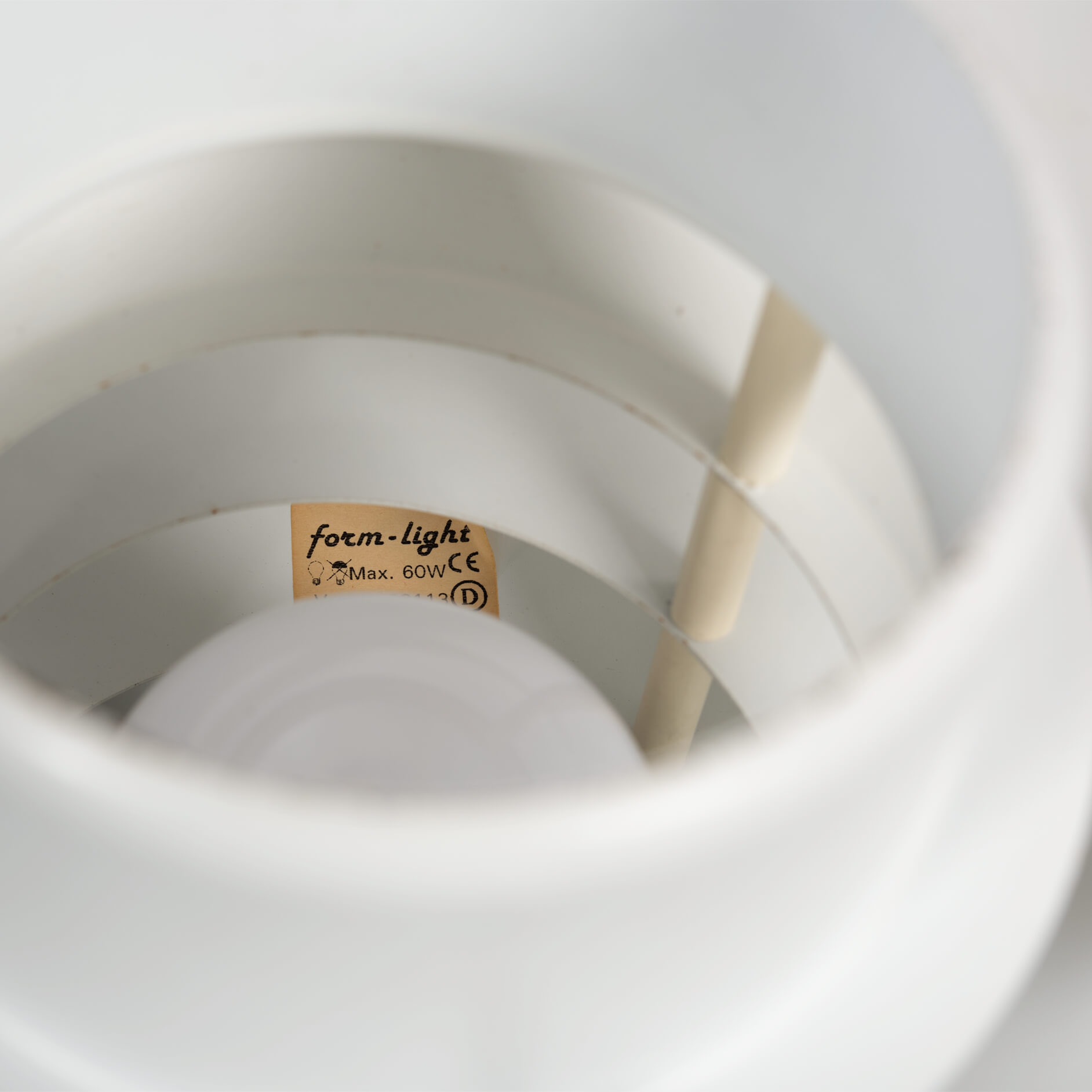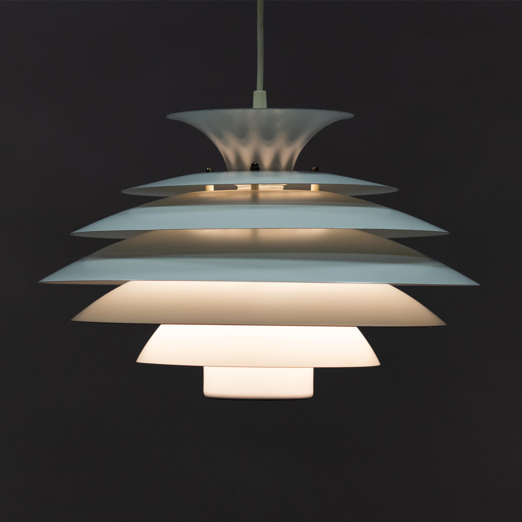 Prachtige Form Light lamp met 7 elementen die het licht verdelen. Form Light had weinig op met de materialen die haar concurenten gebruikten voor de lampen en paste staal toe en geen aluminium. Een Form Light is dus eigenlijk altijd een niet zo very light maar best een zware lamp. Het licht uit deze lamp geeft een mooie brede burst naar een breed oppervlak daaronder.