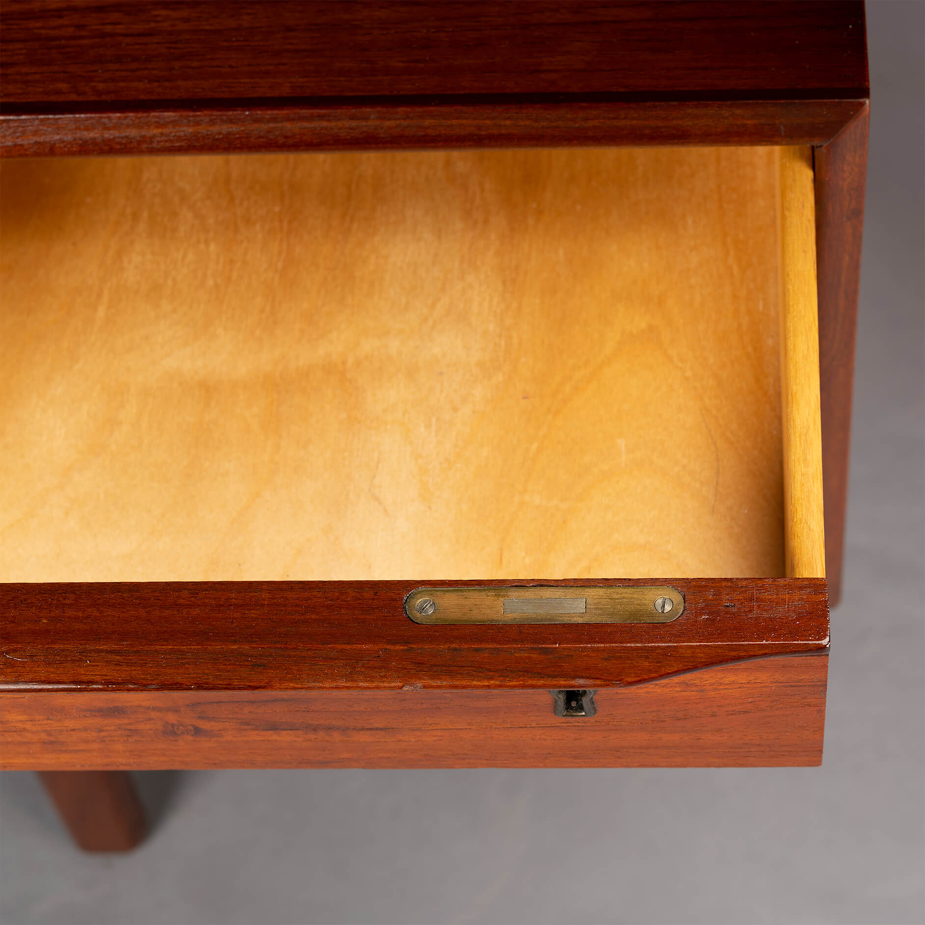 Het buro heeft enkele sporen van gebruik en tijd op de ladeblokken en poten echter overall gezien heeft het een zeer goede vintage conditie.