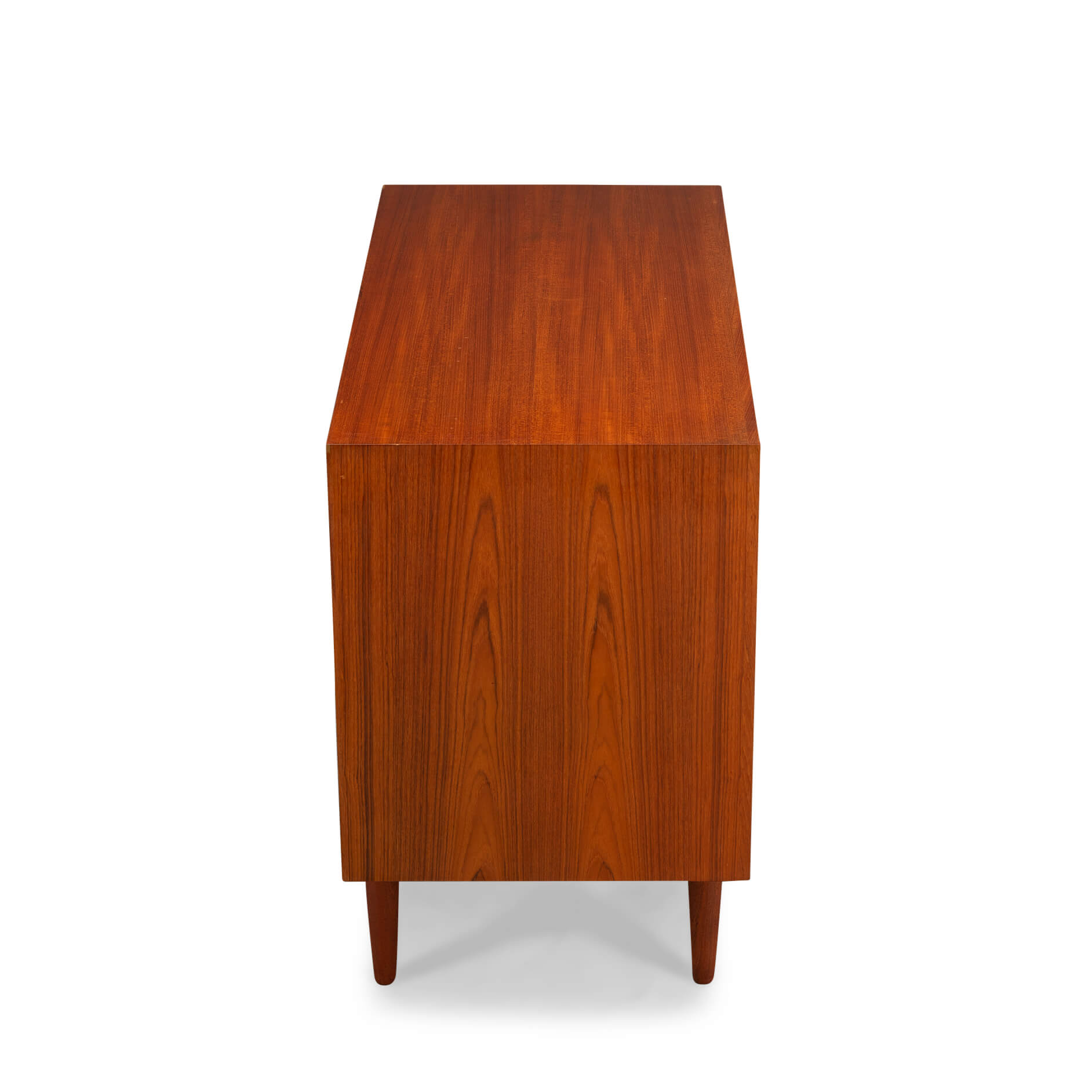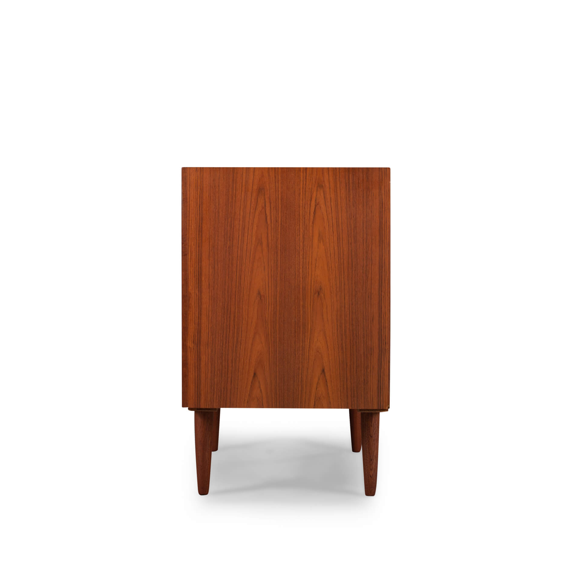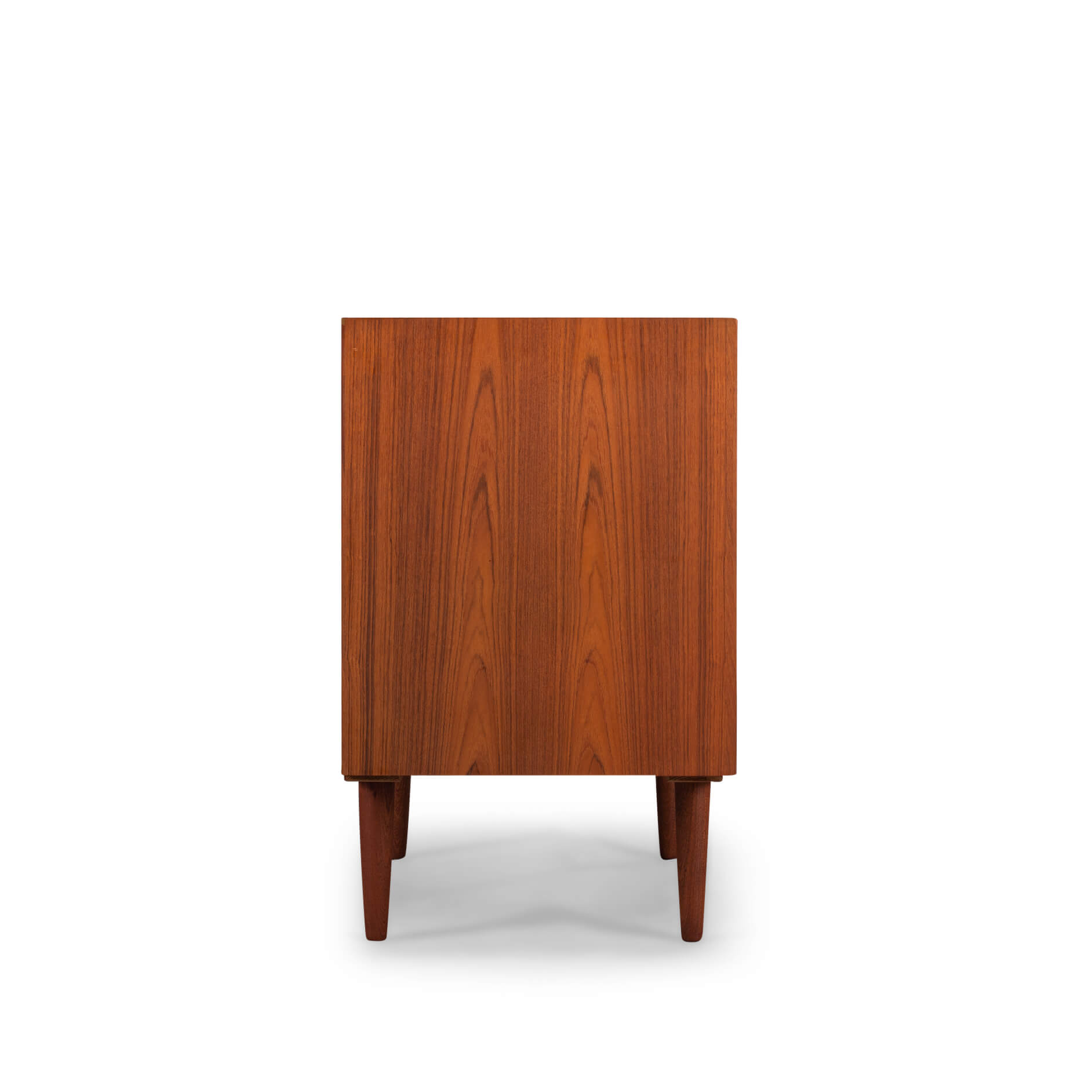 Klein teak dressoir, ontworpen door E. Brouer en vervaardigd door de Brouer Møbelfabrik. Een echte blikvanger in de gang, studeerkamer of living.  Deze kast heeft twee openslaande deuren.