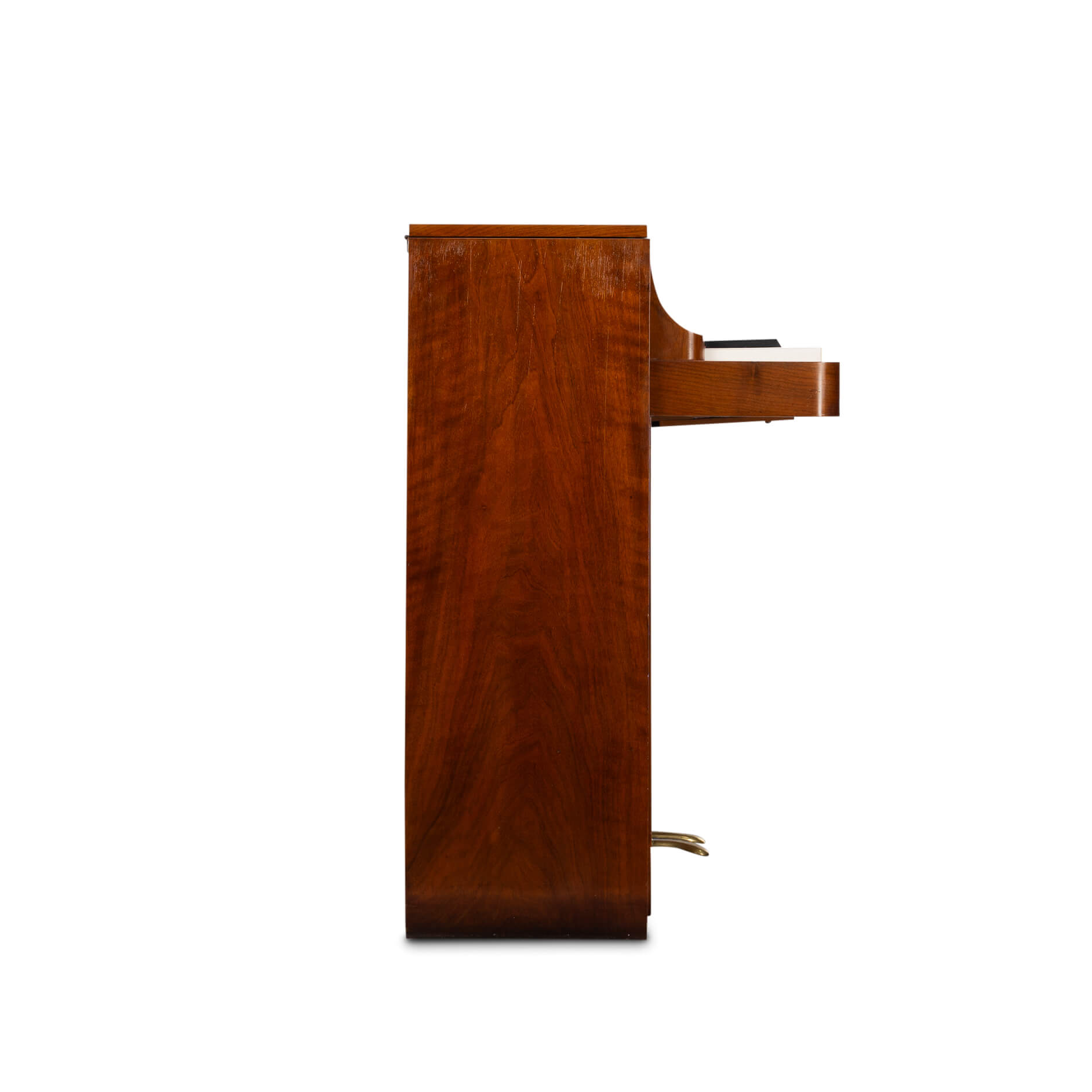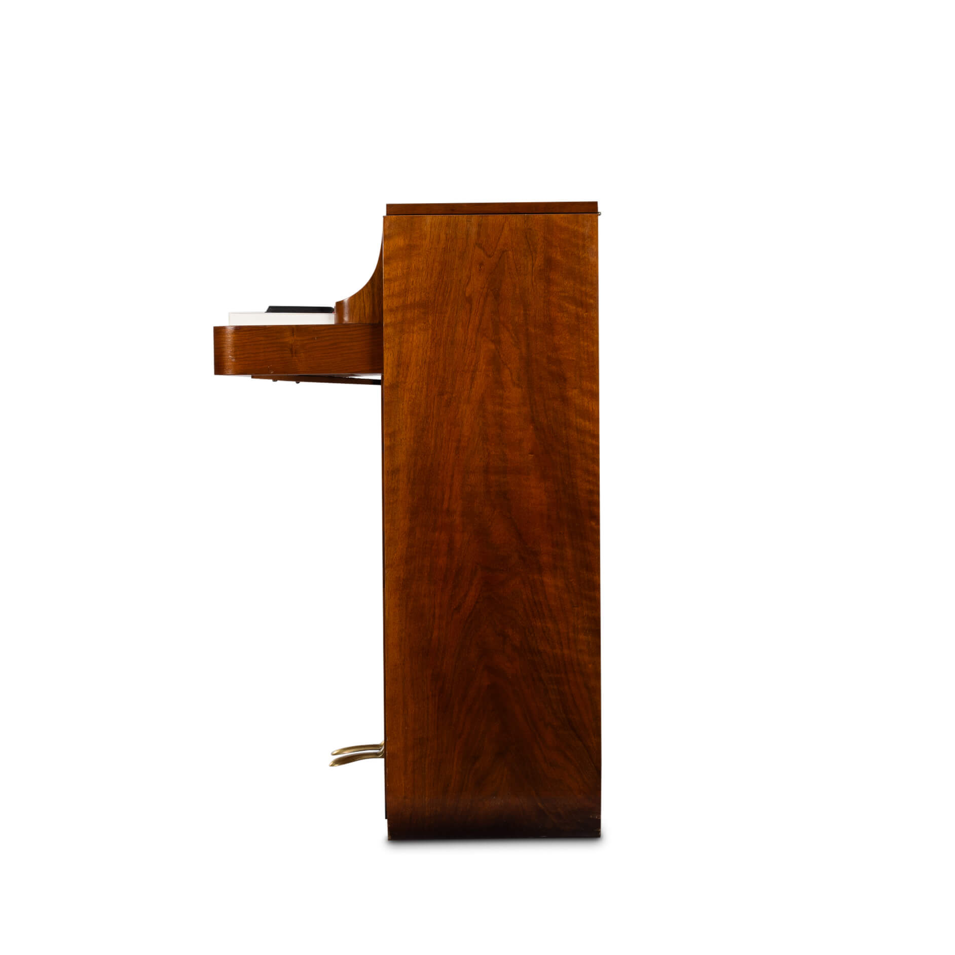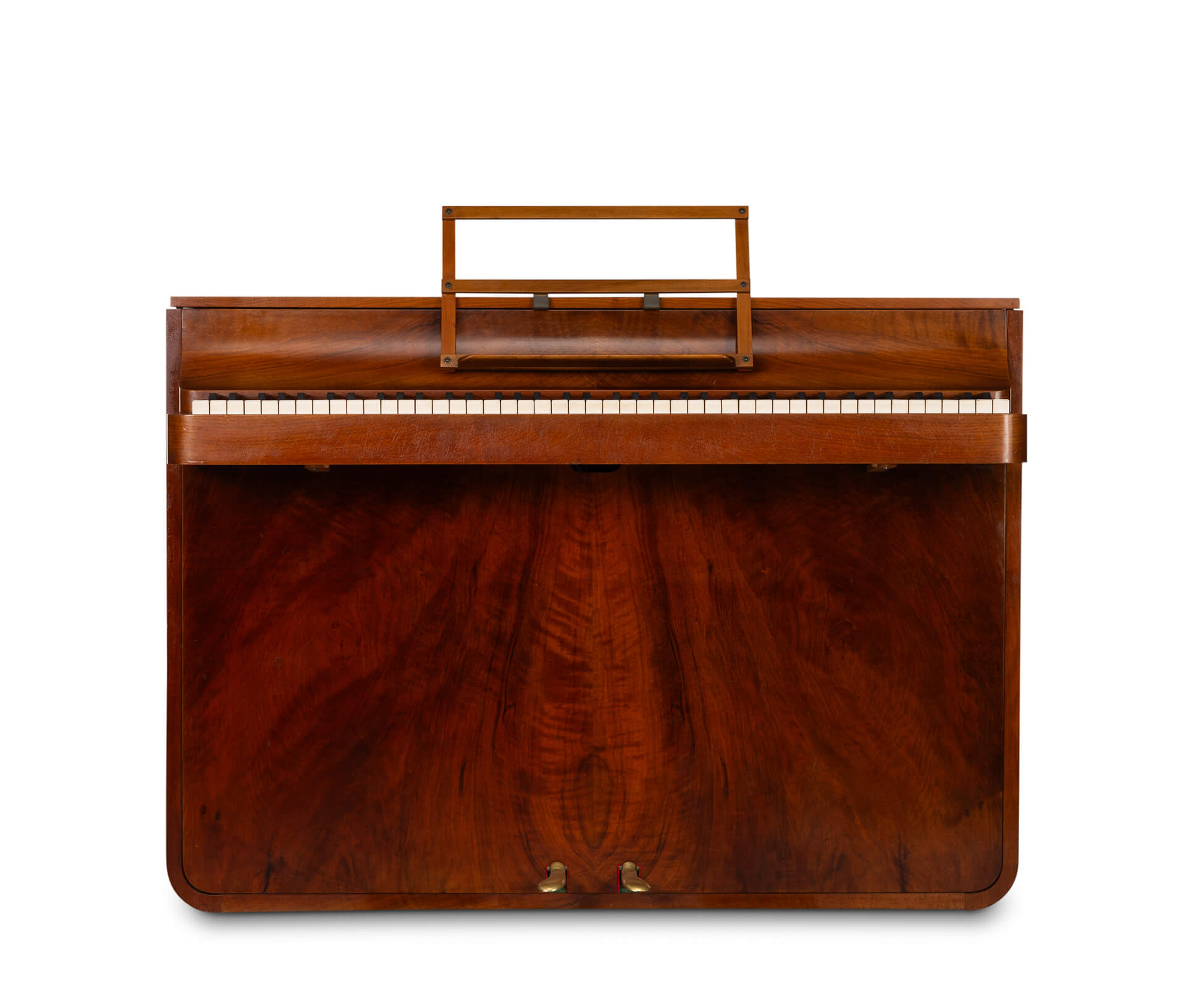 Een zeldzame Deense mid-century pianette gemaakt van palissander. Het wordt een pianette genoemd vanwege de 82 toetsen in plaats van de standaard 88 bij een piano van volledige grootte. Deze pianette is gemaakt door de beroemde pianomaker Louis Zwicki. Elke piano van Louis Zwicki is genummerd. Dit is No. 7266. Zie foto!
