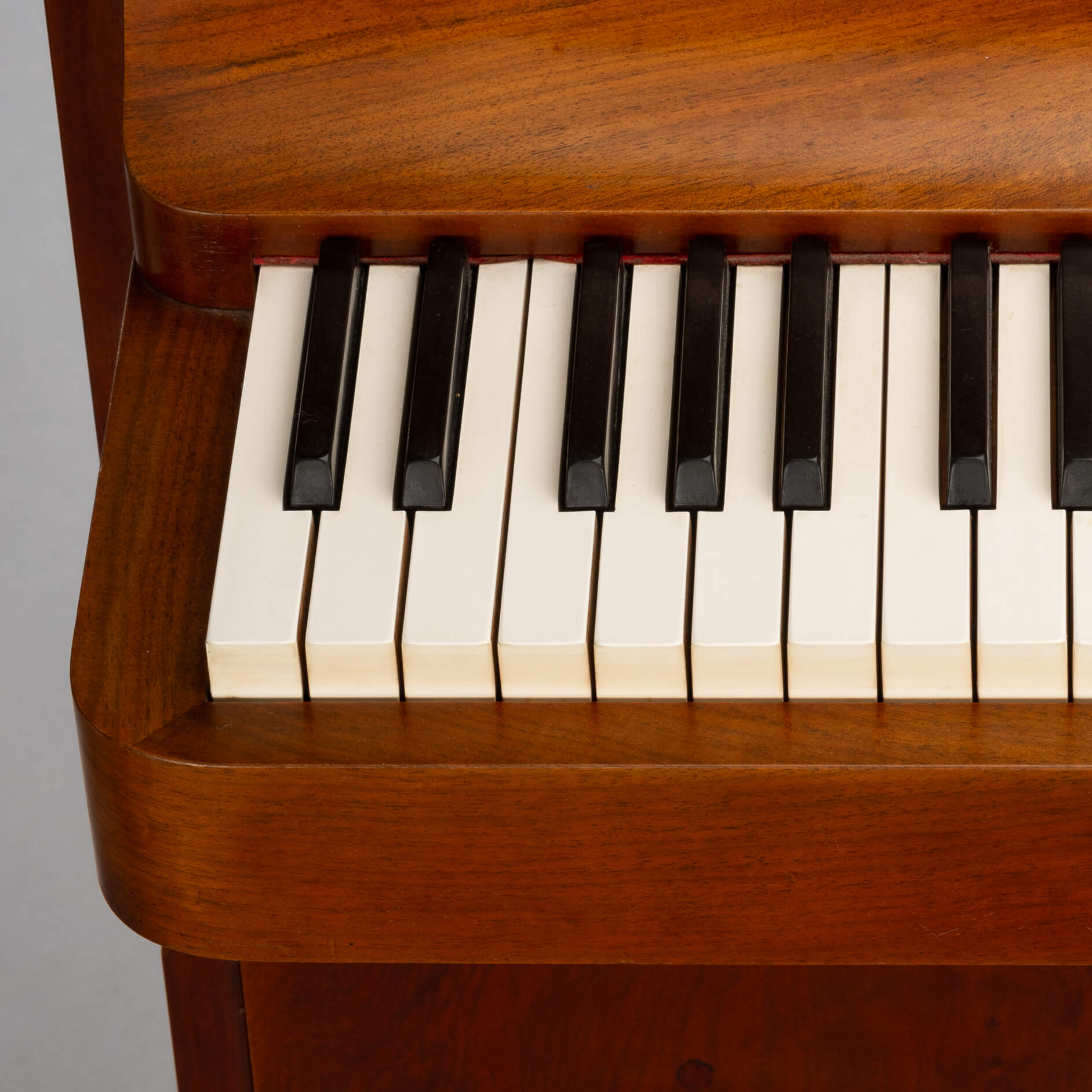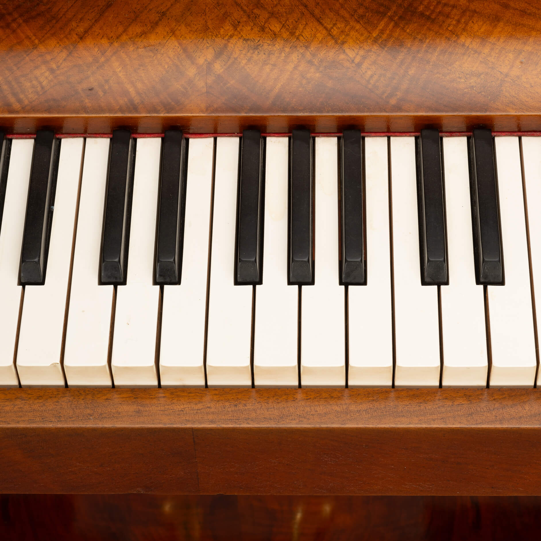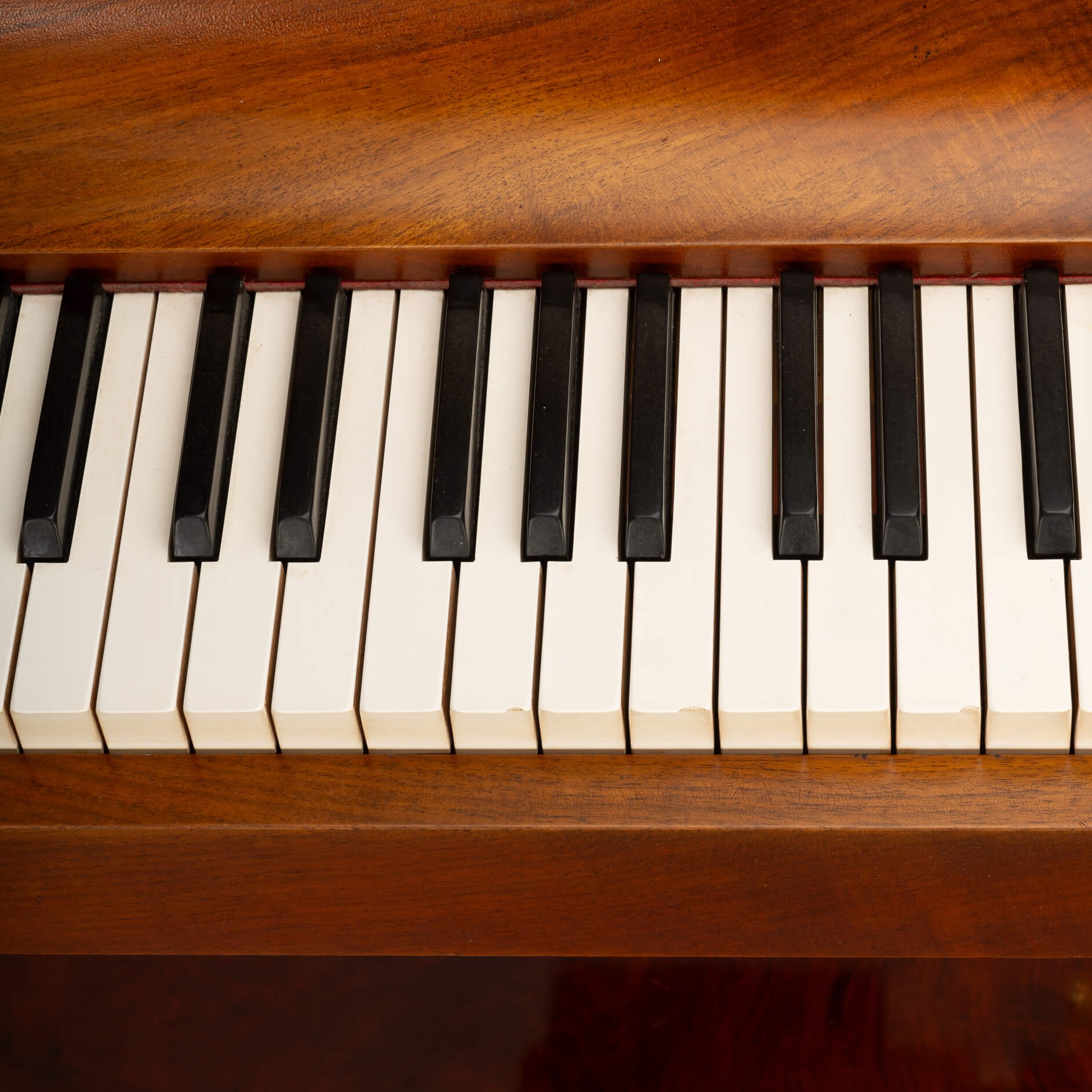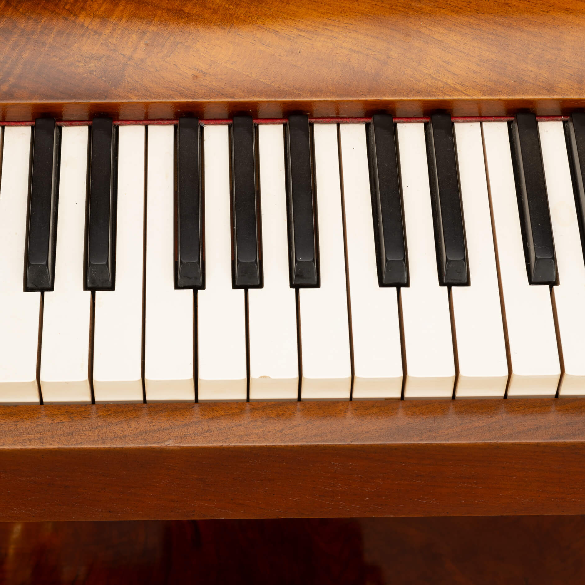 De pianette bevindt zich in een zeer goede vintage staat. Er zijn enkel wat krassen aan de linkerkant en van een zestal toetsen is een heel klein stukje af. Zie foto's. We hebben ervoor gekozen om de pianette in zijn origninele staat te laten. Echter de toetsen kunnen door onze pianotechnicus worden vervangen, in een kleur vergelijkbaar met de originele toetsen. De extra kosten zijn dan € 600,-. En het duurt ongeveer 4-6 weken voordat het klaar is.