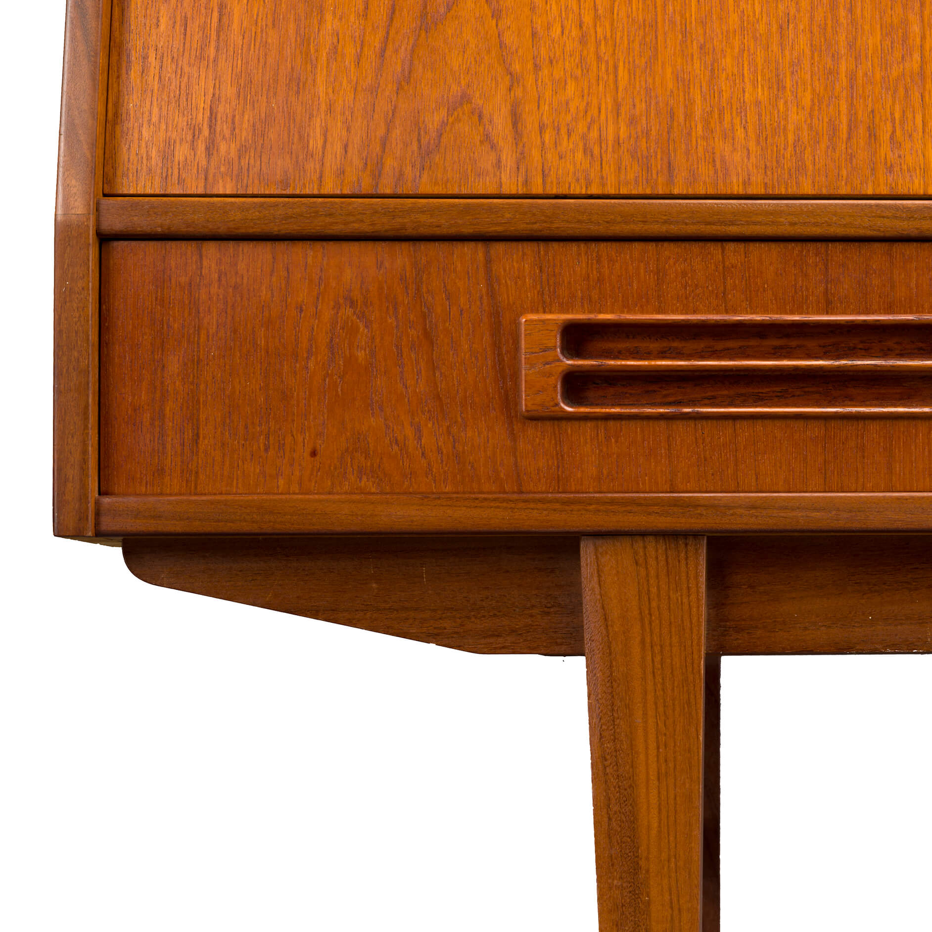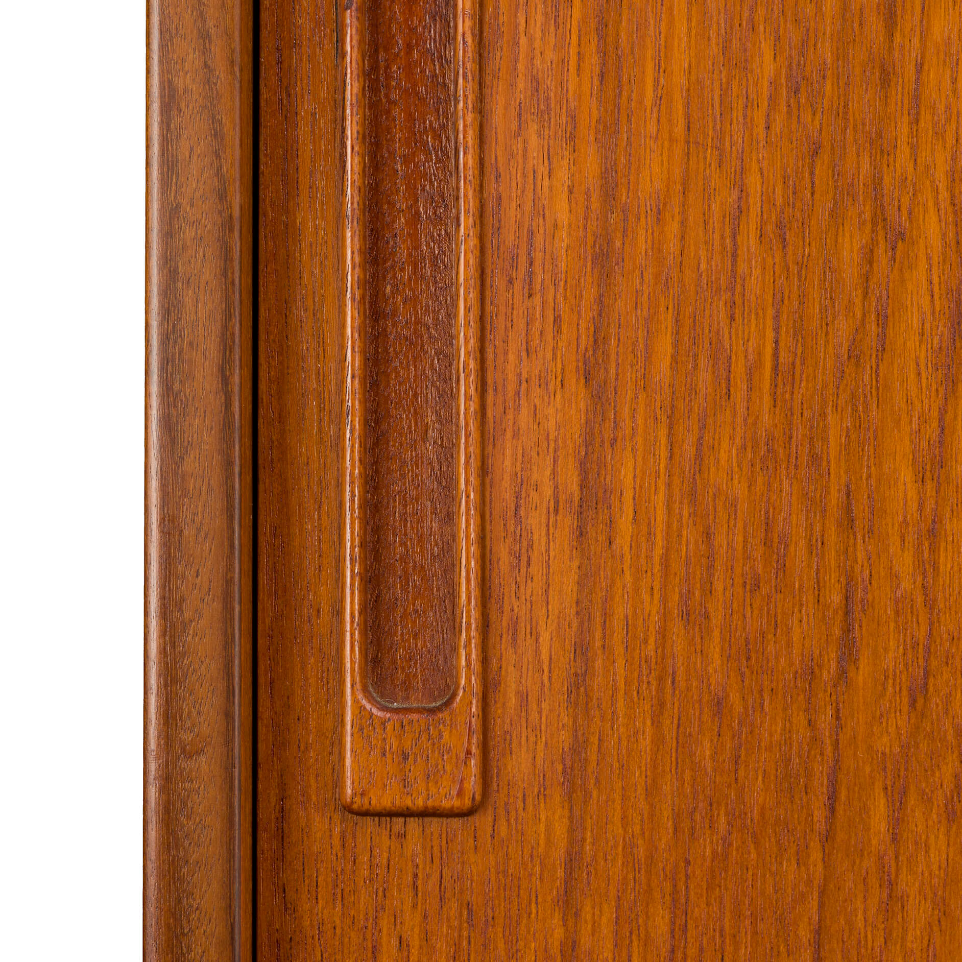 Laat de 70’s herleven en richt een kleine bar in achter de rechter schuifdeur! De drie lades onder de bar, zijn overigens van beukenhout met het originele vilt uit de Skovby Møbler. De kast is in goede vintage staat.