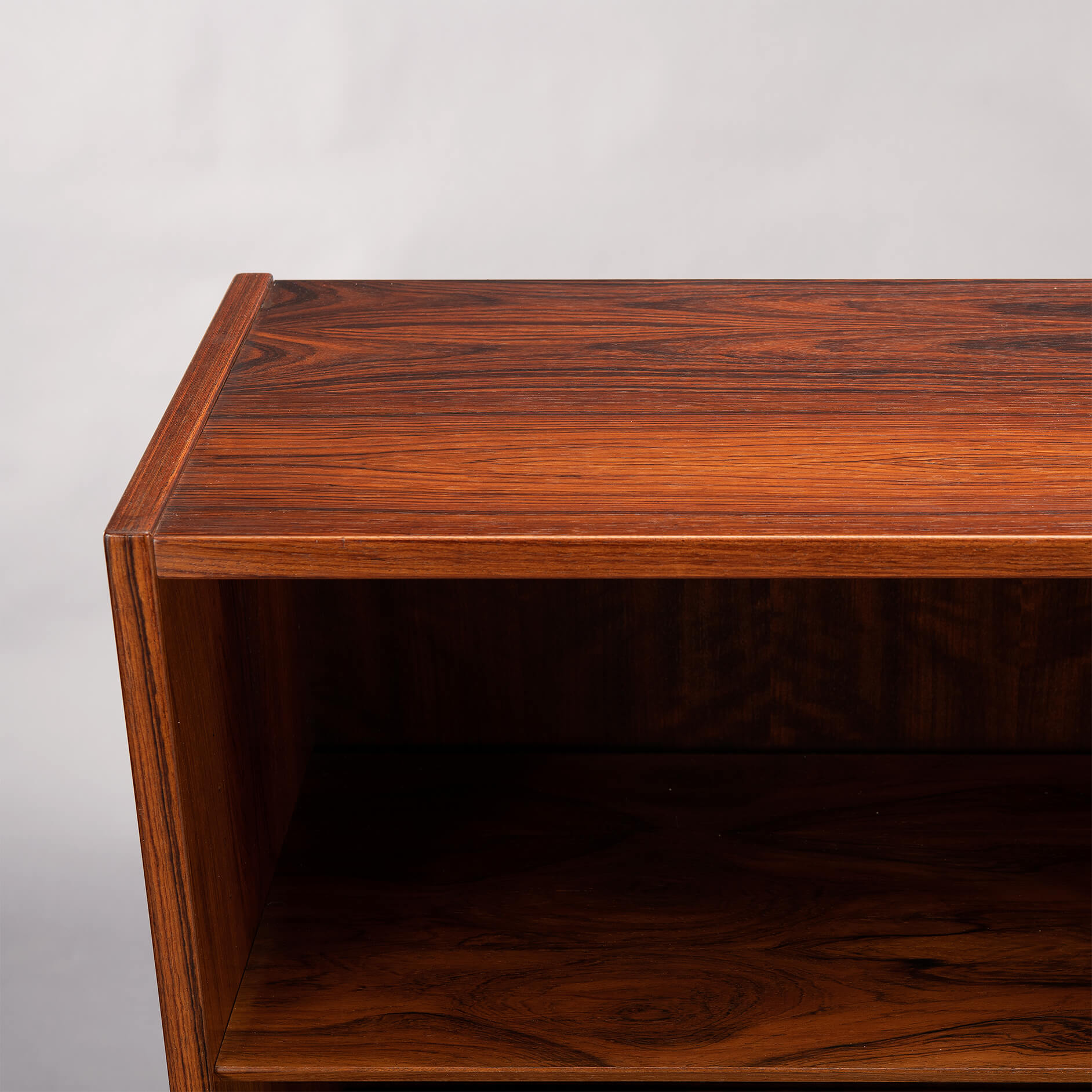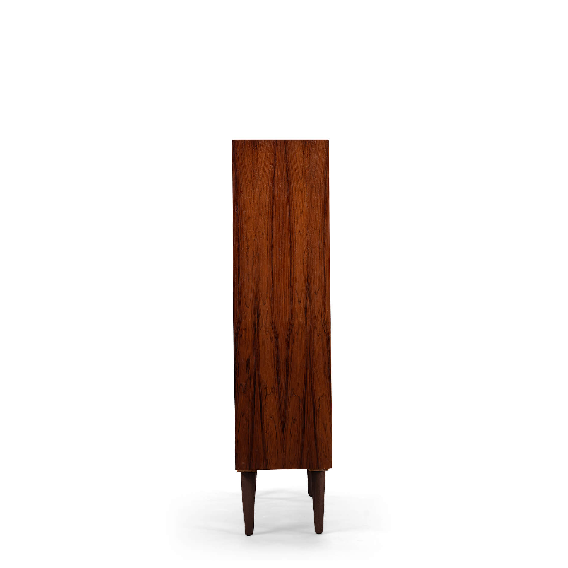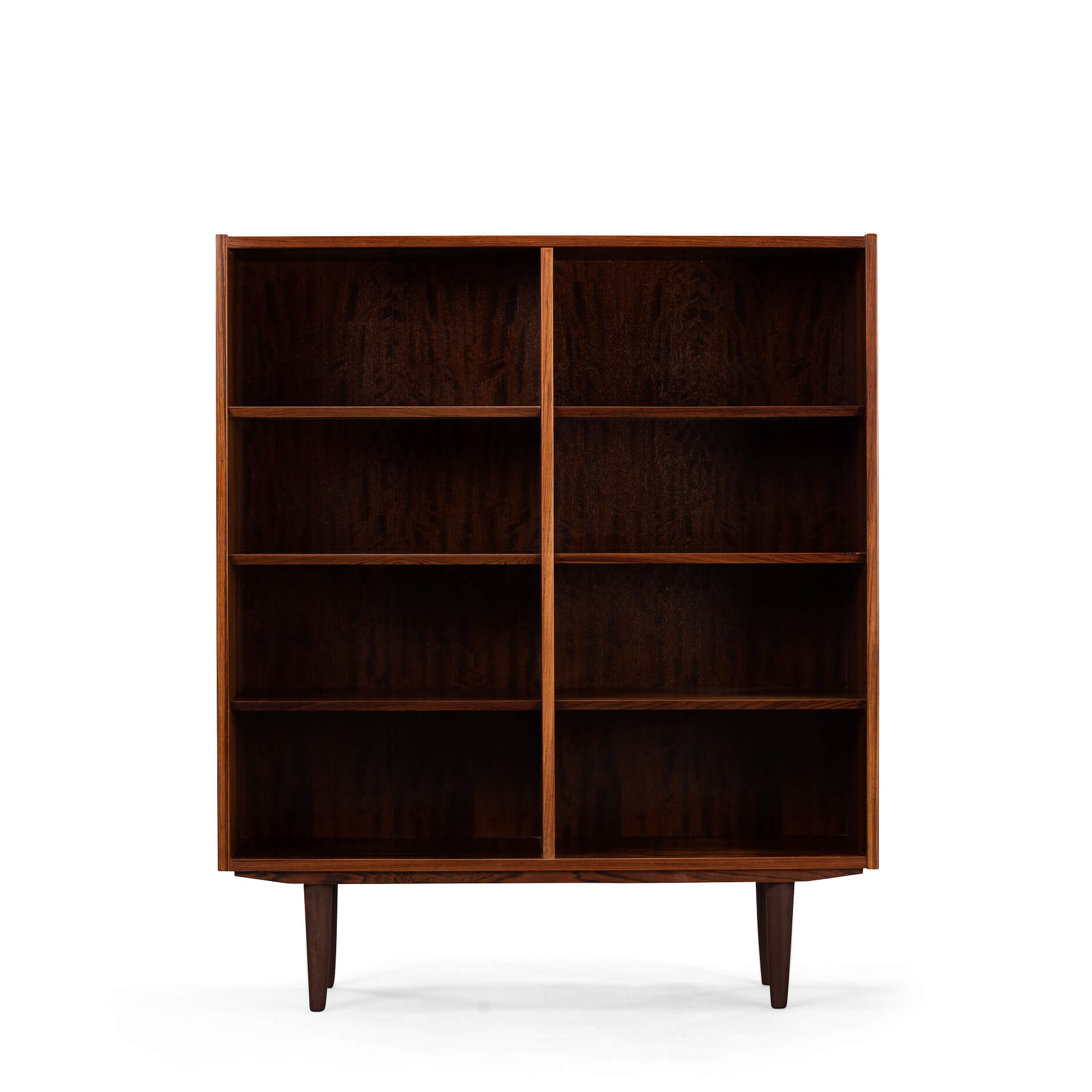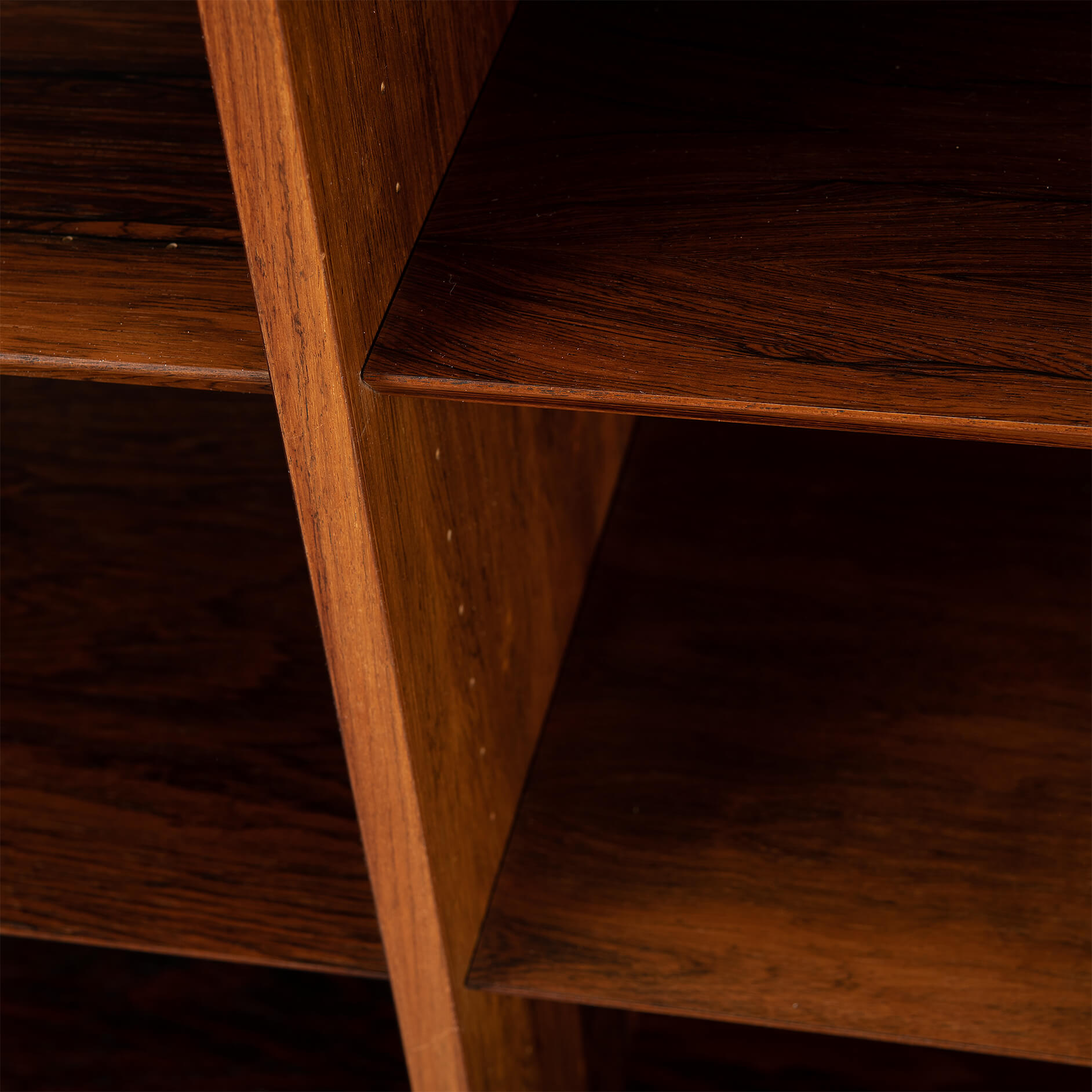 Deense boekenkast in prachtig palissander fineer. Design by Carlo Jensen en gemaakt door Hundevad & Co. Deze boekenkast verkeert in een zeer goede vintage staat en heeft in totaal 6 in hoogte verstelbare planken.