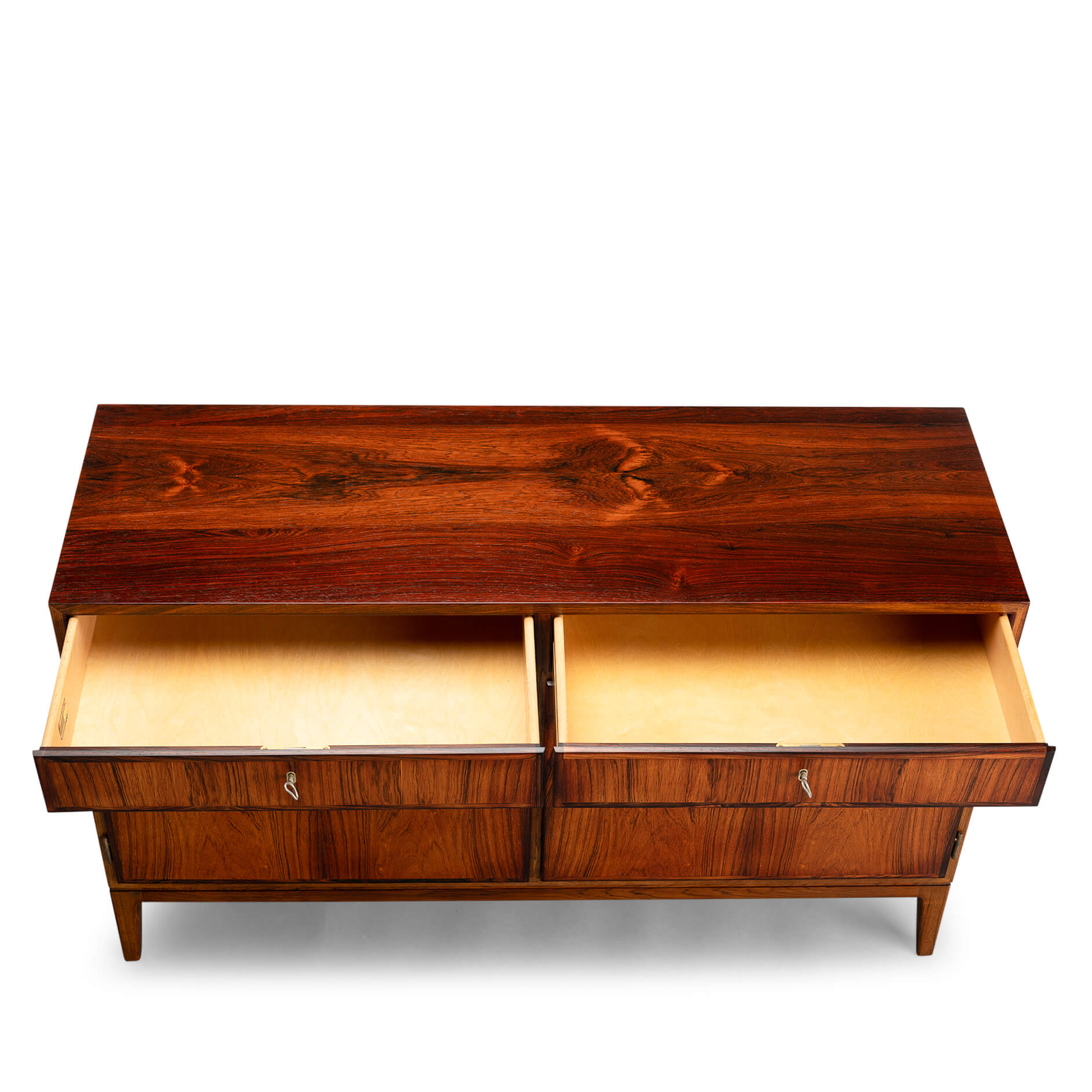 We hebben er 2, de print van het hout is hetzelfde. Ze komen ook uit hezelfde huis maar hebben op verschillende plaatsen in het huis gestaan. Waardoor ze wat verschillendd zijn verkleurd door de zon. Dit is de andere: https://www.furnip.nl/nl/online-shop/kasten/dressoirs/model-no-5-in-rosewood-sb24140