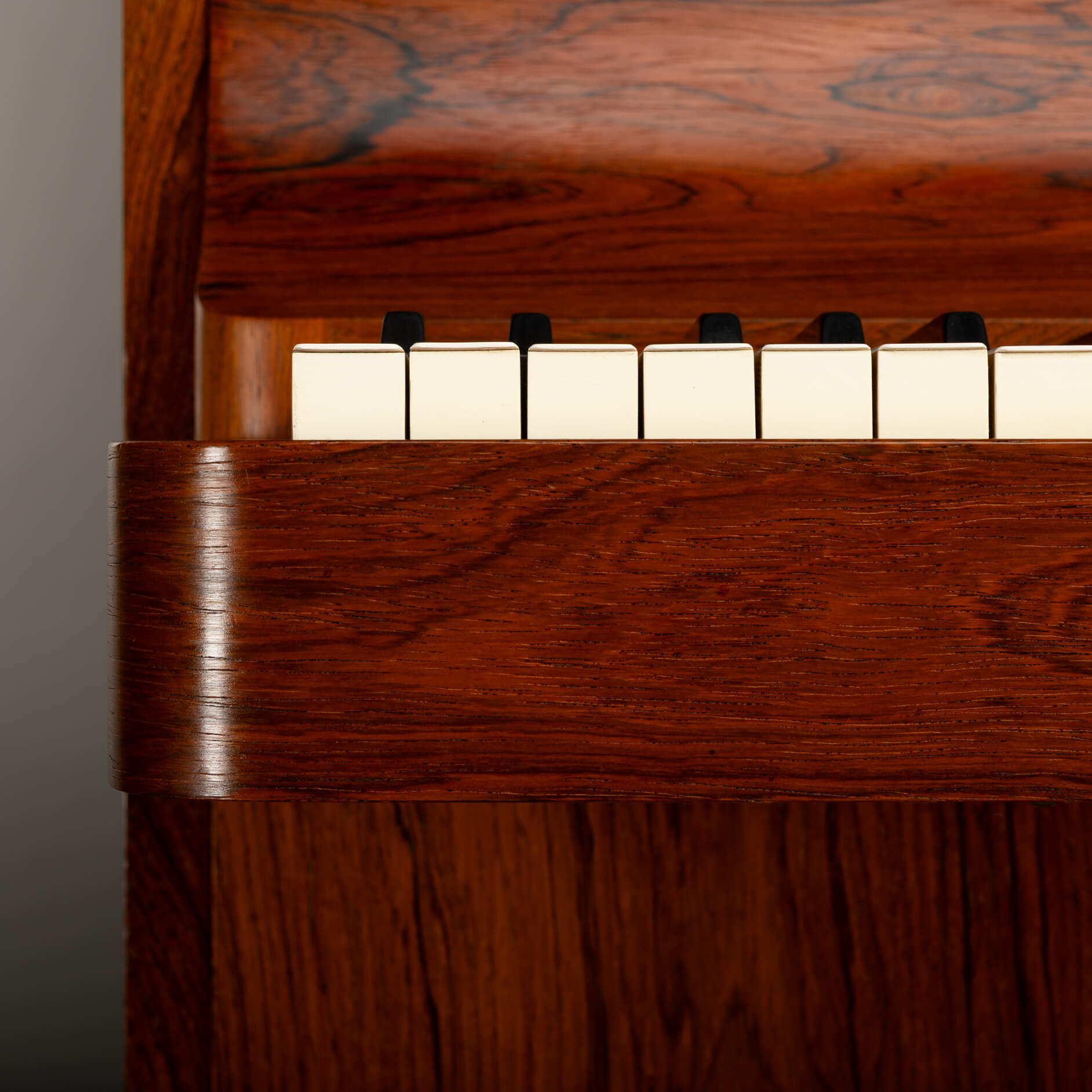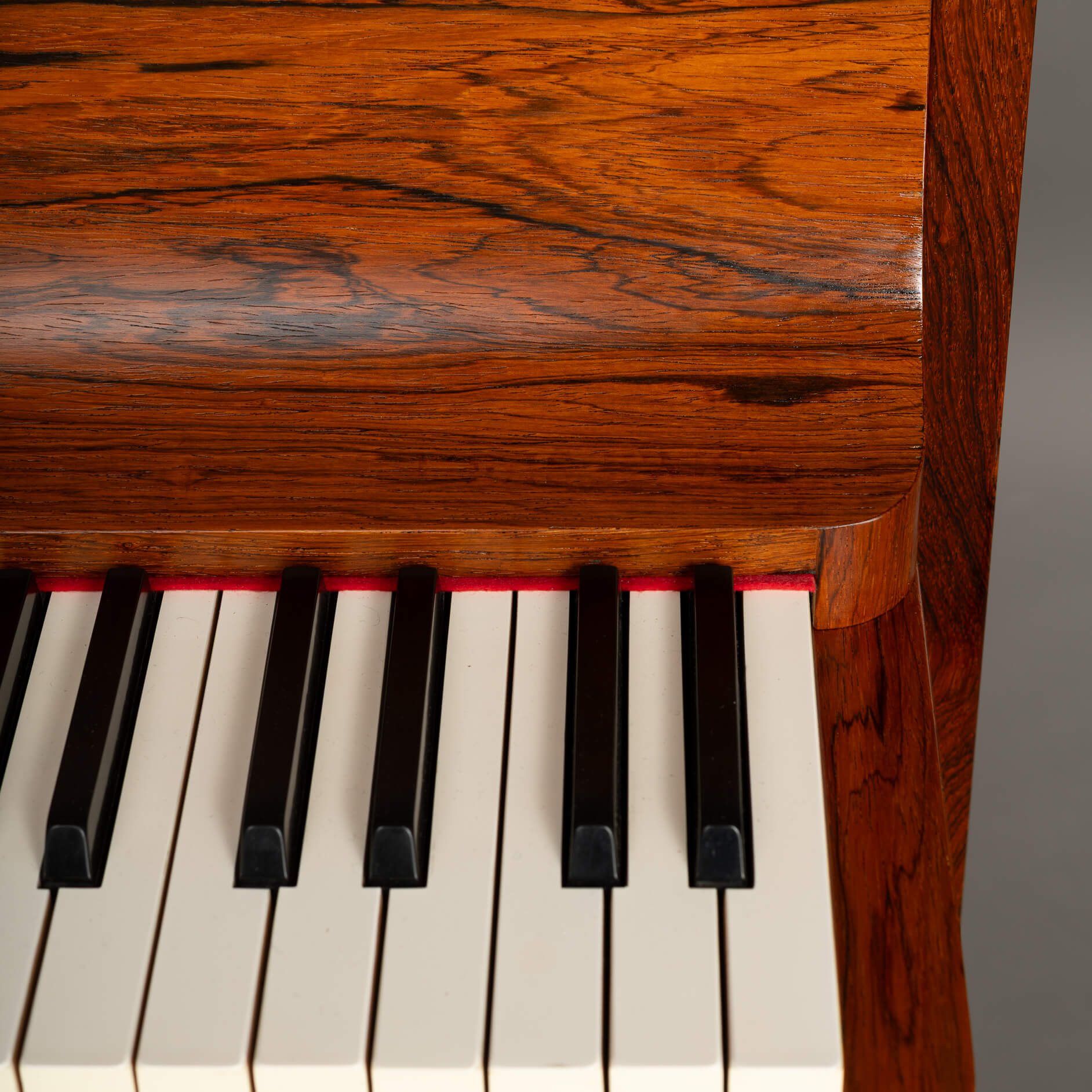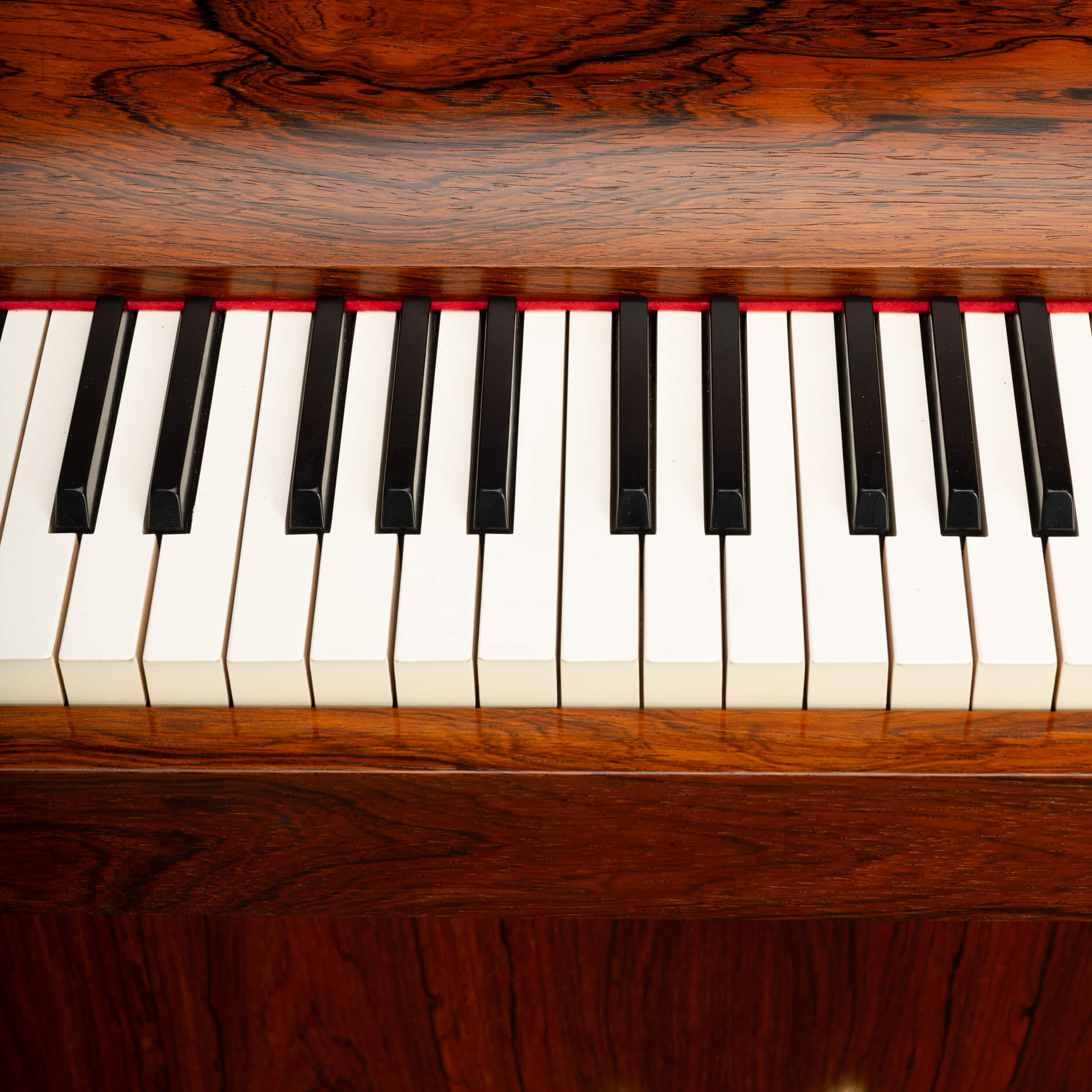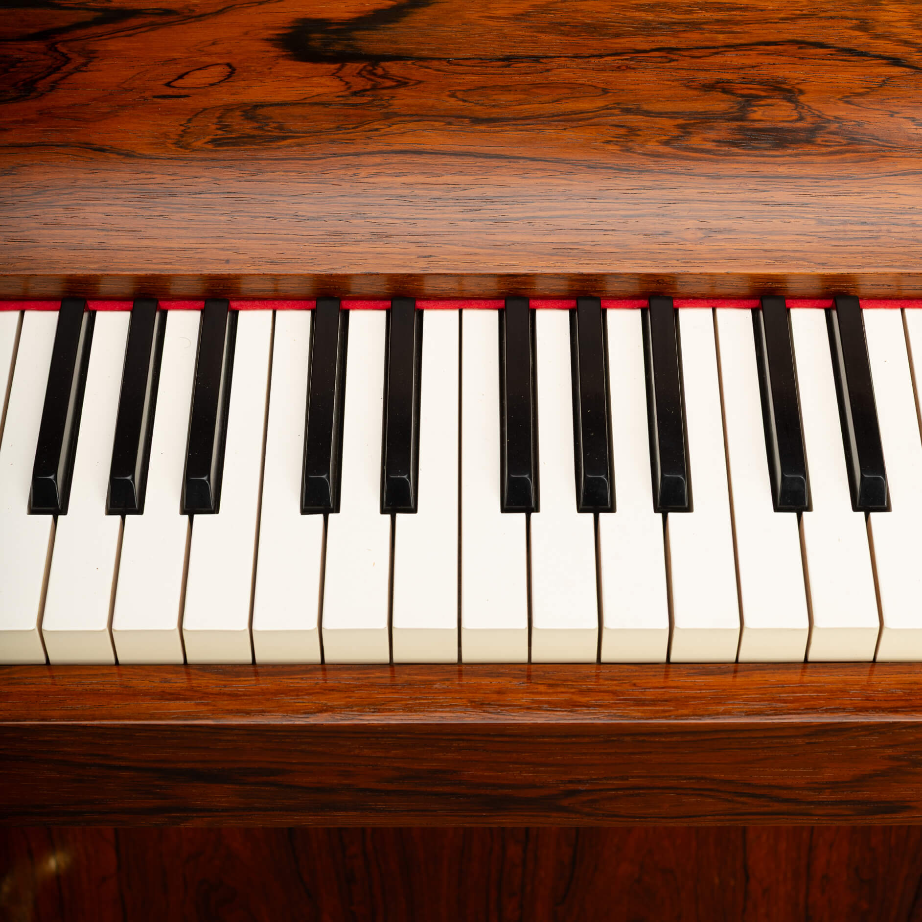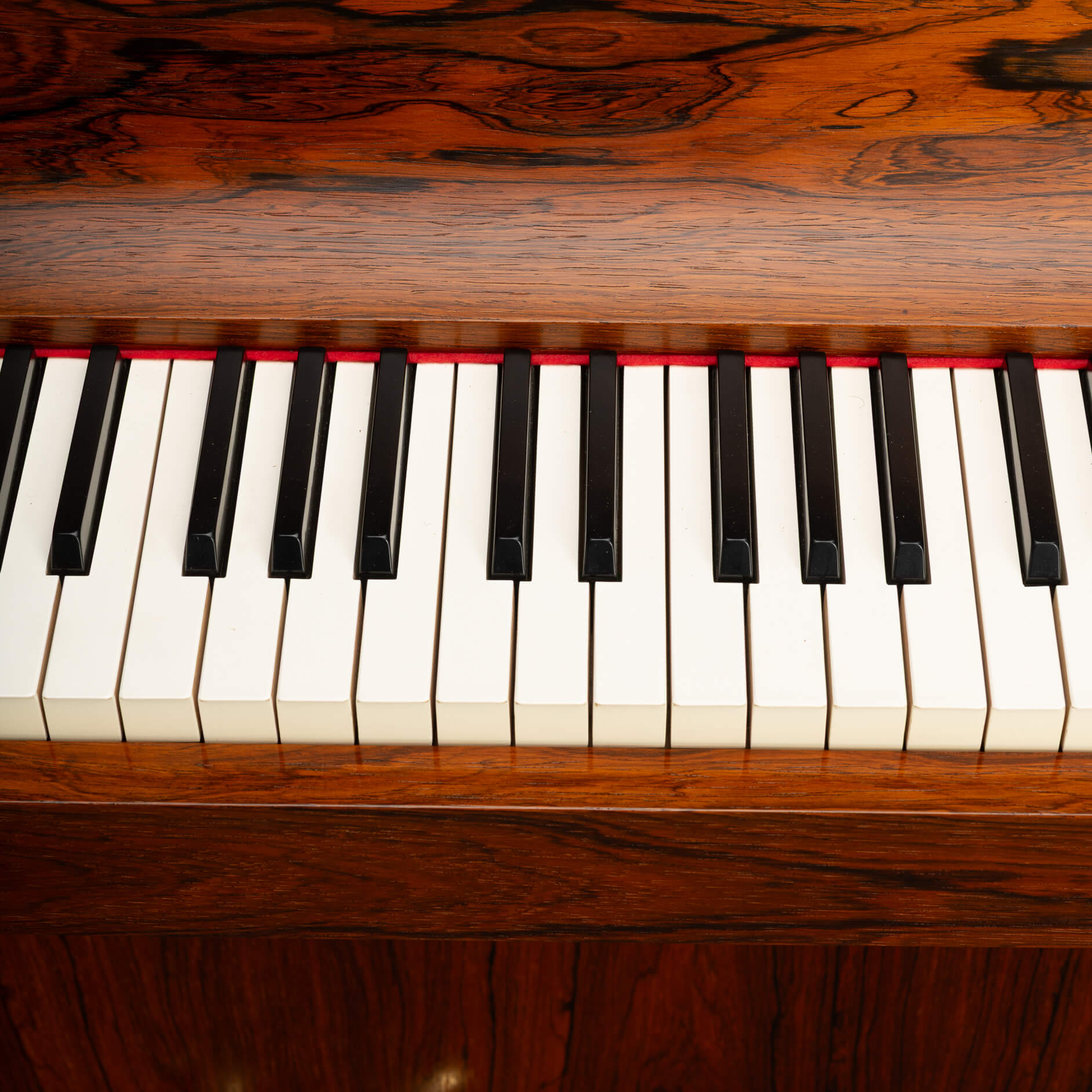 Een zeldzame Deense mid-century pianette gemaakt van palissander. Het wordt een pianette genoemd vanwege de 82 toetsen in plaats van de standaard 88 bij een piano van volledige grootte. Deze pianette is gemaakt door de beroemde pianomaker Louis Zwicki. Elke piano van Louis Zwicki is genummerd. Dit is No. 10772. Zie foto!