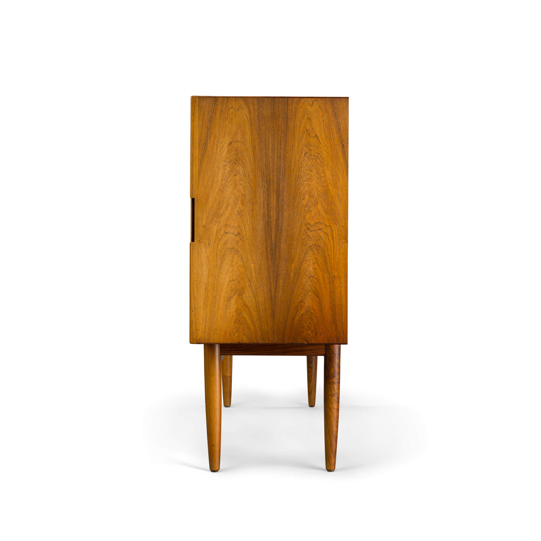 Alles bij elkaar een fraai en stylish exemplaar uit de Deense mid- century modern periode. De kast verkeerd in een uitstekende vintage conditie.