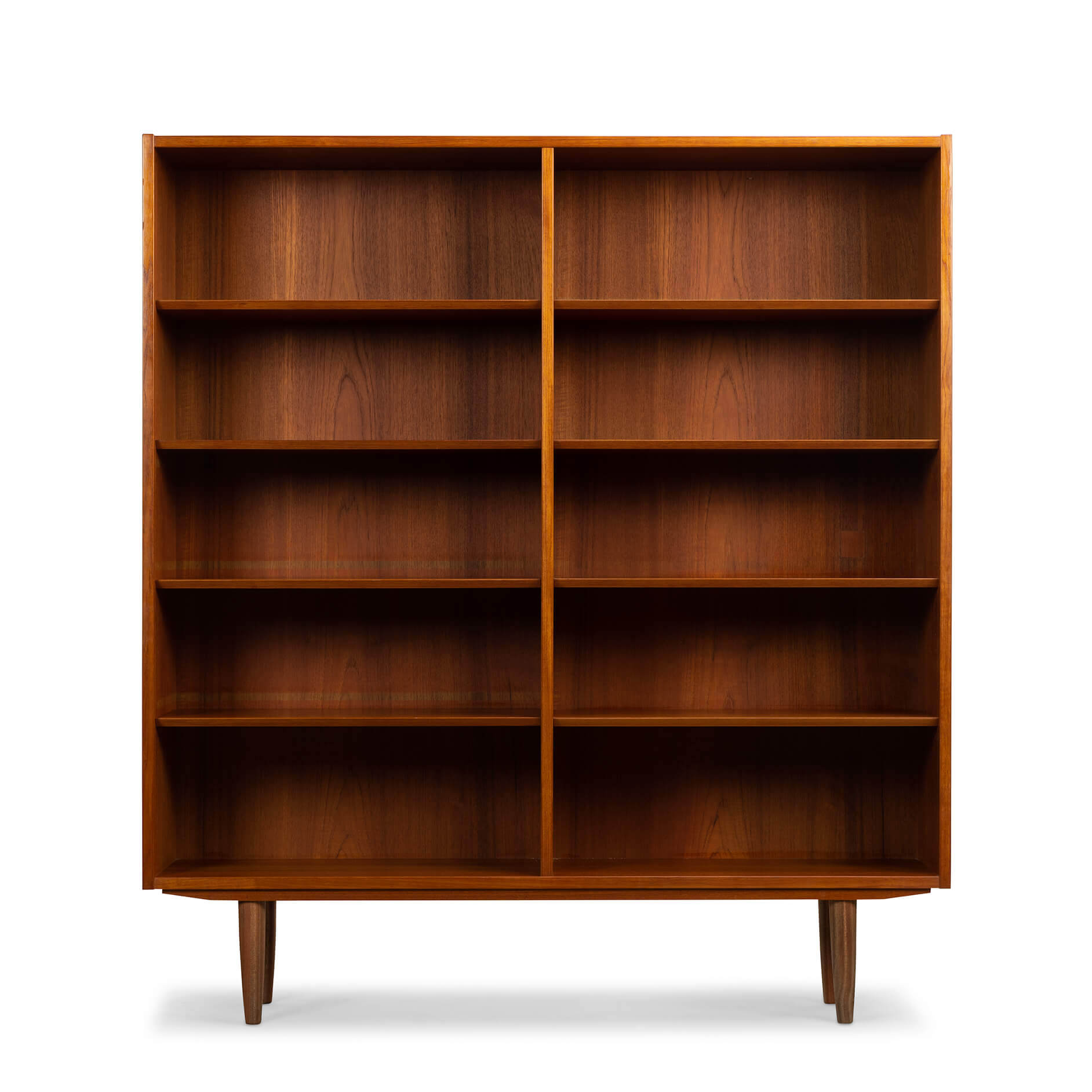 Deense grote boekenkast in prachtig teak fineer. Desigbn by Carlo Jensen en gemaakt door Hundevad & Co.