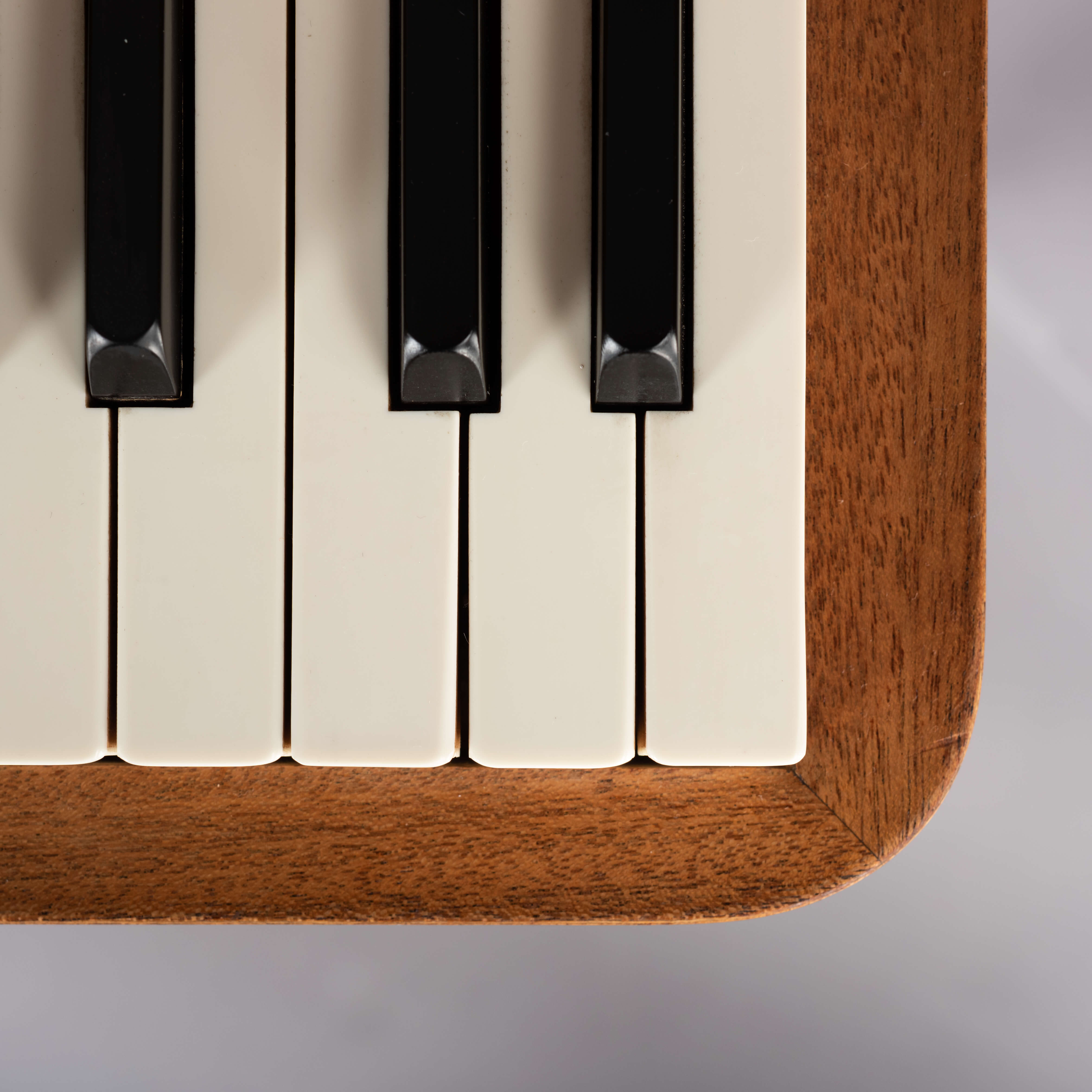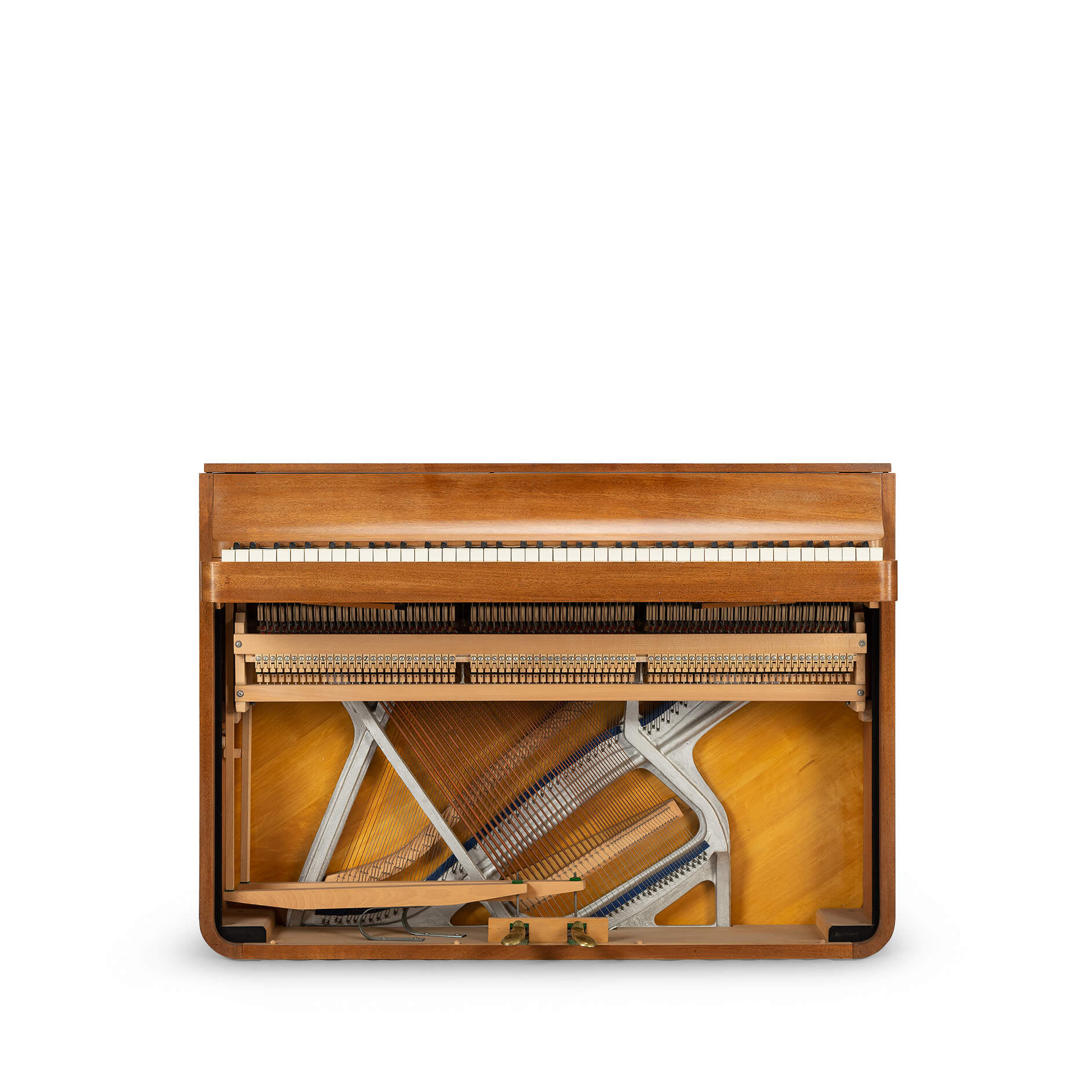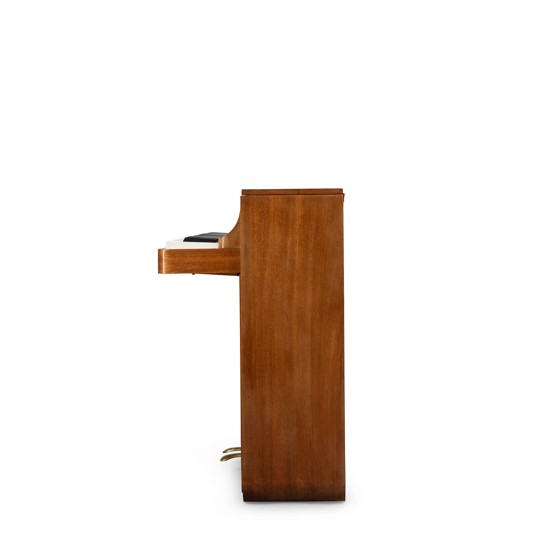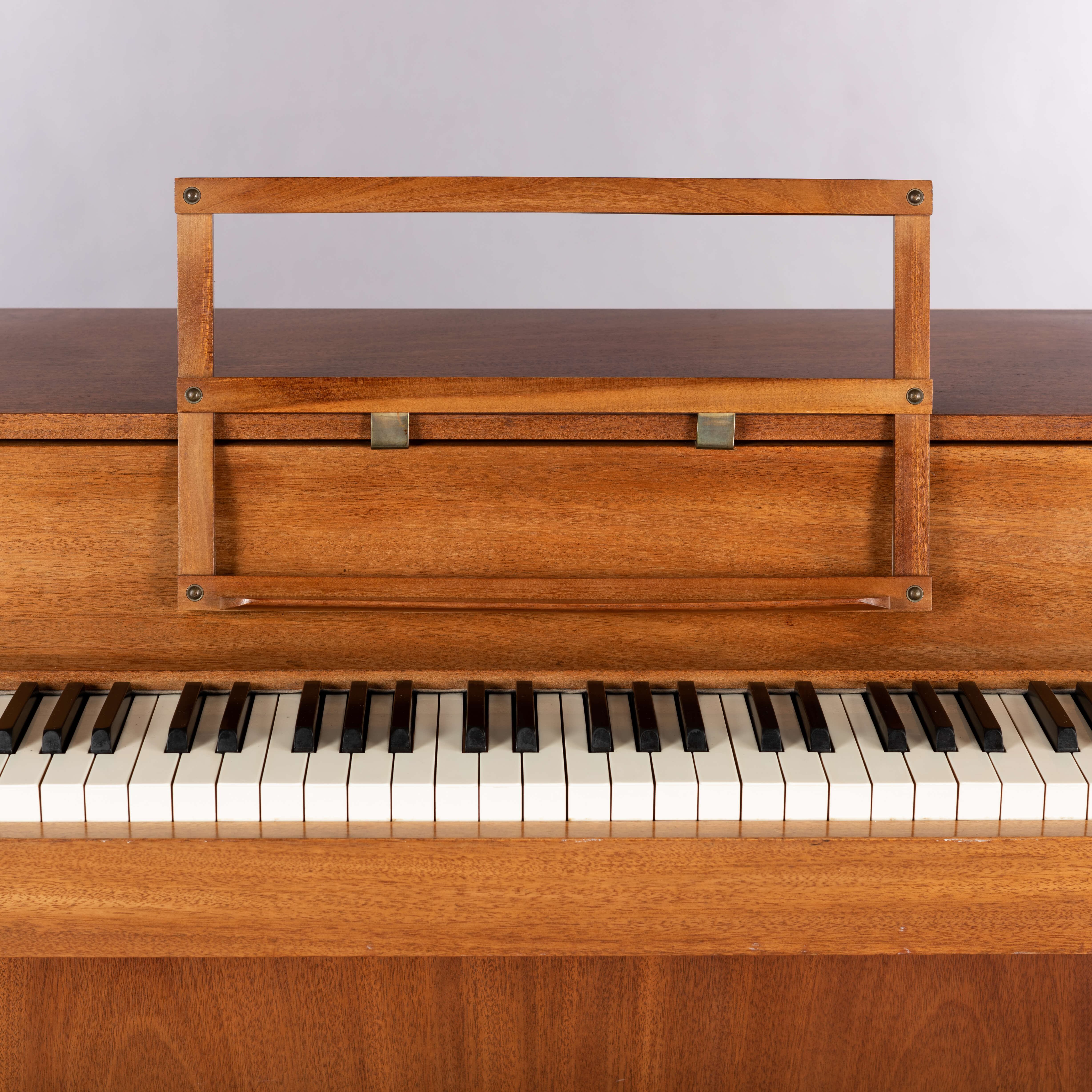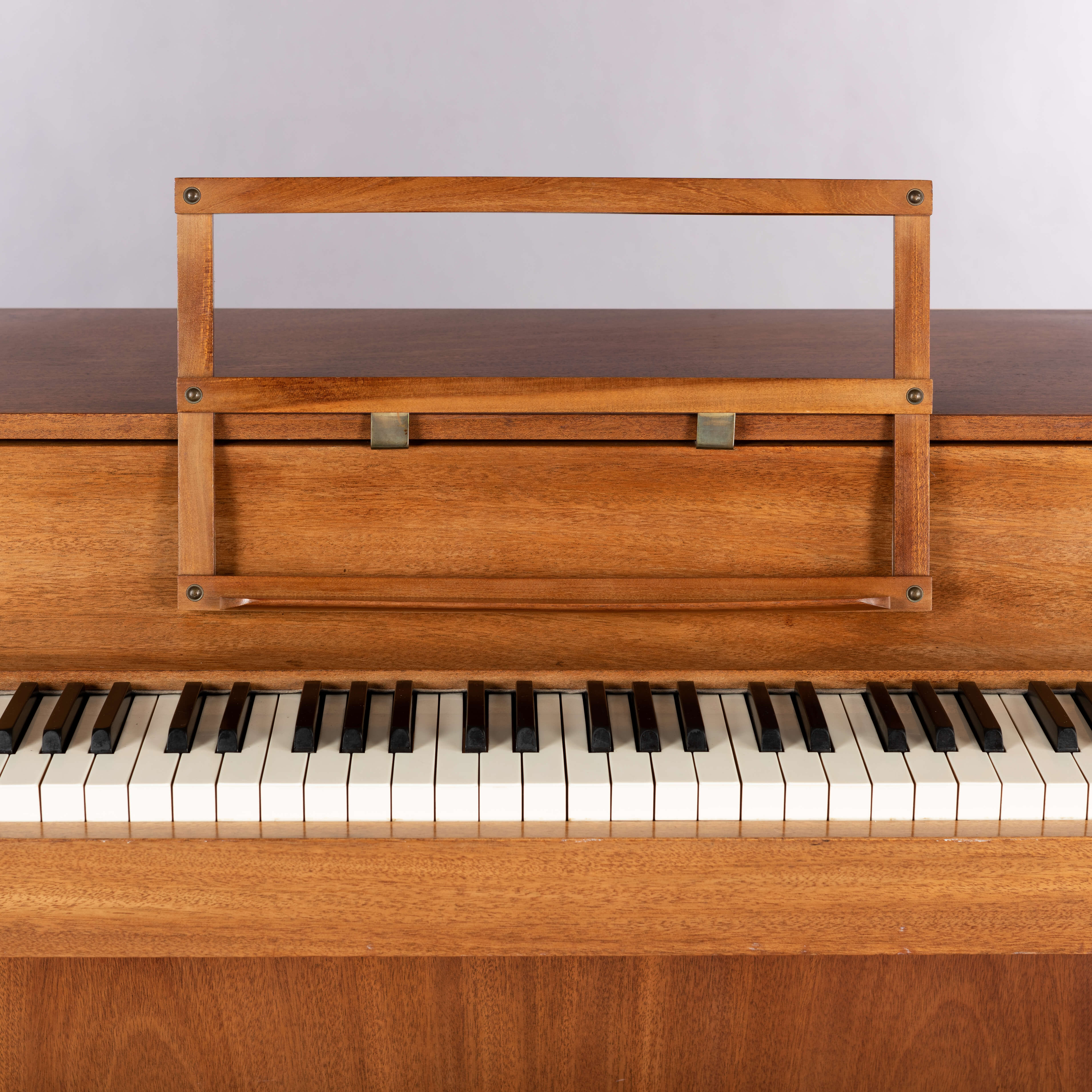 Een zeldzame Deense mid-century pianette gemaakt van prachtig teak. Het wordt een pianette genoemd vanwege de 82 toetsen in plaats van de standaard 88 bij een piano van volledige grootte. Deze pianette is gemaakt door de beroemde pianomaker Louis Zwicki. Elke piano van Louis Zwicki is genummerd. Dit is een early edition, No 3199. Zie foto!